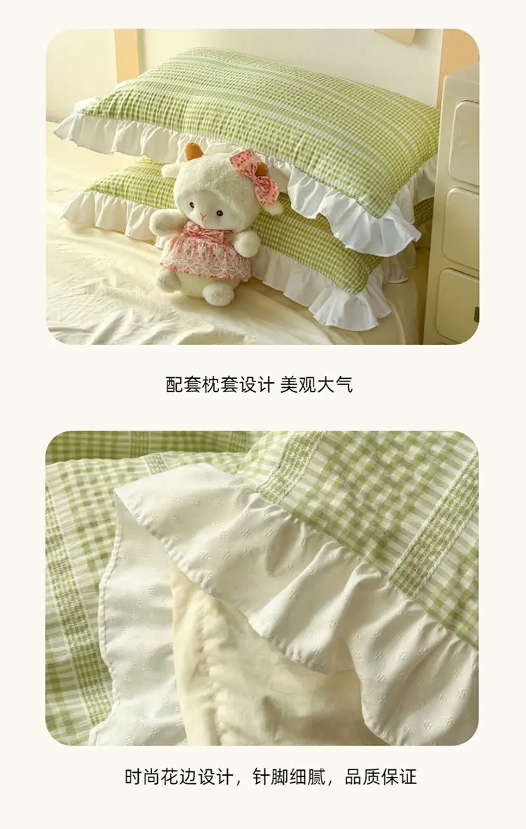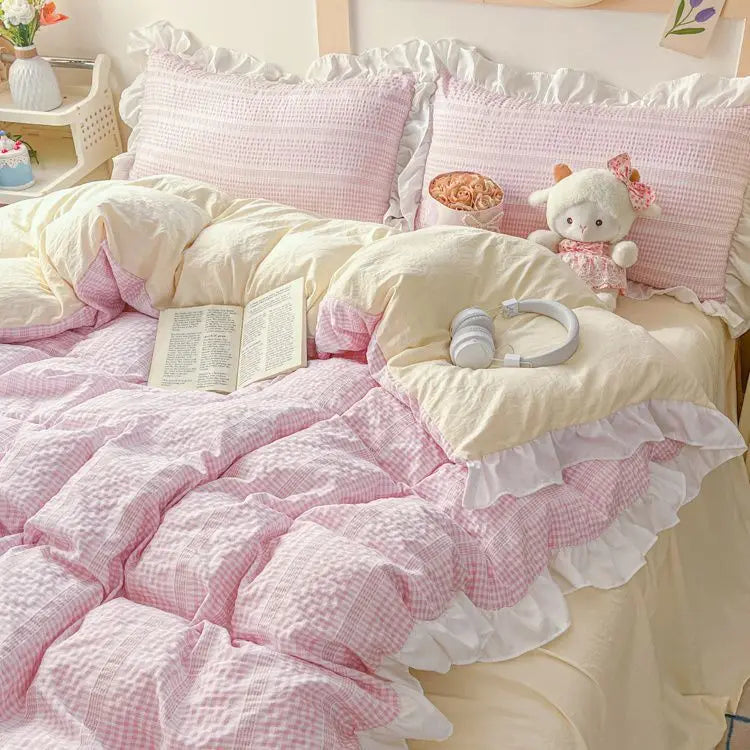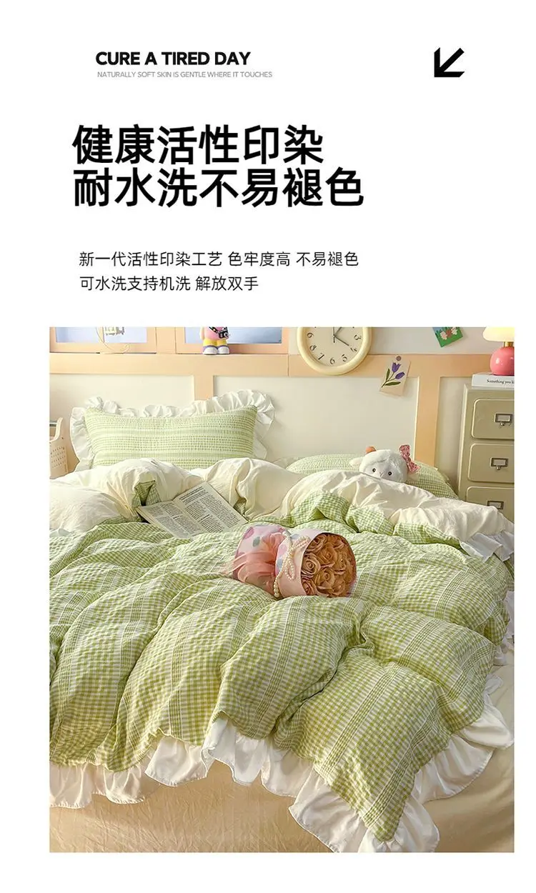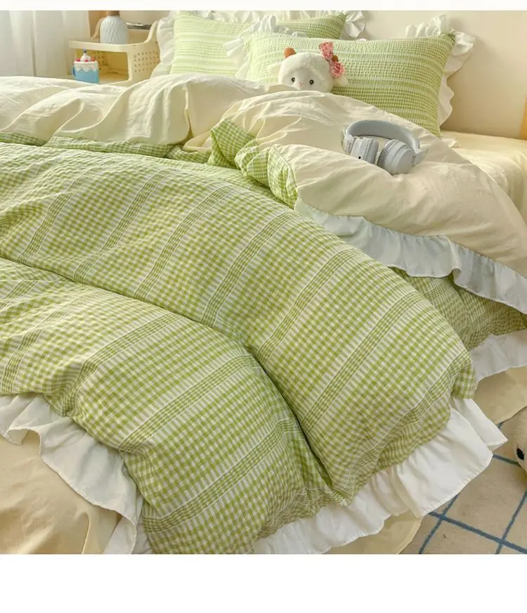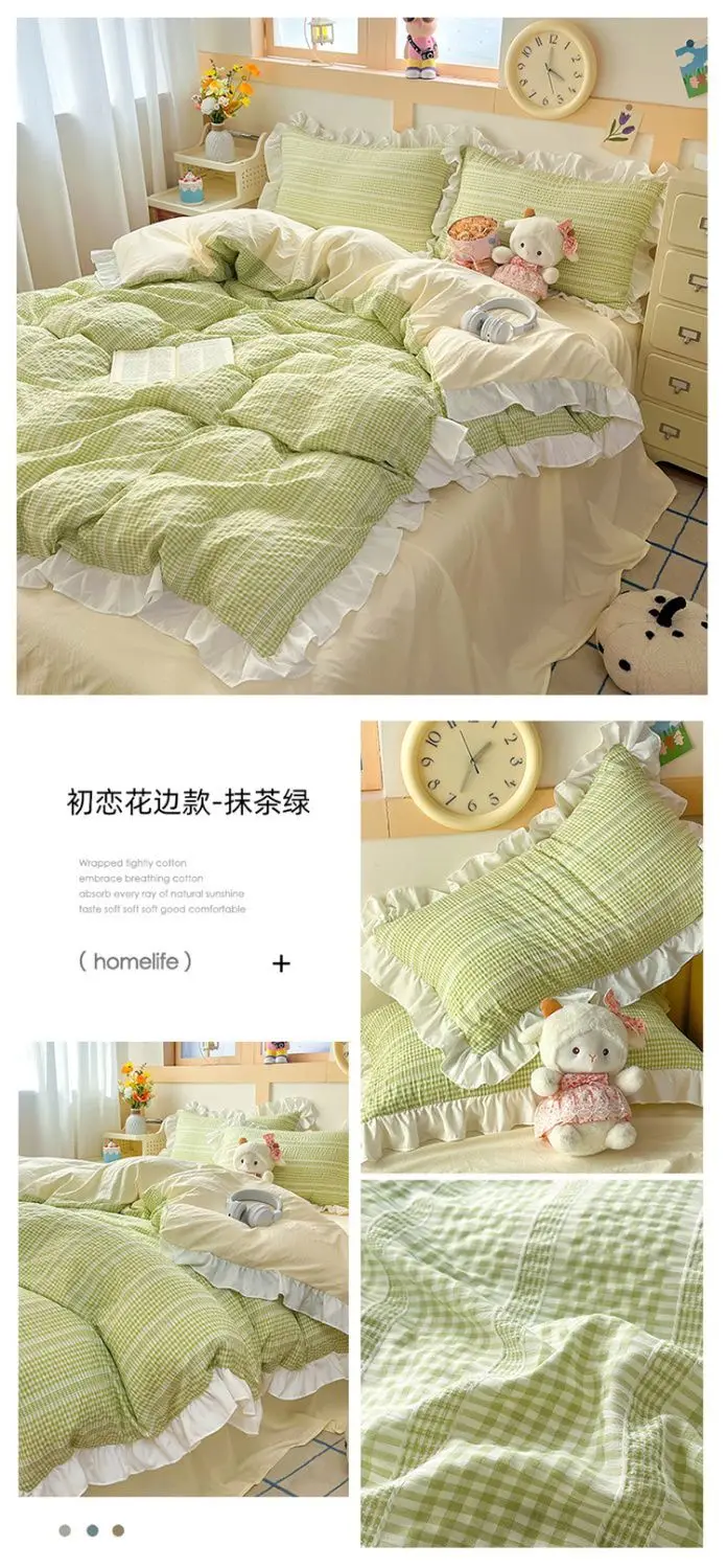 Ins Princess Style Bedding Sets Ruffle Blue Pink Girls Quilt Cover Romantic Bed Sheet Set Duvet Cover With Pillowcases 4pcs