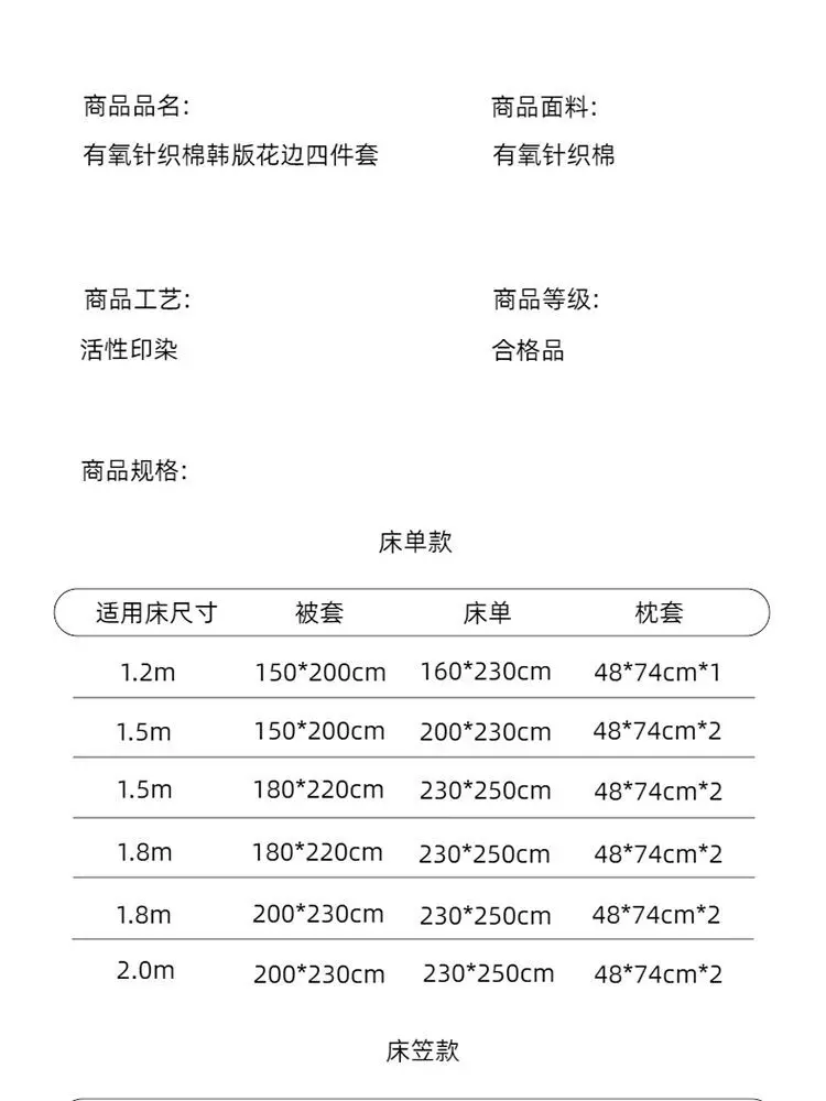 Flat sheet: 200x230cm*1pc,