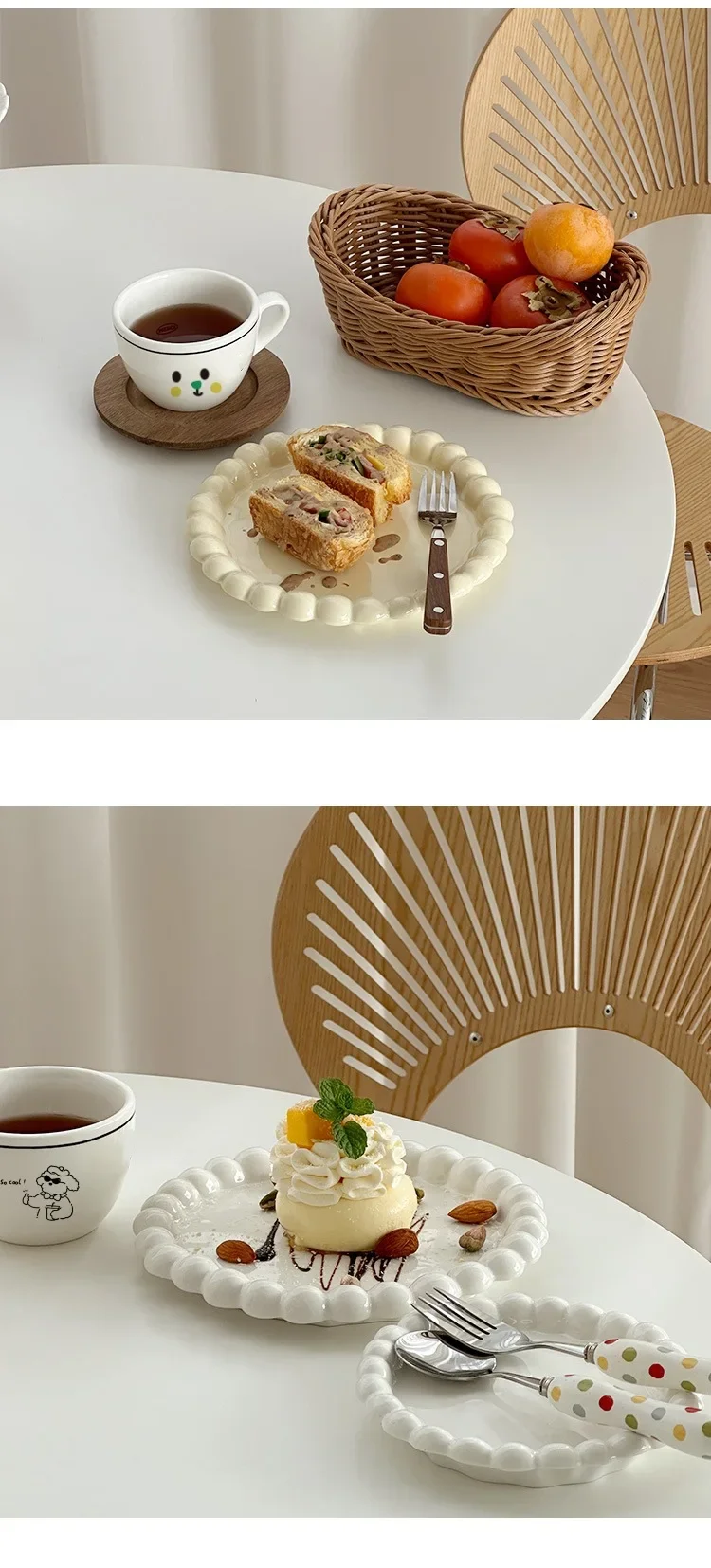 Ins Style Beaded Dessert Plate French Western Food Plate Ceramic Breakfast Plate Ornaments Poses Ceramic Dishes