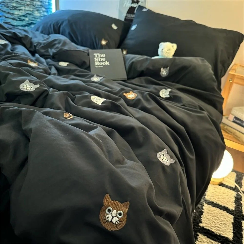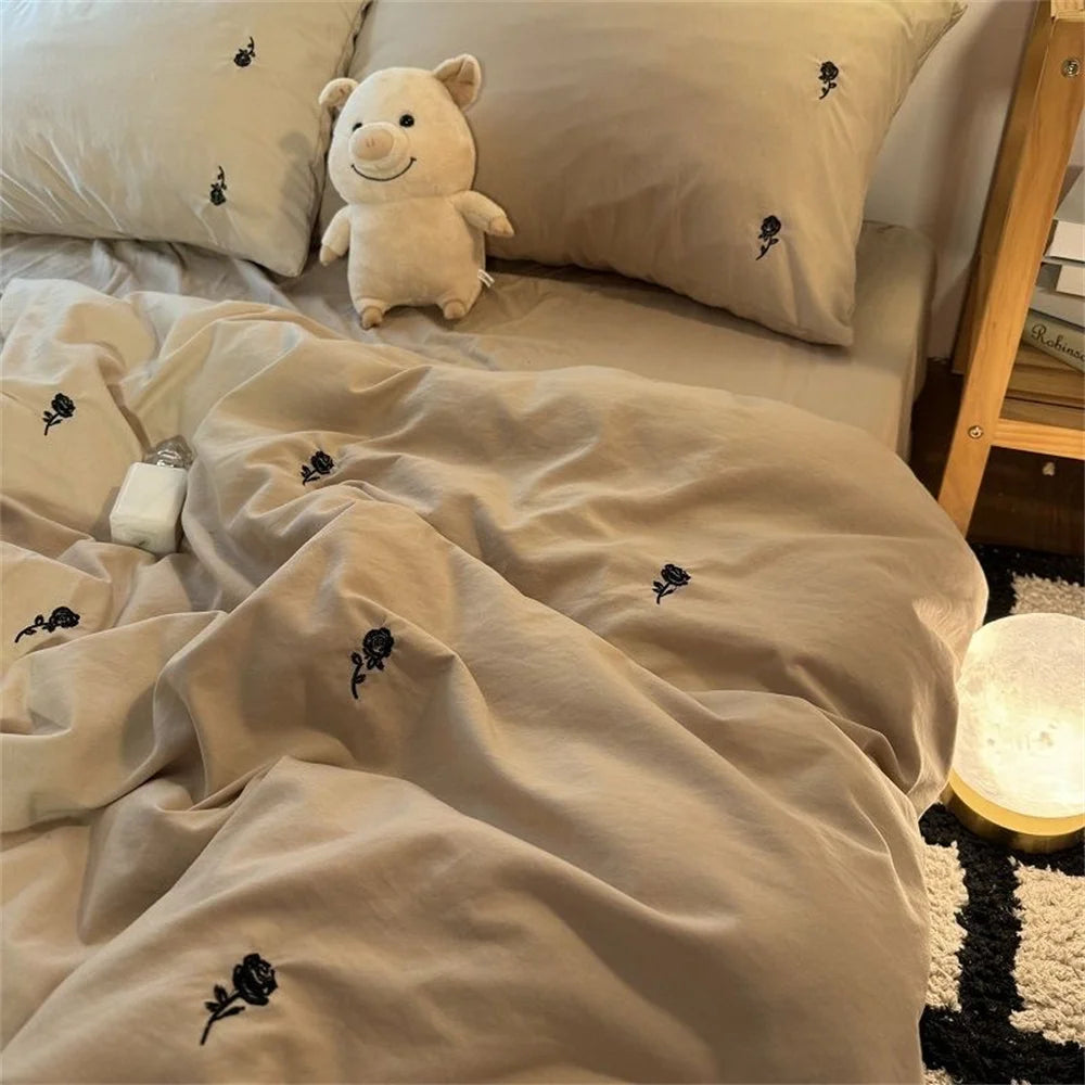 Ins Style Embroidered Flower Bedding Sheet Nordic Duvet Cover Set Home Luxury No Filling Bedding Set Comfortable Bedspread