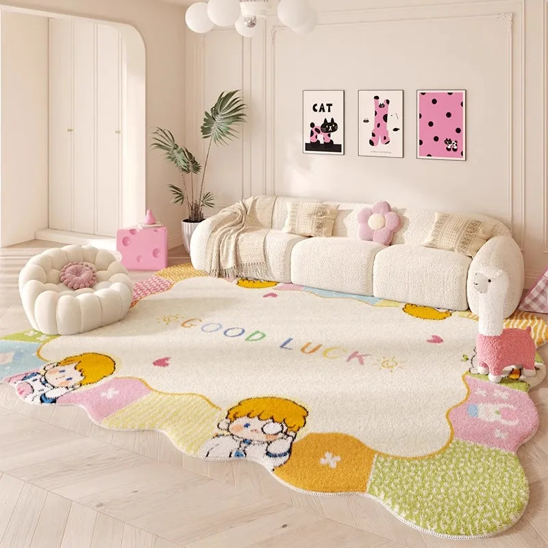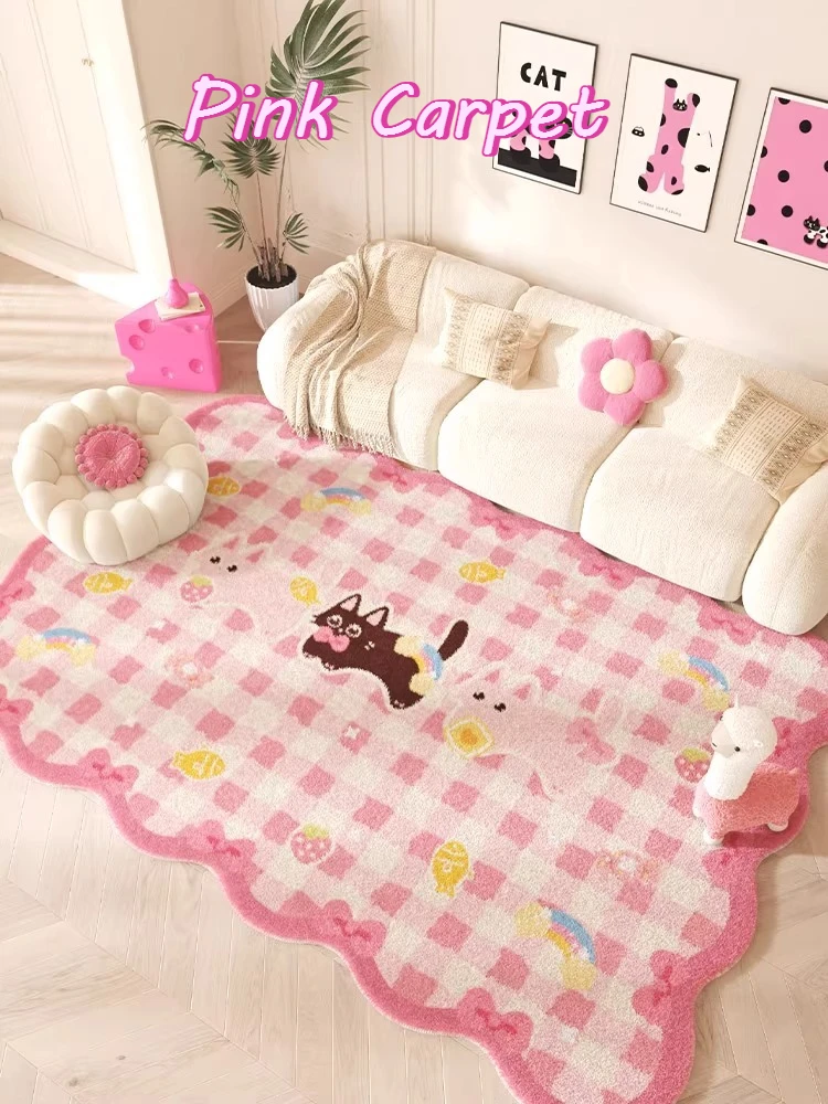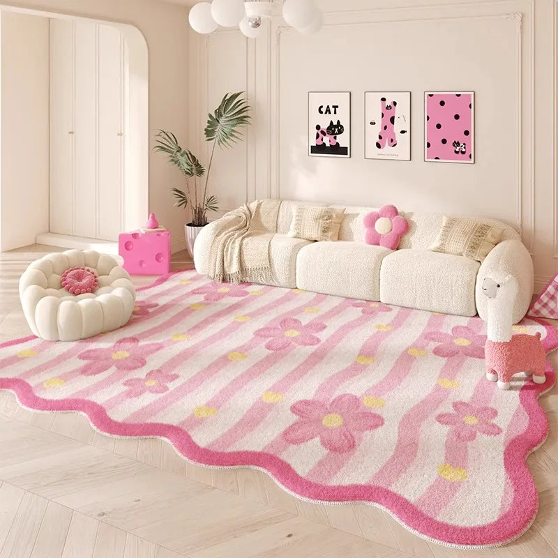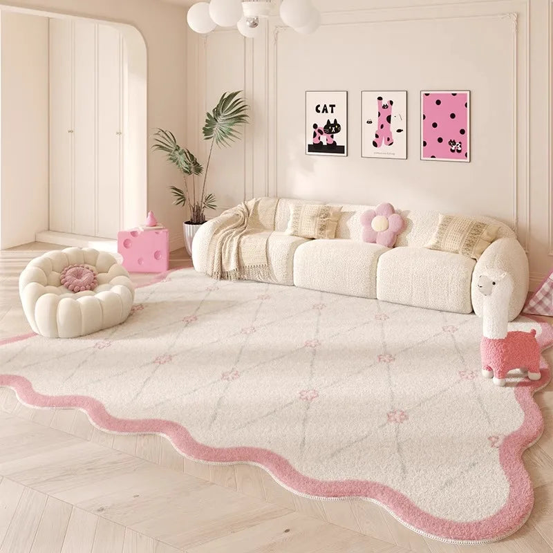Irregular Pink Living Room Carpet Large Area Dopamine Cute Style Bedroom Rug Stylish Simple Soft Sofa Coffee Table Mats Tapis 러그