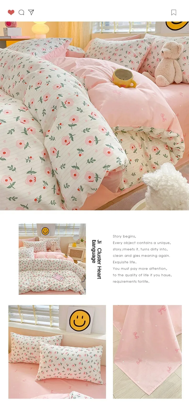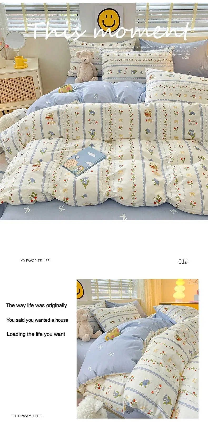 Kawaii Princess Pure Cotton Bedding Set Full Size Lovely Ruffles Single Doubel Duvet Cover Set Girls Woman Cozy Bedding Sets