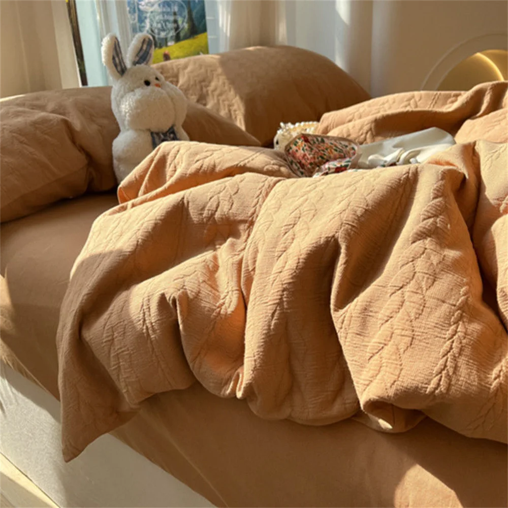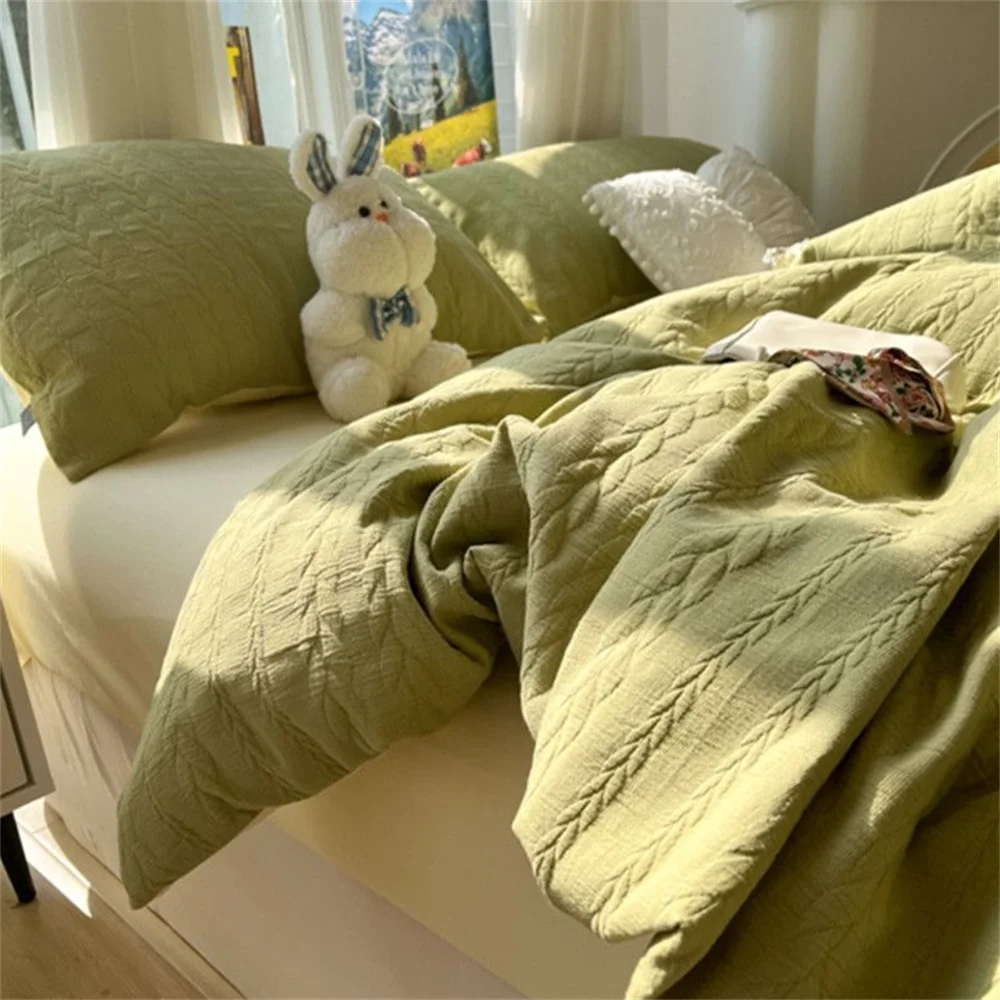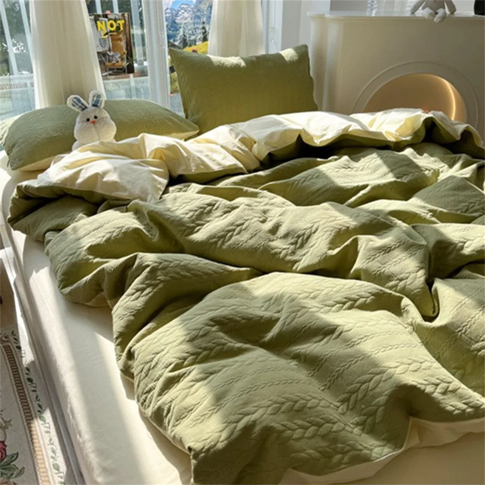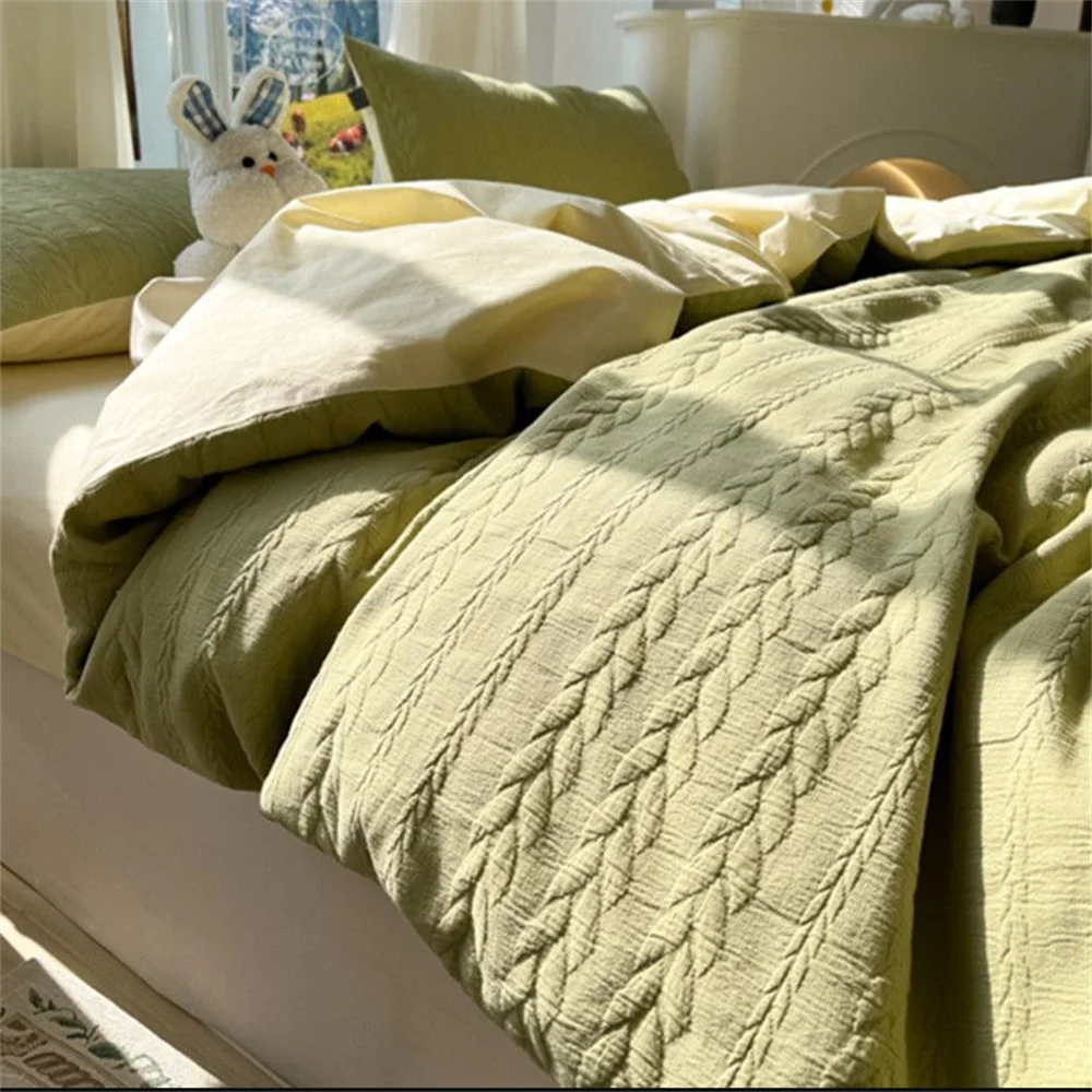 Knitted Washed Cotton Bed Four Piece Set with Ins Style Simple and High-end Feeling, Bed Sheet Duvet Set Three Piece Set