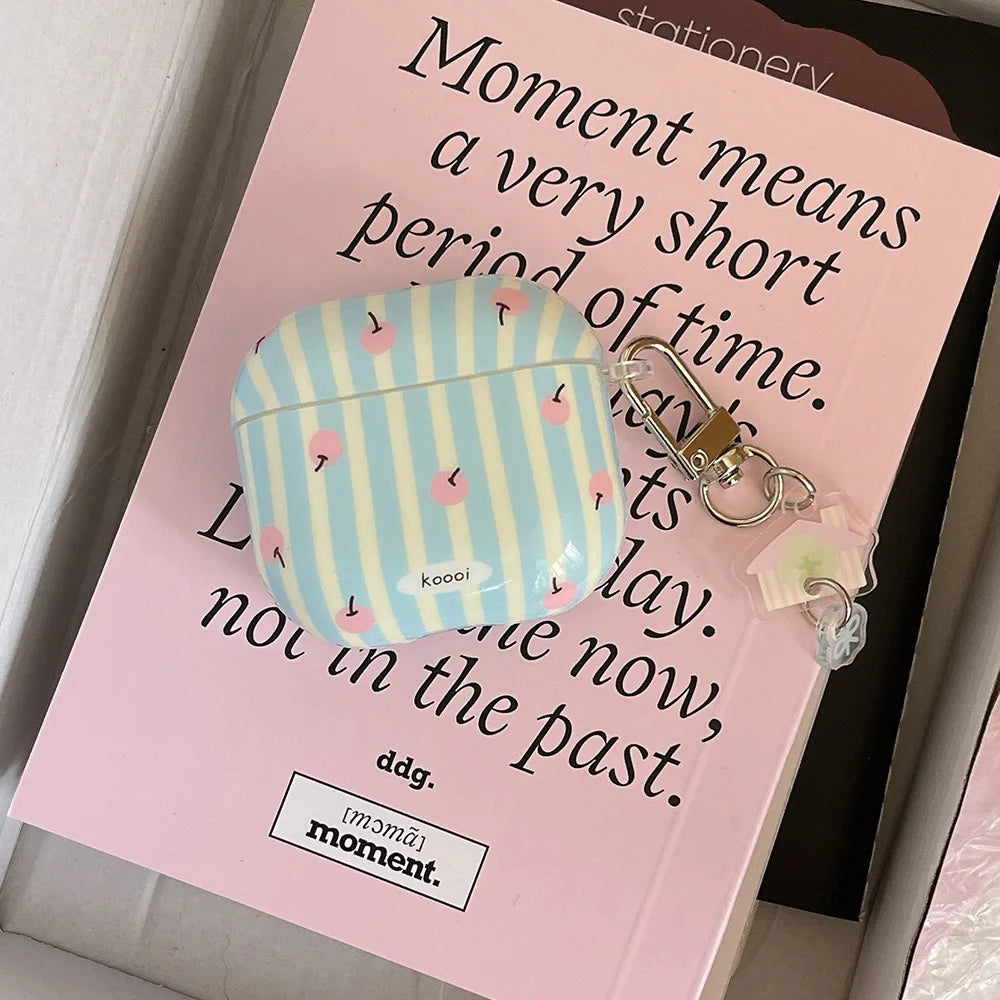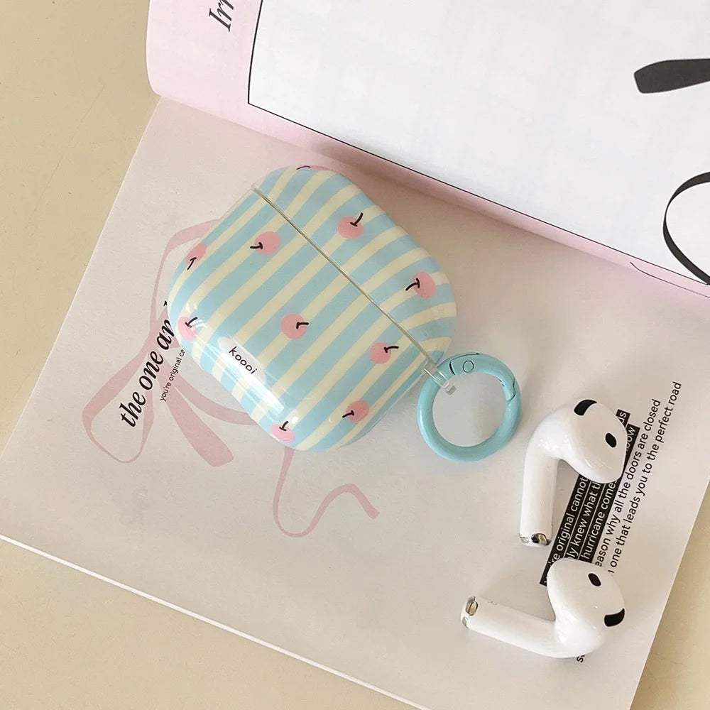 Korea cute blue stripe apple pattern ring pendant soft protection cover case for airpods 1 2 3 4 pro 2 earphone shell lovely