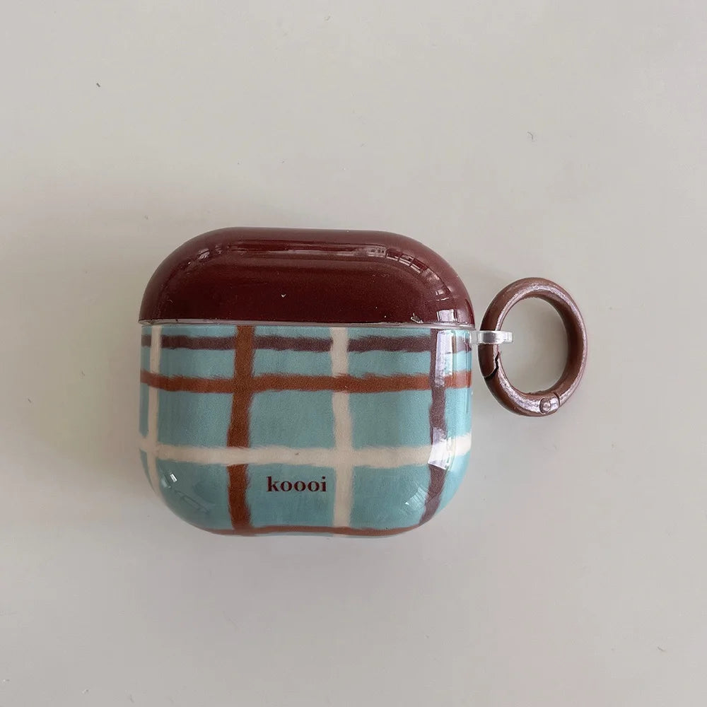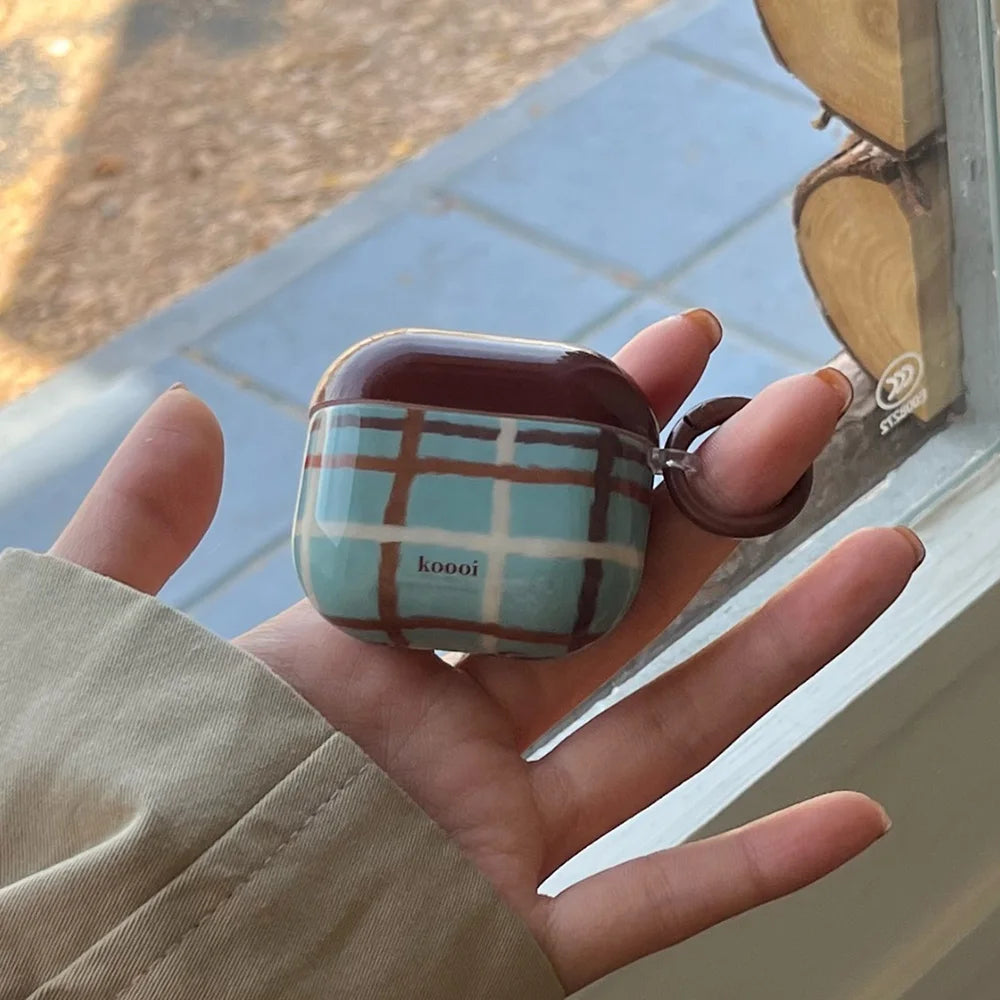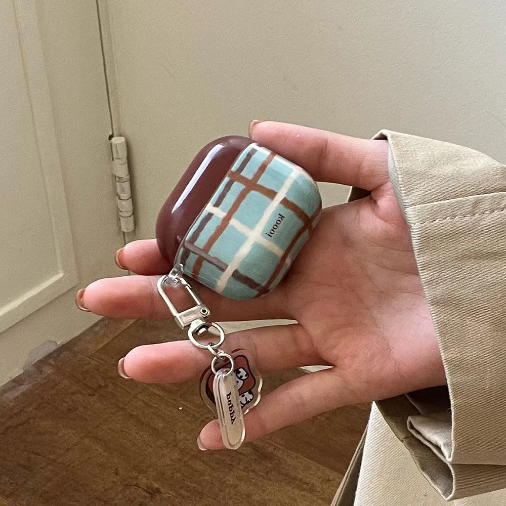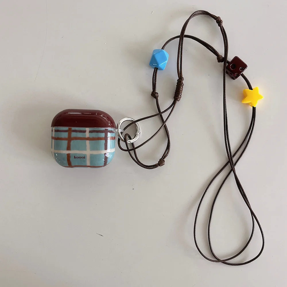 Korea Fashion Brown Plaid Splicing Pattern Retro Neck Lanyard Shockproof Protection Case For AirPods 4 3 2 1 Pro 2 Earphone Case