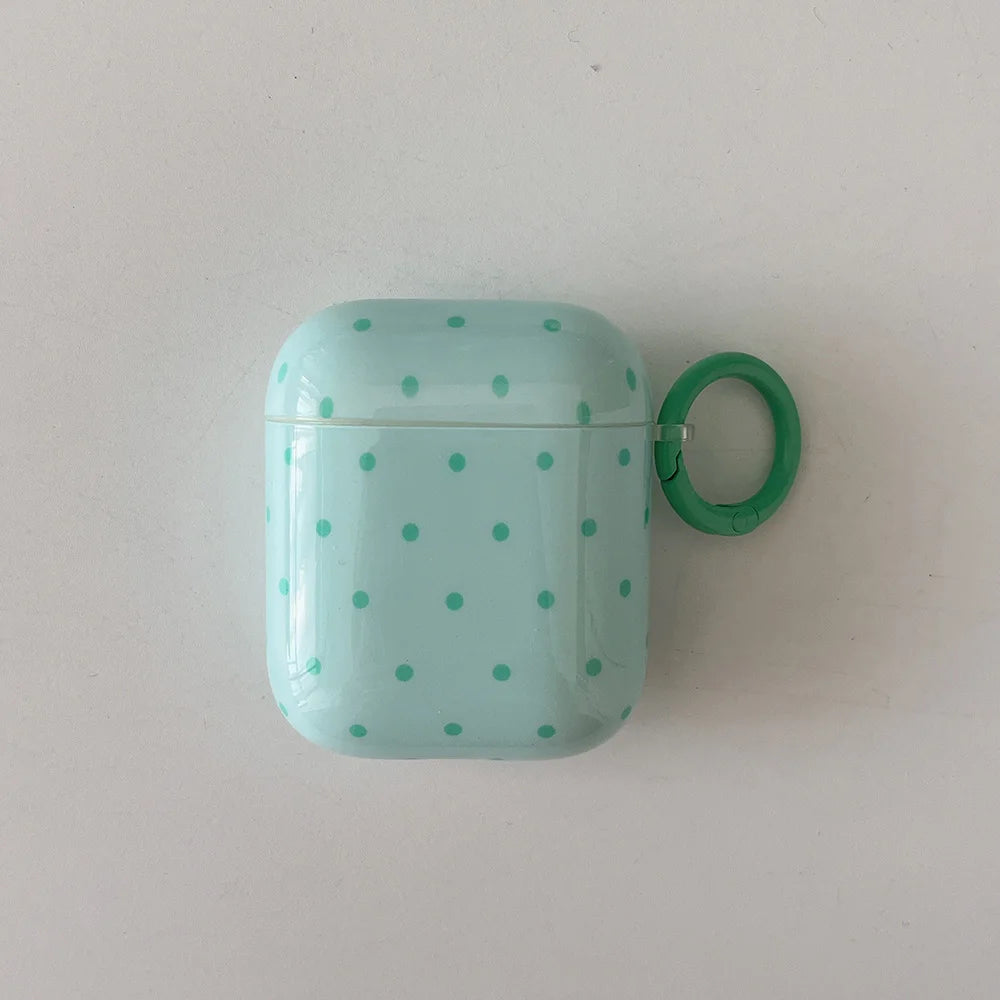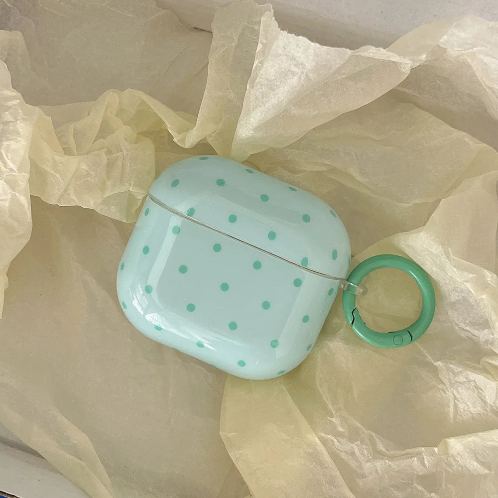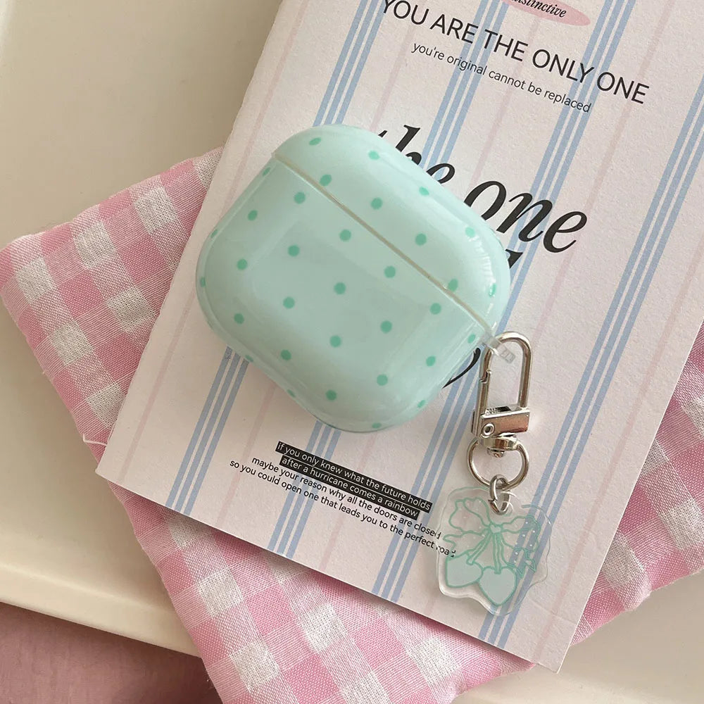 Korea Mint Green Polka Dots Silicone Earphone Case For Apple AirPods 1or2 3 4 Pro Pro 2 Soft Protection Cover With Keychain
