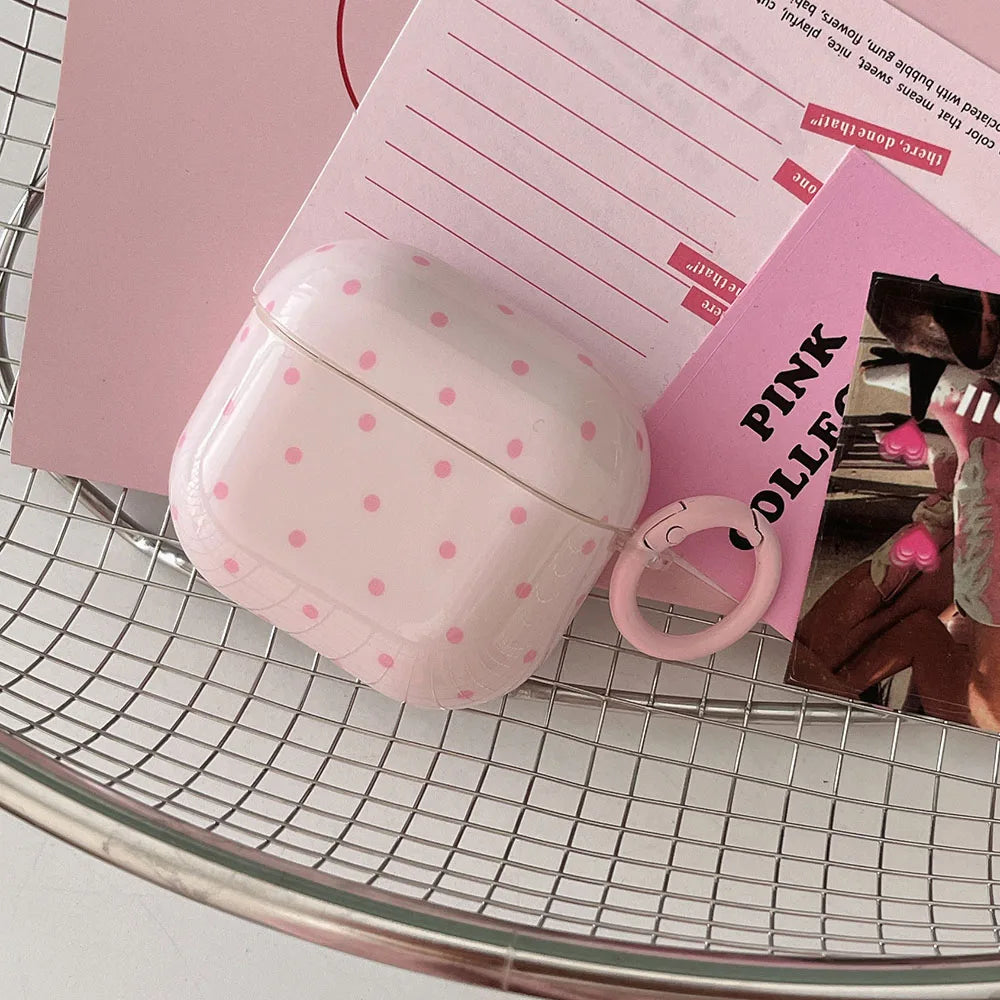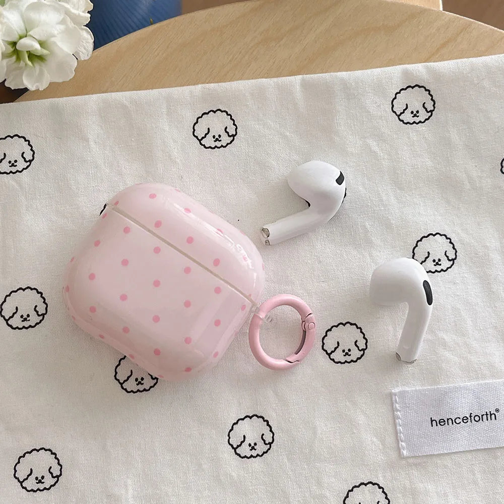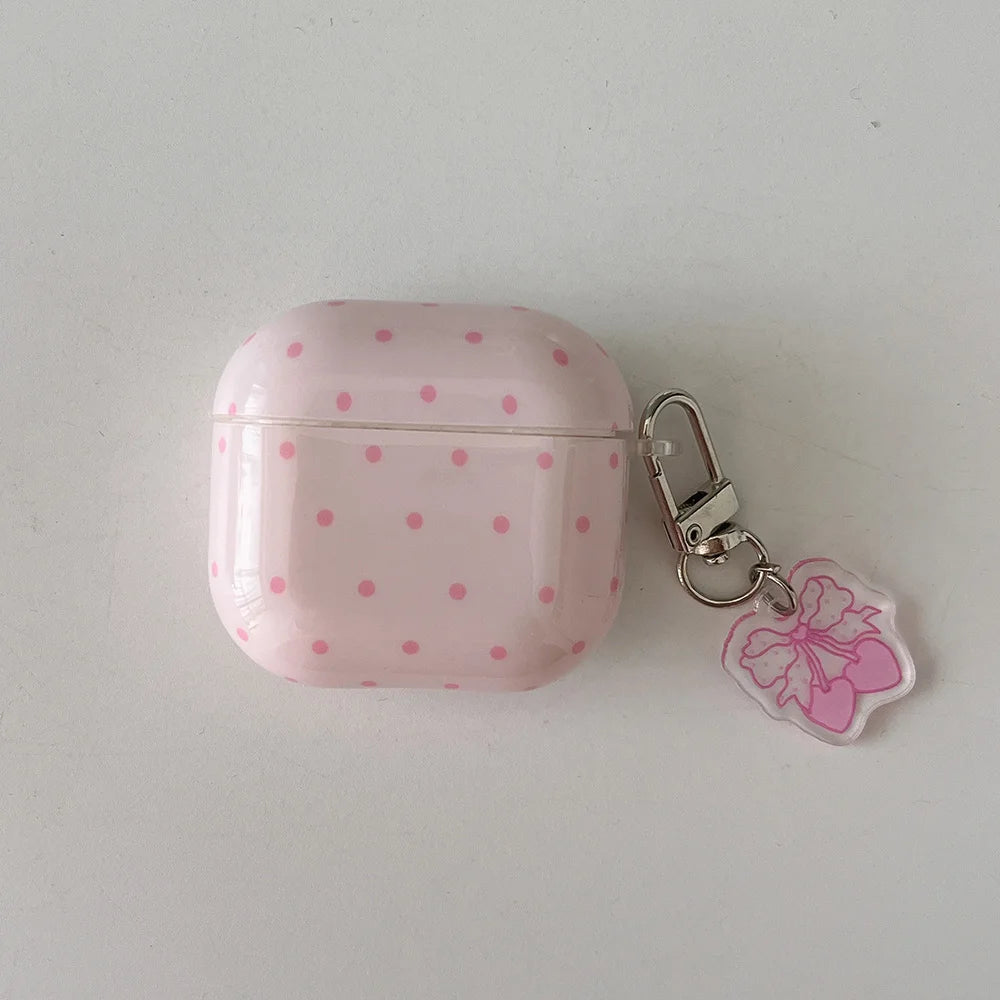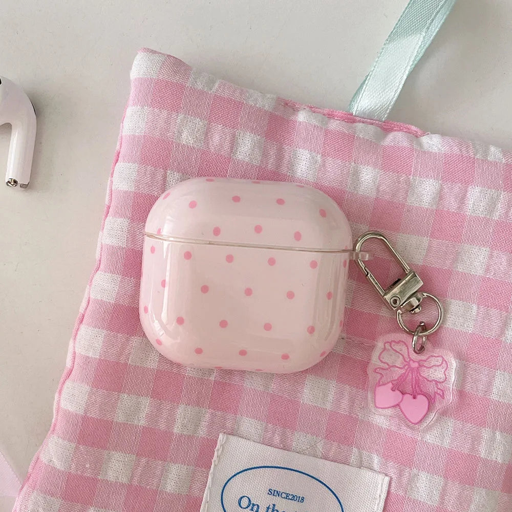 Korea Mint Green Polka Dots Silicone Earphone Case For Apple AirPods 1or2 3 4 Pro Pro 2 Soft Protection Cover With Keychain
