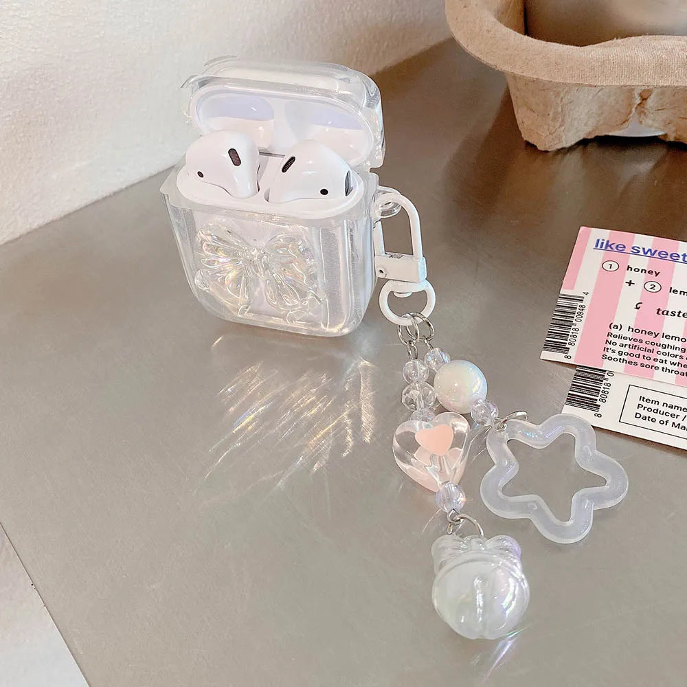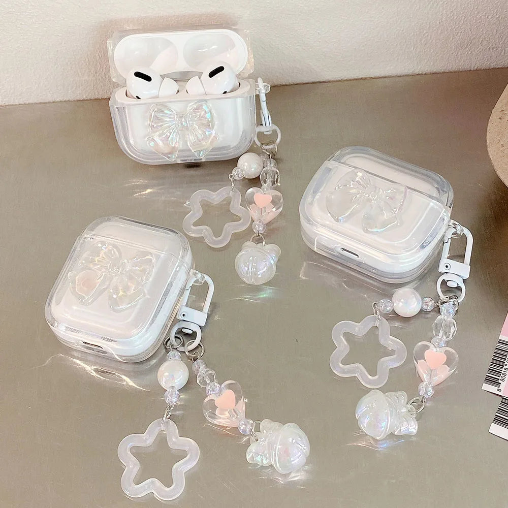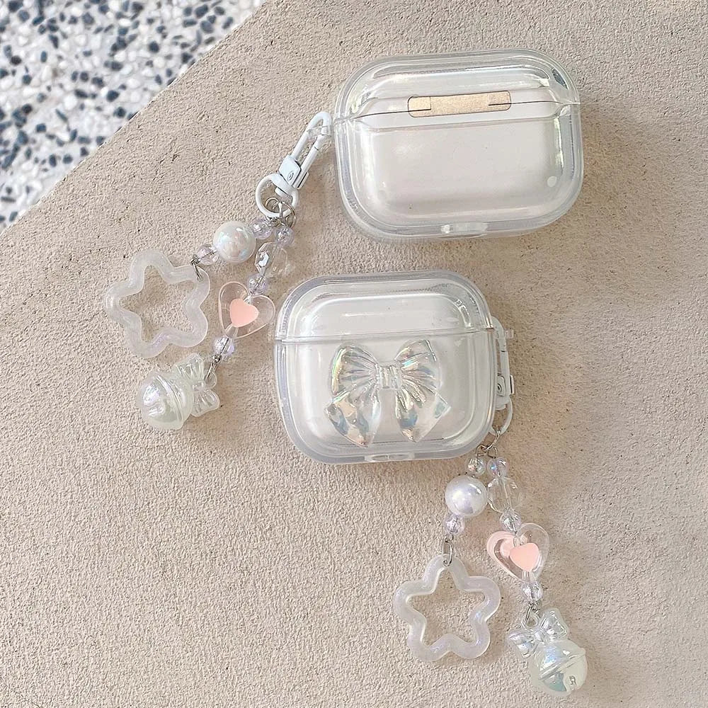 Korean Clear Bow knot Star Bell Keychain Case For Airpods Pro 2 Earphone Charging Box Bag Cover For Airpod 1/2/3/4 Soft Shell