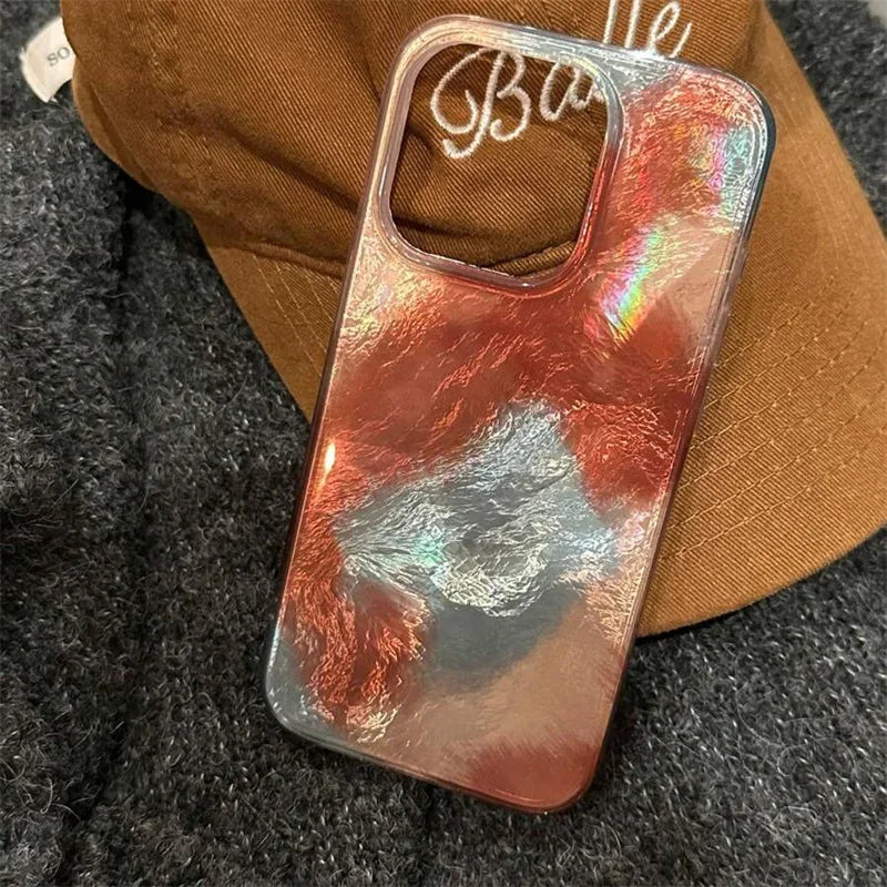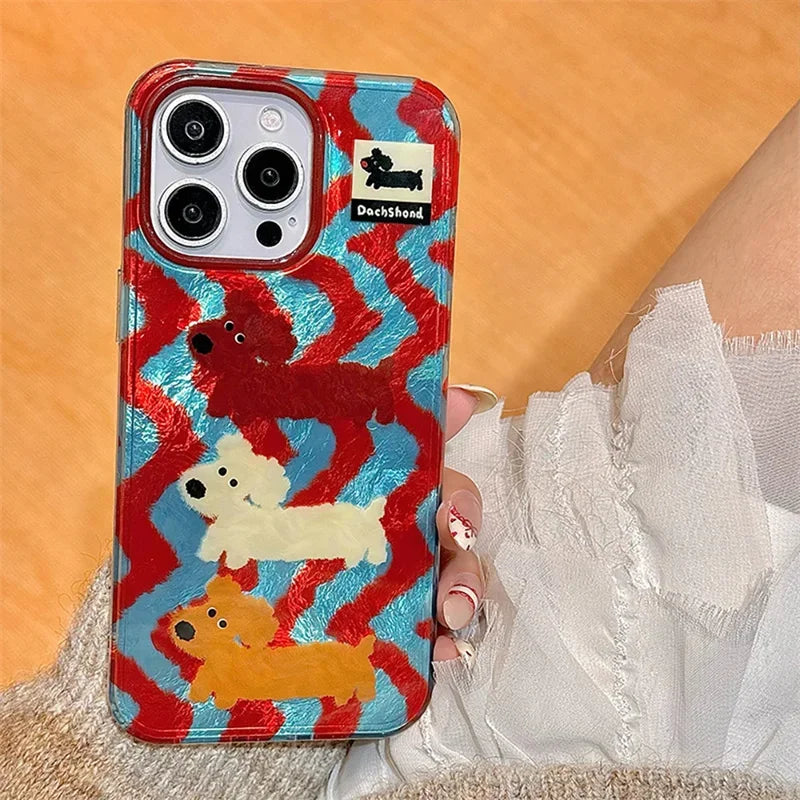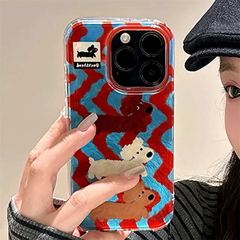 Korean Cute Dog Stripes Gradient Phone Case for IPhone 16 15 14 13 11 12 Pro Max Plus Lovely Puppy Vortex Pattern Cover Funda