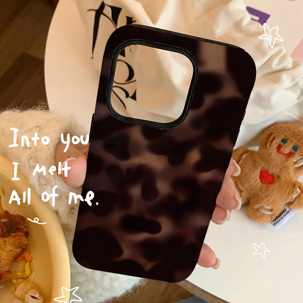 Korean Dark Red Leopard Print Art Case for IPHONE 16 ProMax 15 14 13 12 11 PRO Plus Acrylic TPU Two in One Magnetic Phone Cases