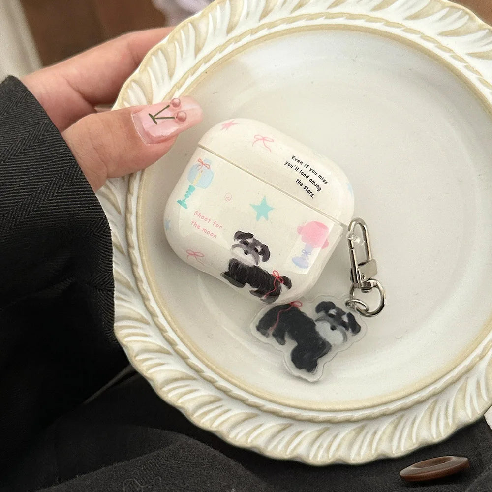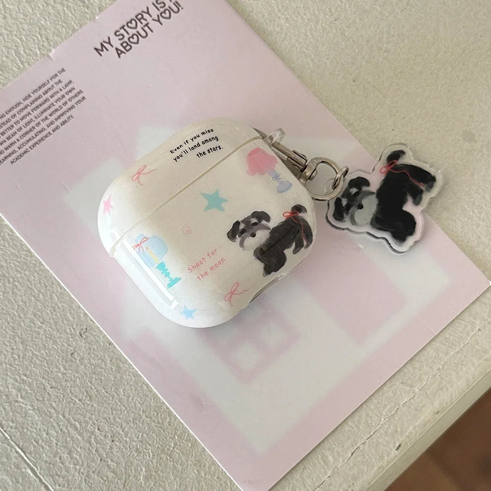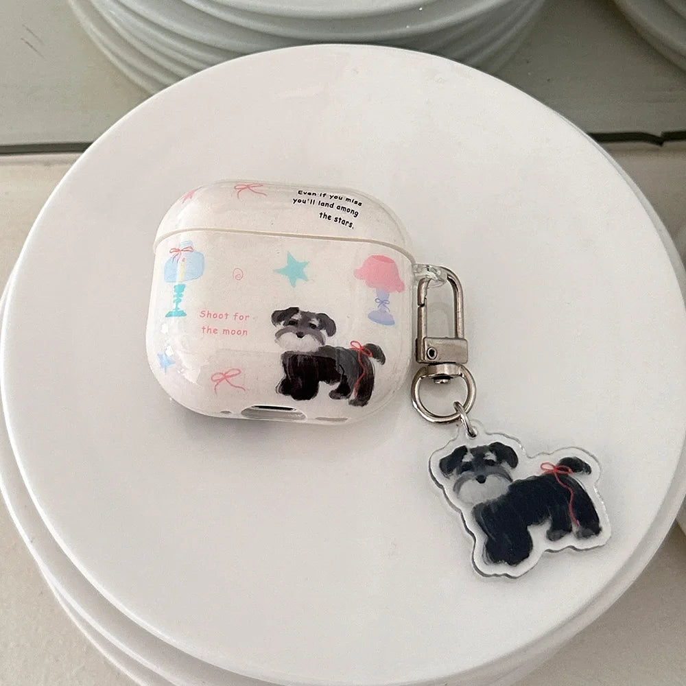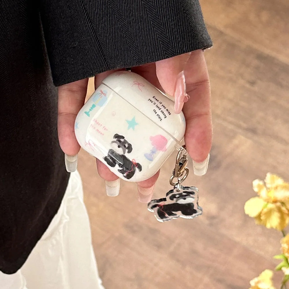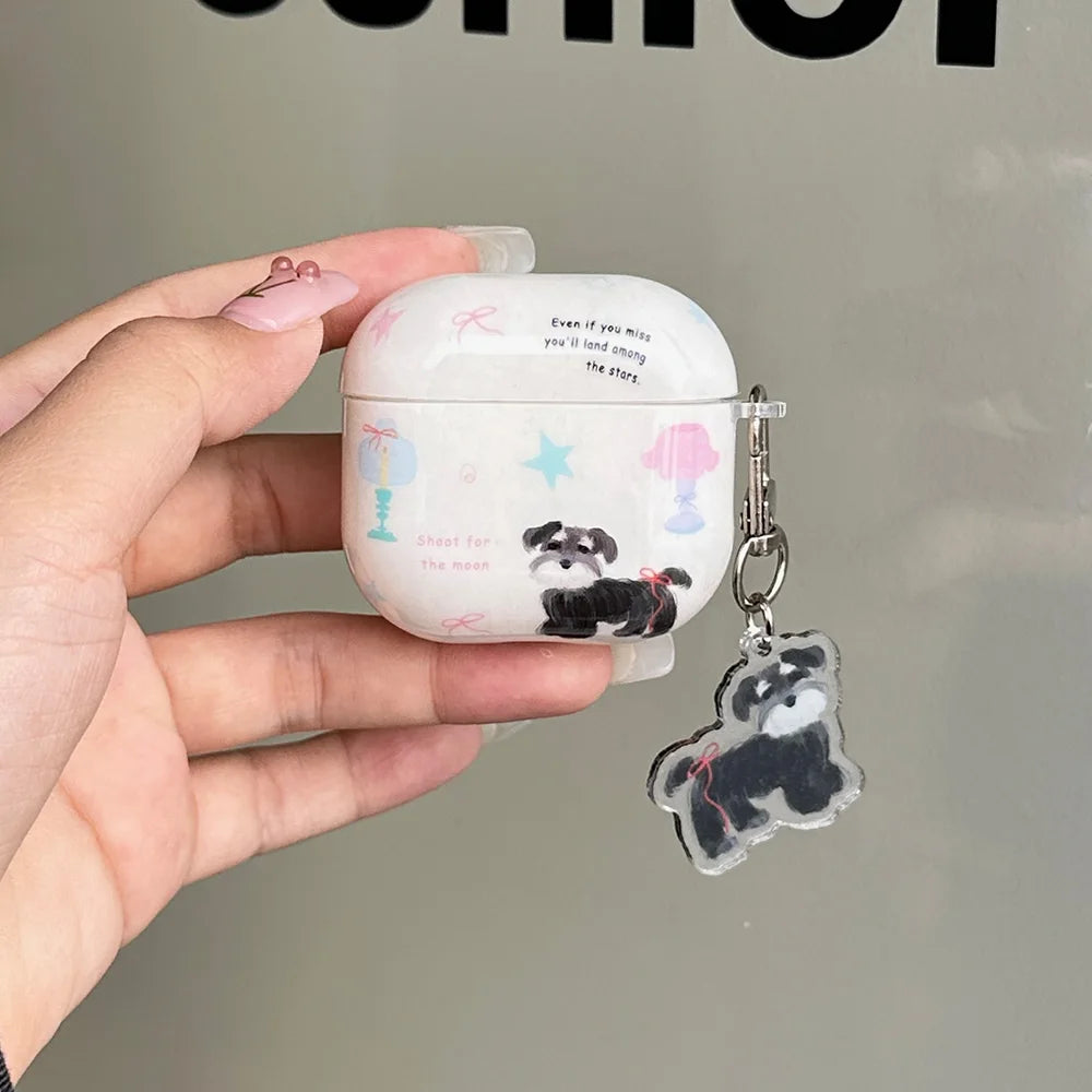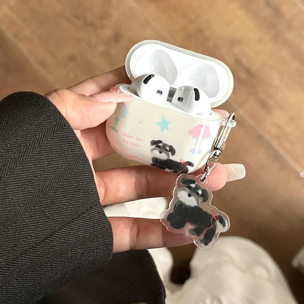Korean Style Illustration Cartoon Puppy Pendant Soft TPU Protection Case for AirPods 1 or 2 3 4 Pro 2 Shockproof Earphone Cover