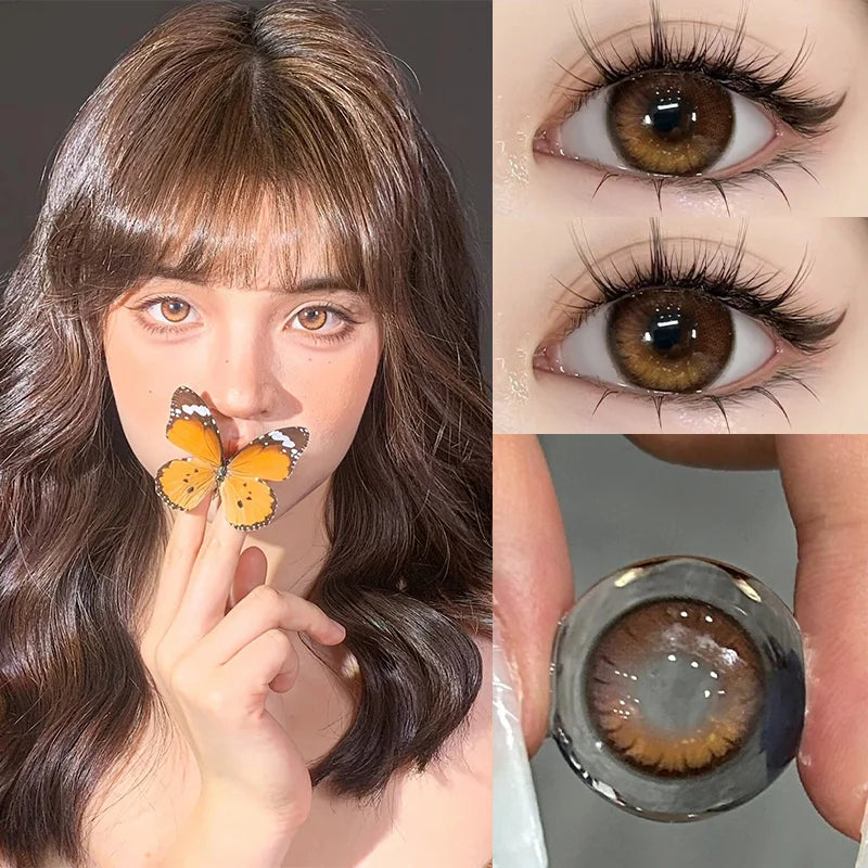 1 Pair New Korean Lenses Colored Contact Lenses With Degree Myopia Lenses Soft Beautiful Pupil Brown Contact Make Up