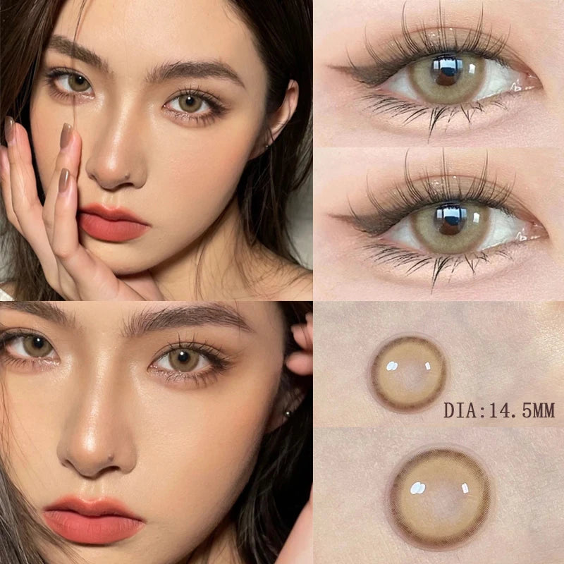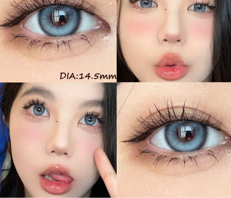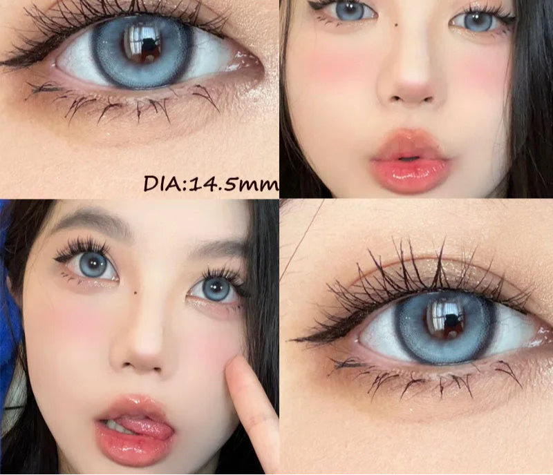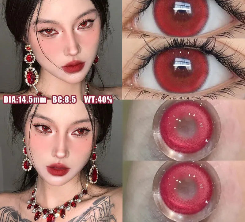 2PCS  Red Color Contact Lenses Large Diameter 14.5mm Myopia Degree Colored Lens Blue Beauty Pupil Makeup One Year Use