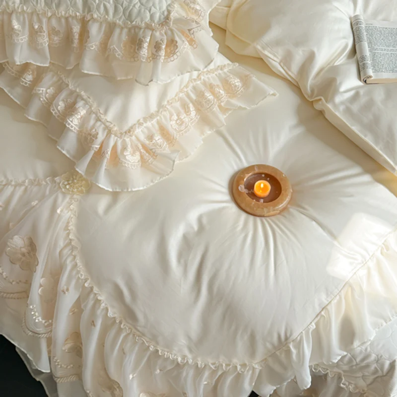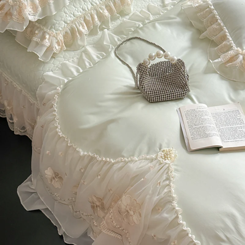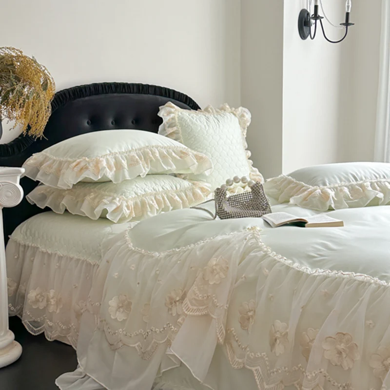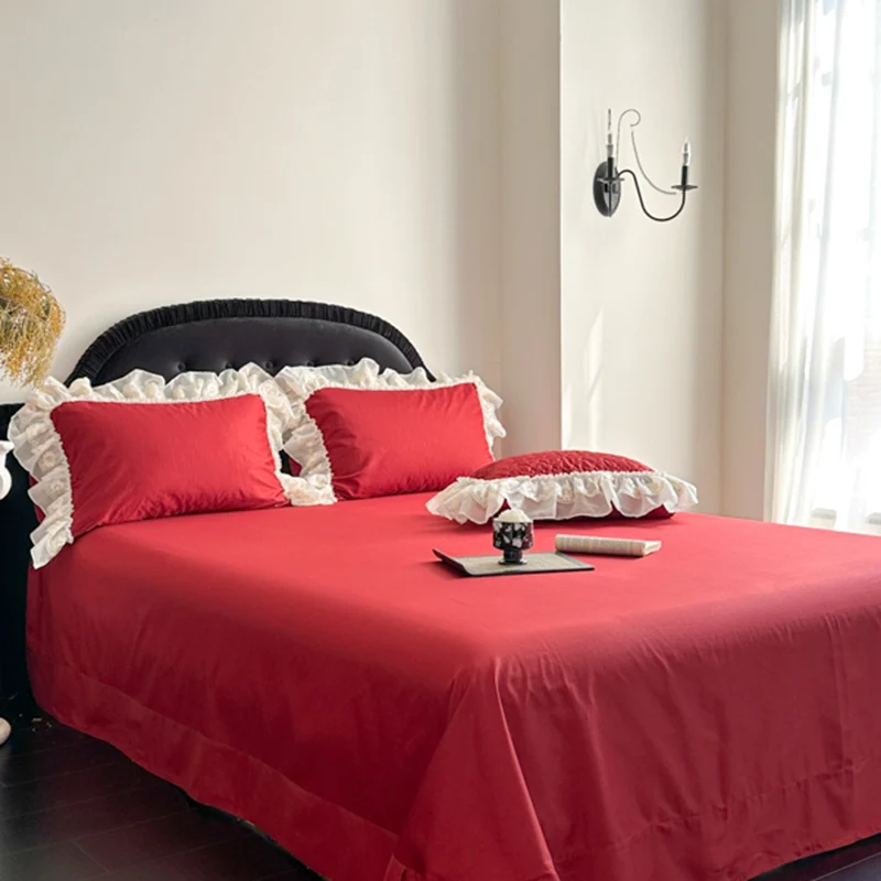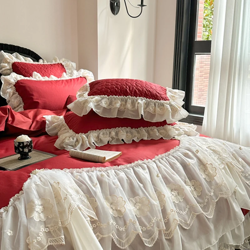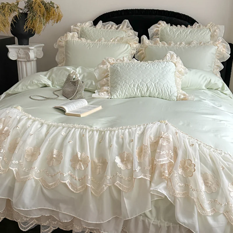 Lace Princess Bedding Set Gorgeous Embroidery Romantic Flat Bed Sheet Pillowcases Queen King Size Bed Linen Set Gift for Family
