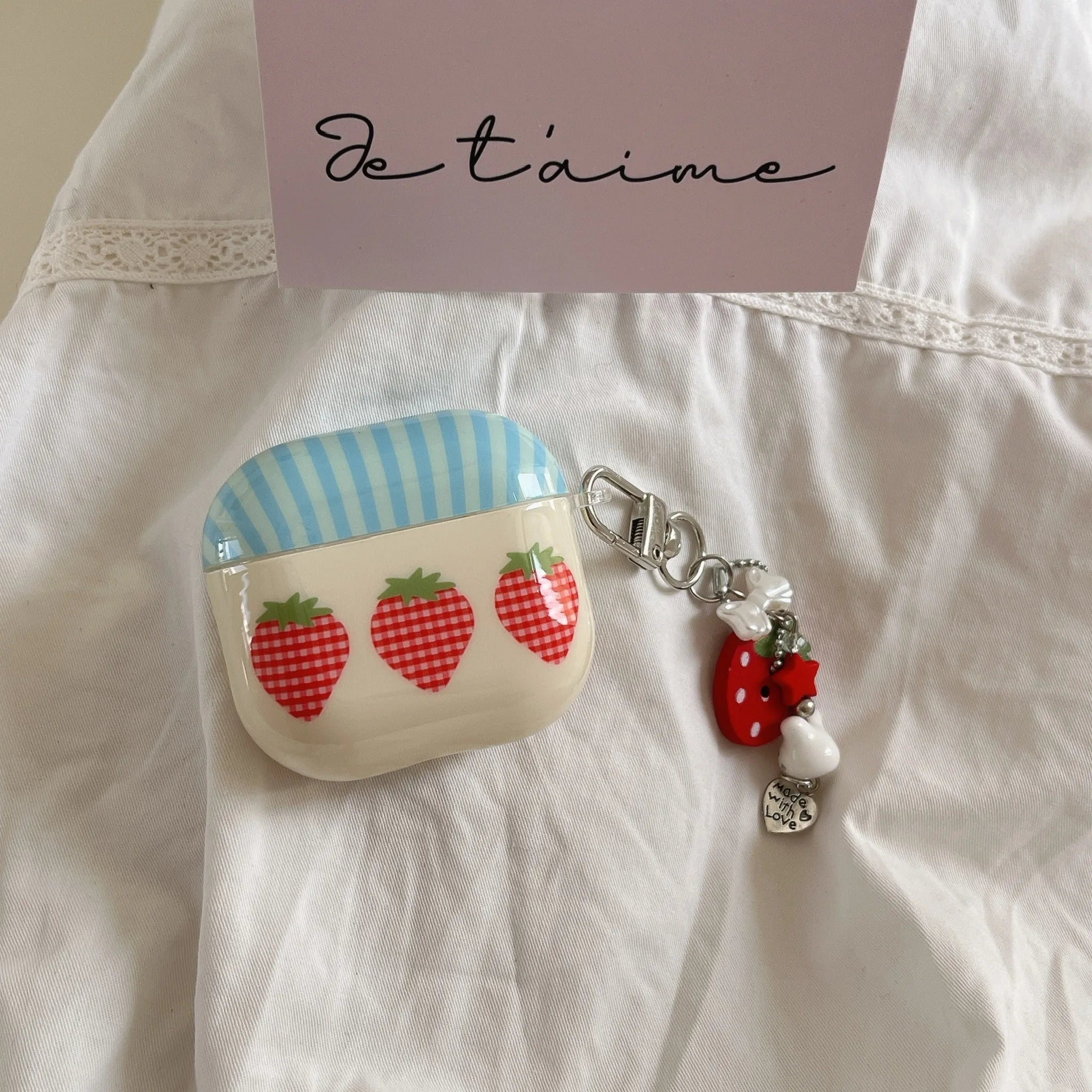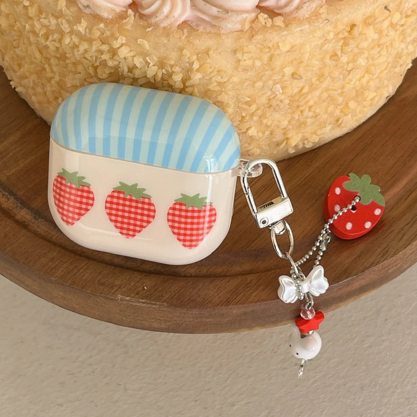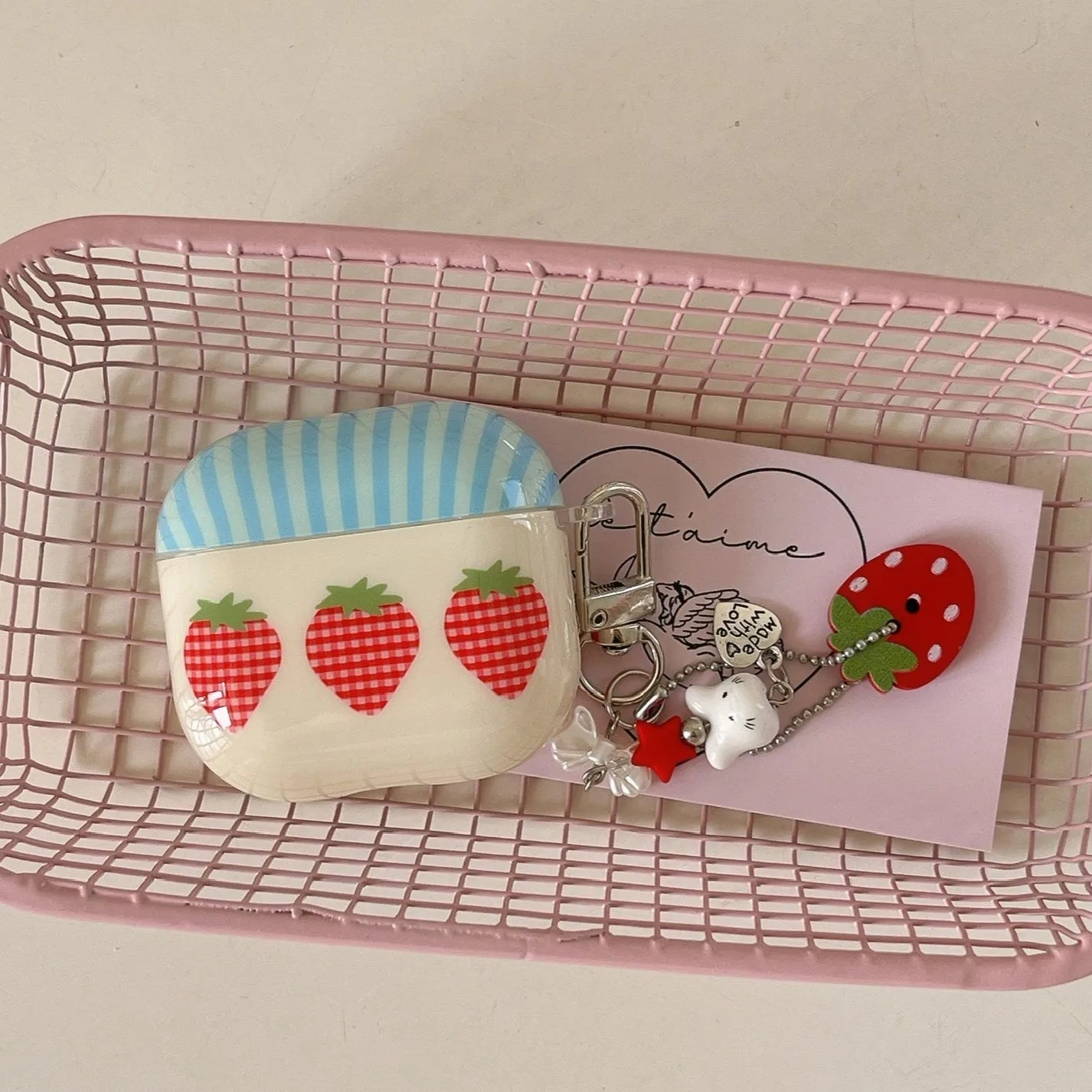 Lange Three Strawberries + Hanging Chain Headphone Case Suitable for Apple for Airpodspro2 Case/For Airpodspro Case/For Airpods4 Case/For Airpods3 Case/For Airpods2 Case/Fashion Women's Headphone Case/Casual Headphone Case