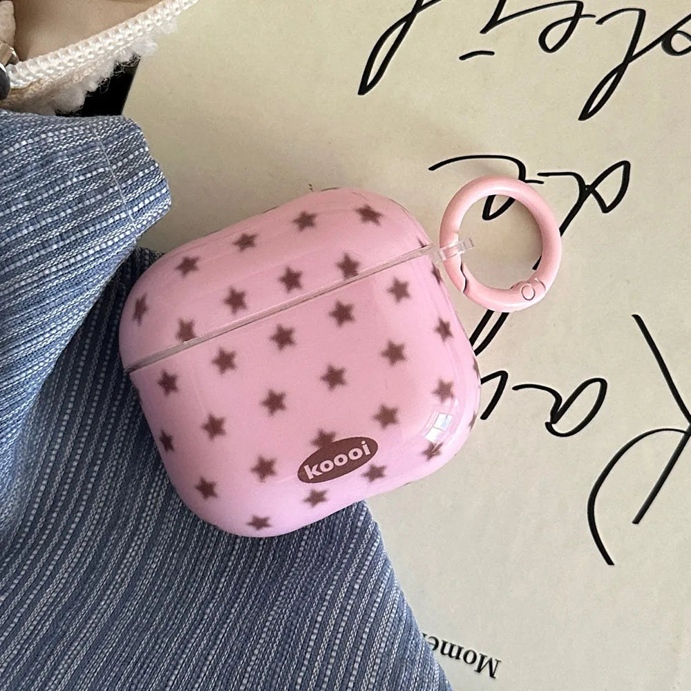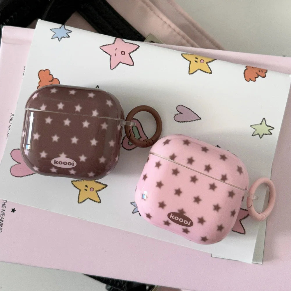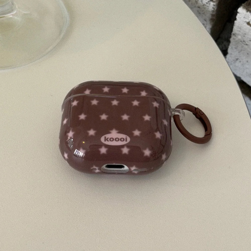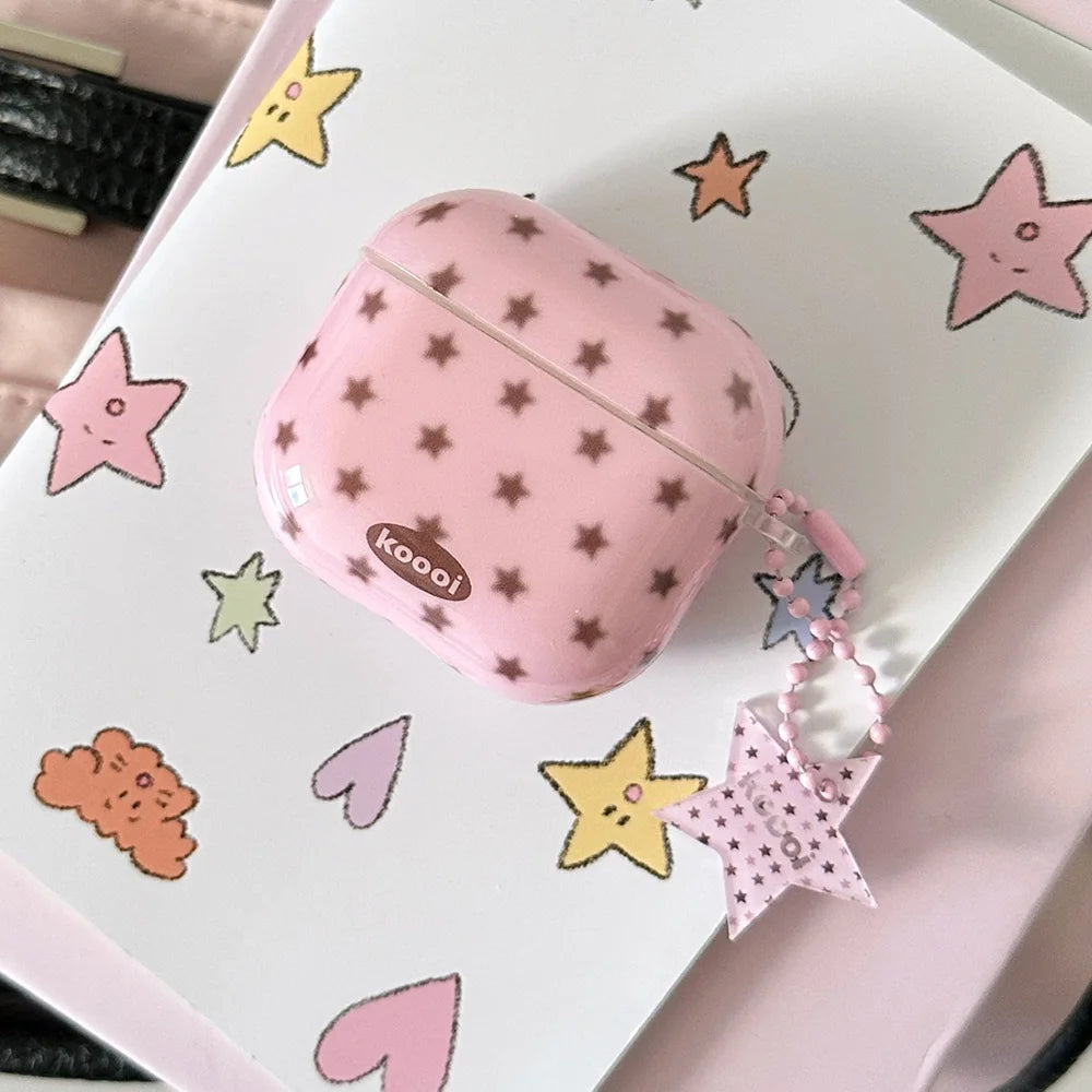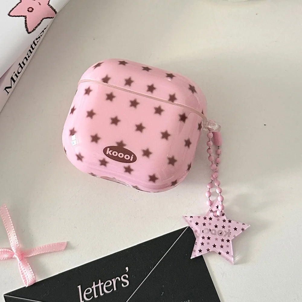 Lovely Brown Star Wireless Bluetooth Earphone Case for Apple AirPods 1 2 3 4 Pro 2 Charge Box Shell With Pink Chain Pendant