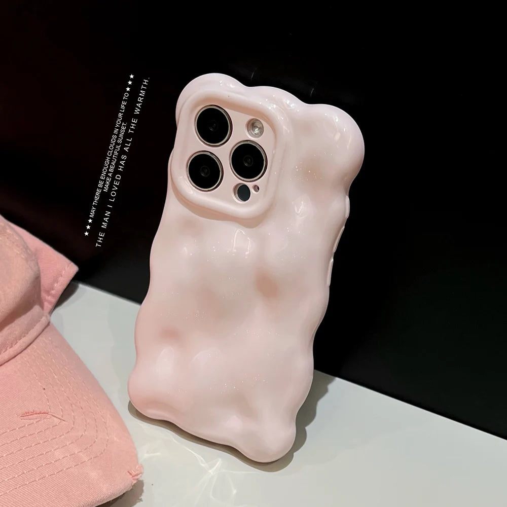 Lovely Pink 3D Bubble Gloss Silicone Shockproof Phone Back Cover Fundas Case For iPhone 11 12 13 14 15 16 Pro Max Plus Coque
