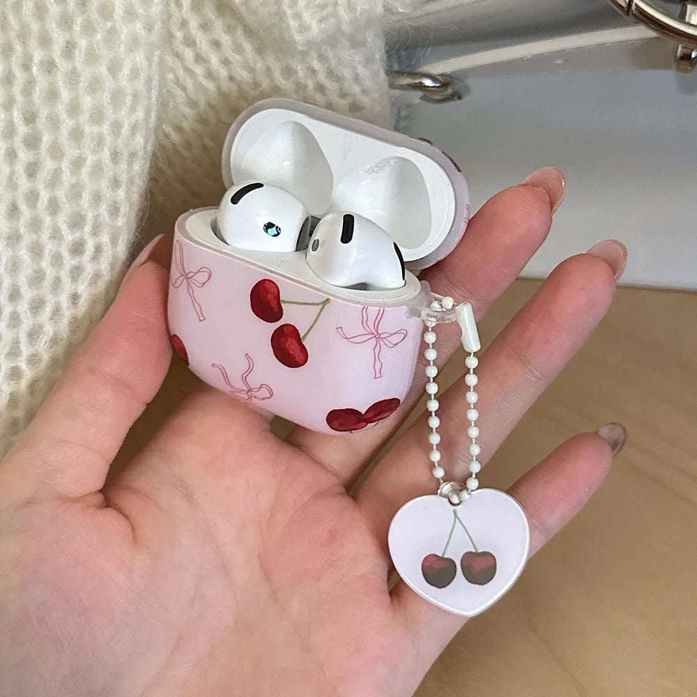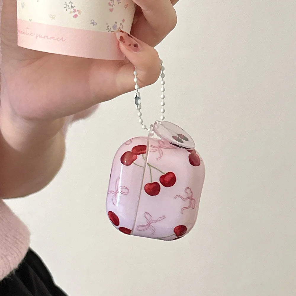 Lovely Pink Cherry Bowknot Gloss Soft Earphone Case For AirPods 4 For AirPods Pro 2 3 1 Headphone Accessories Protection Cover