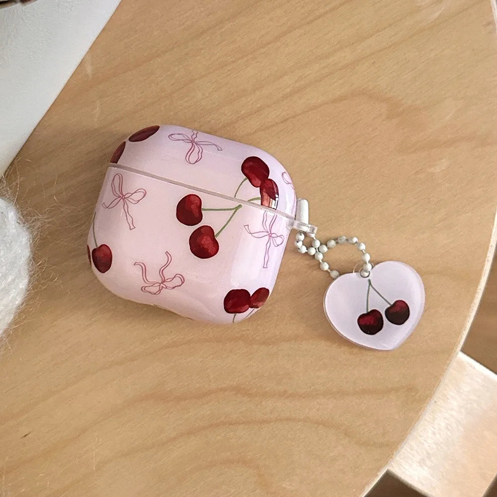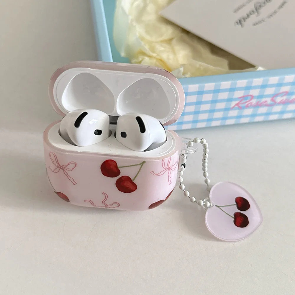 Lovely Pink Cherry Bowknot Gloss Soft Earphone Case For AirPods 4 For AirPods Pro 2 3 1 Headphone Accessories Protection Cover