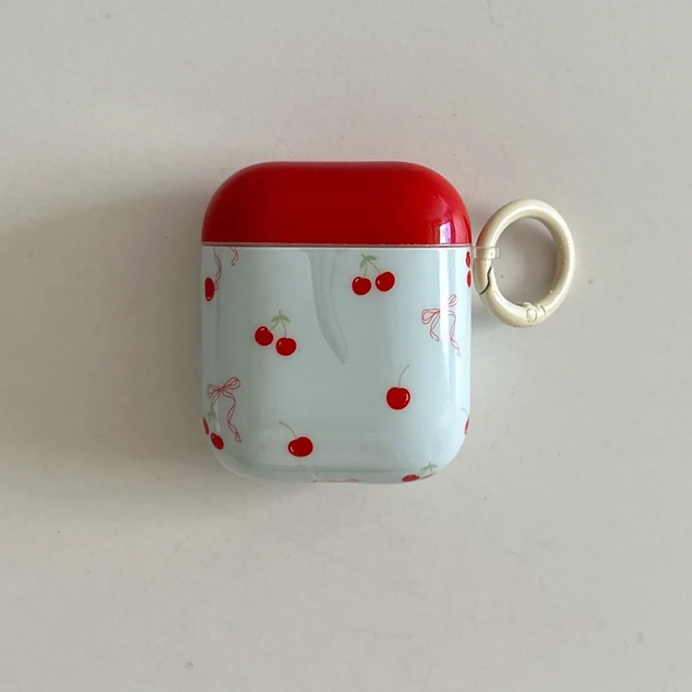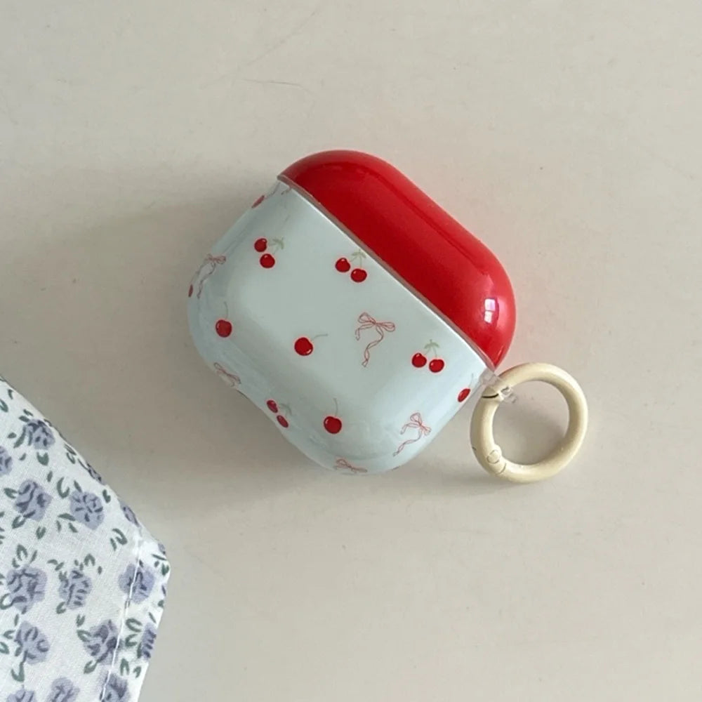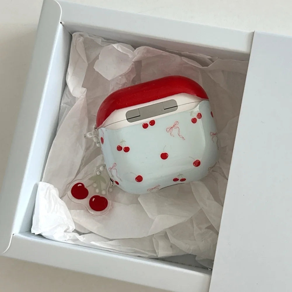 Lovely Red Cherry Bowknot Gloss Pattern Wireless Bluetooth Earphone Case For AirPods Pro 2 4 3 2 1 Soft Shell Funda With Pendant