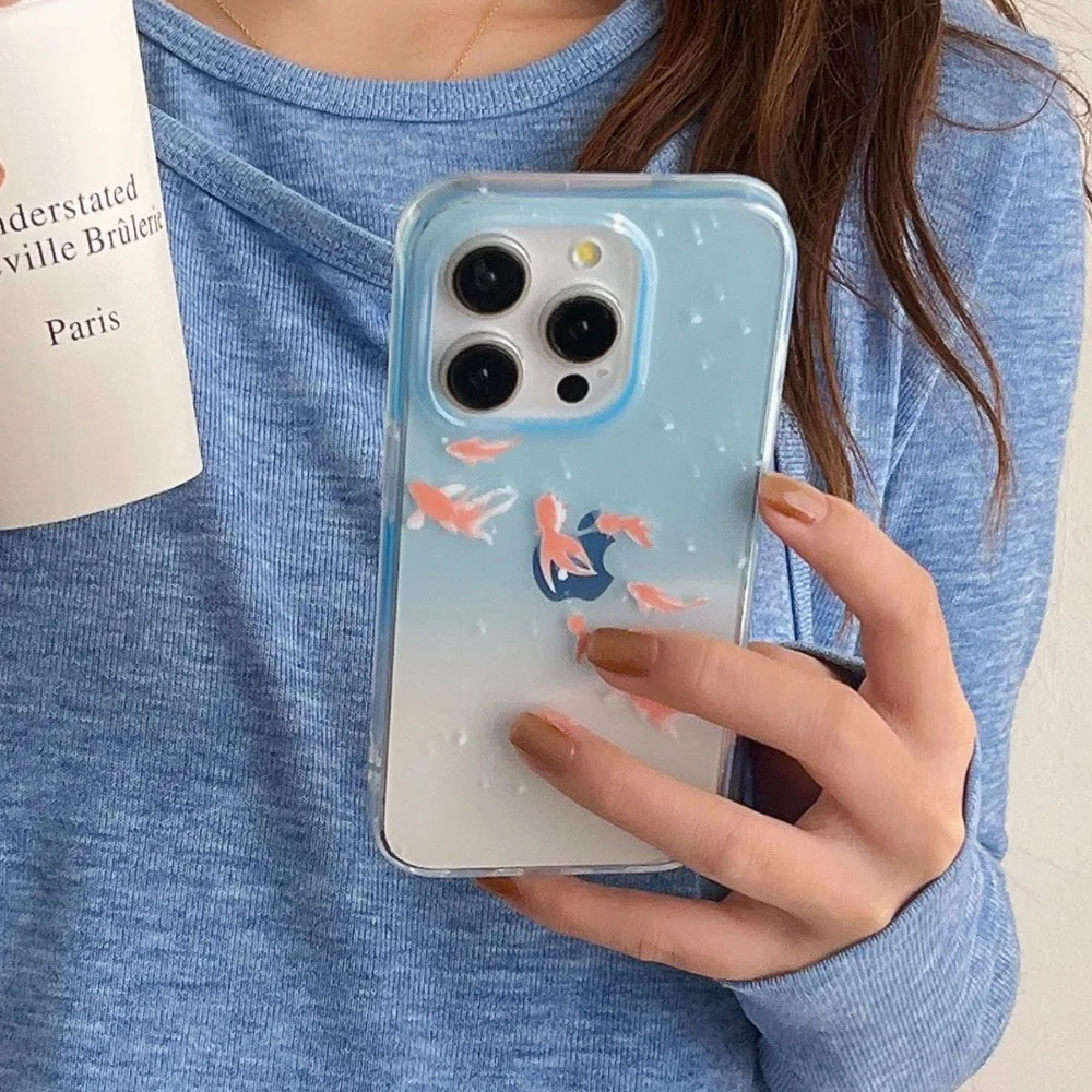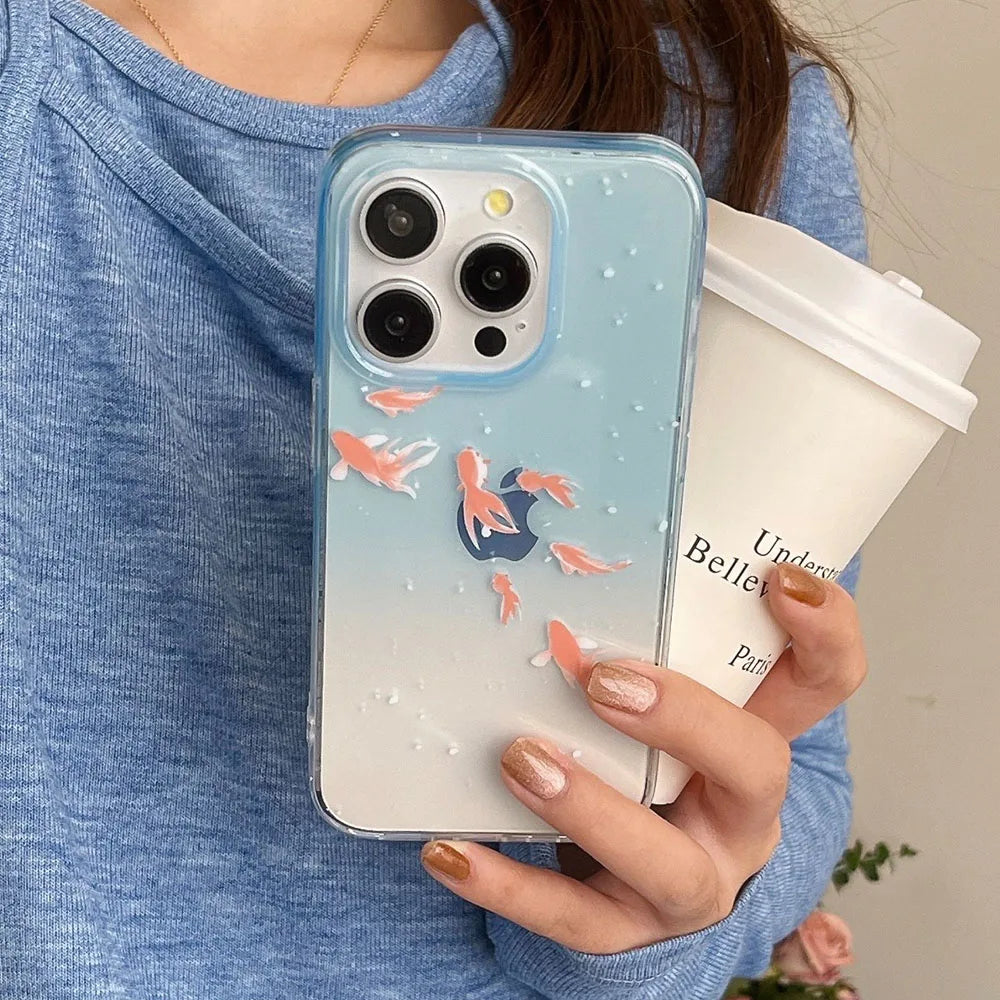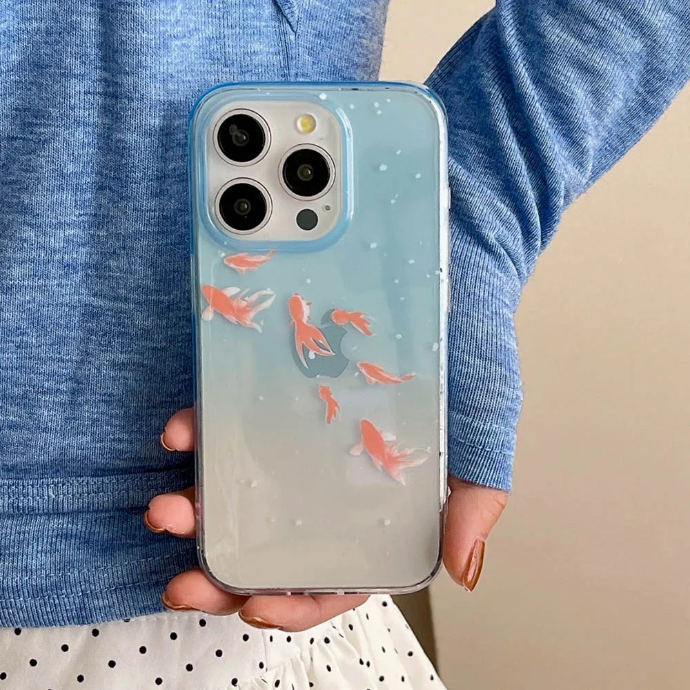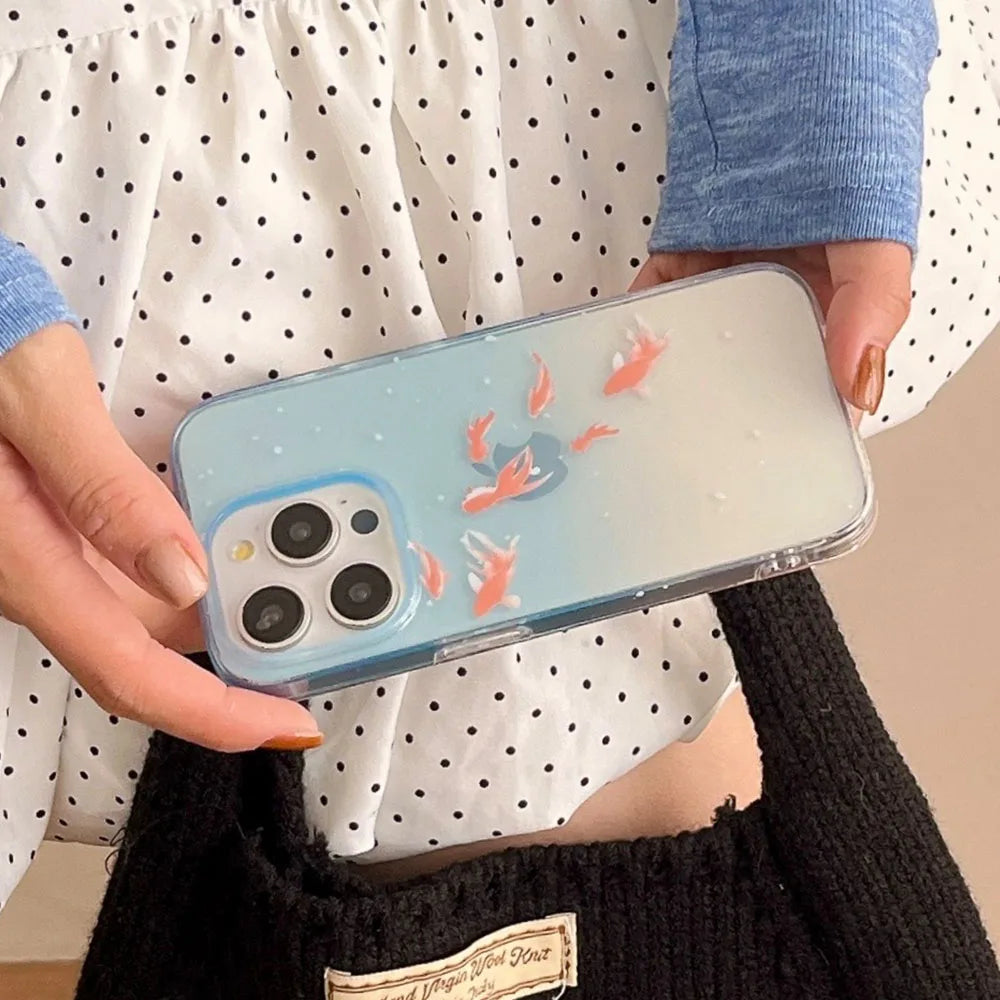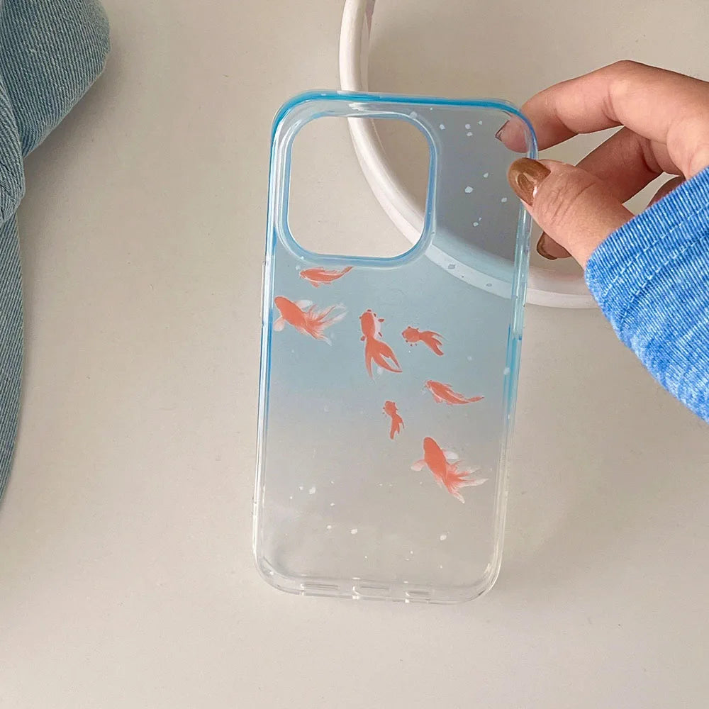 Lucky Fish Koi Carp Gradient Phone Case For iPhone 16 15 14 13 12 Pro Max 16Promax 15Pro Soft Transparent Protection Cover funda