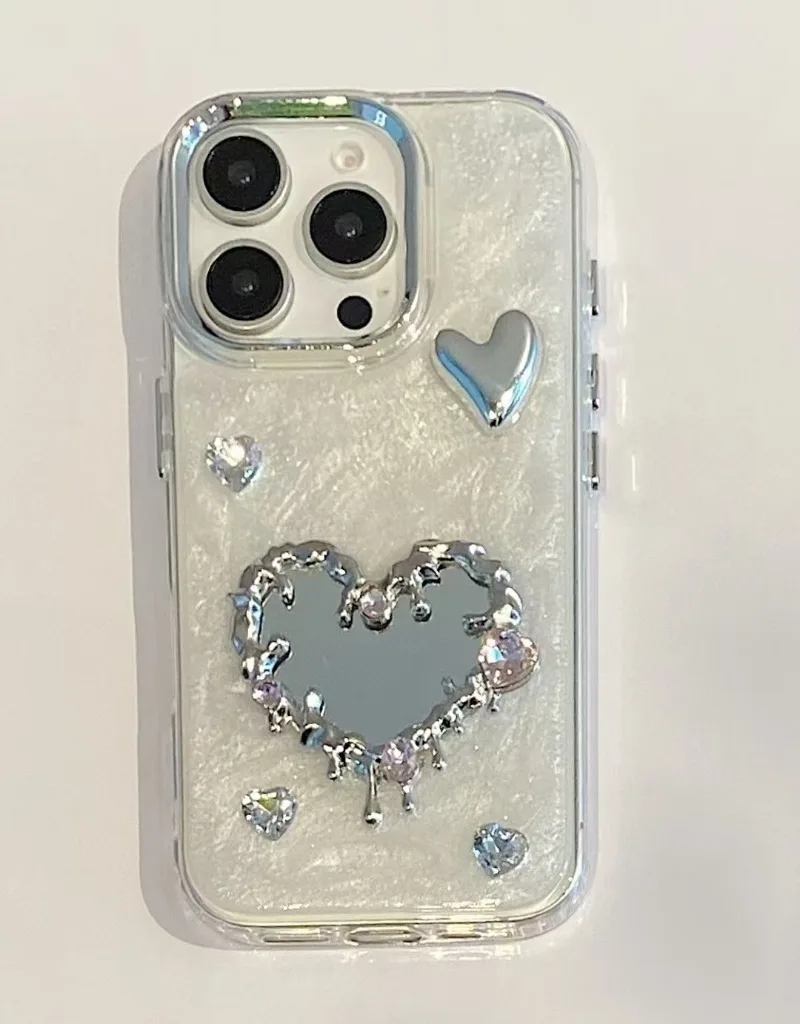 Luxury 3D Diamand Love Heart Mirror Phone Case For iphone 16 15 14 13 12 11 Pro Max Plus Girl Glitter Epoxy Electroplated Cover
