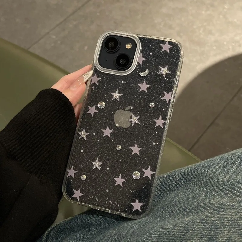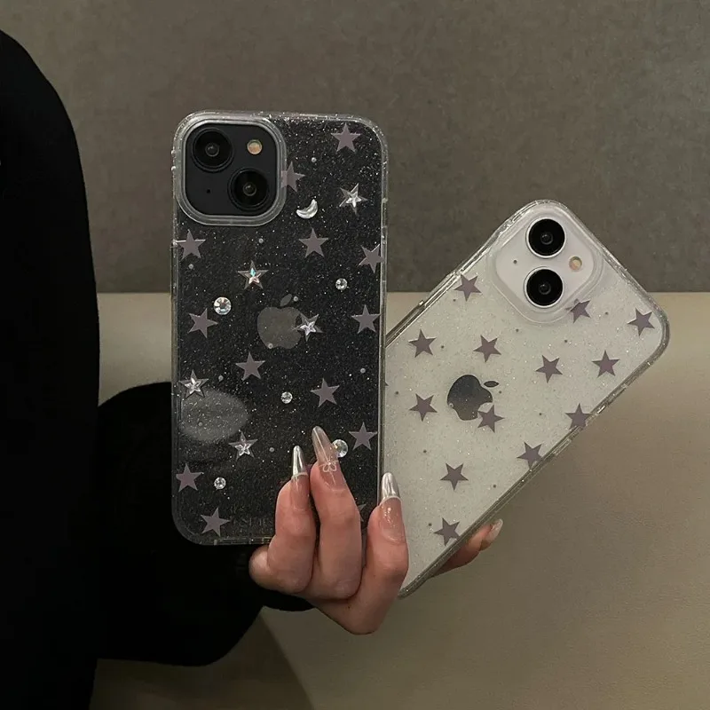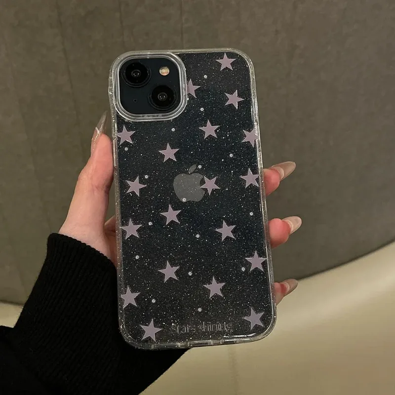 Luxury Bling Glitter Star Clear Case For iPhone 15 14 Pro Max 13 12 14 15 16 Pro Shockproof Transparent Soft Cover