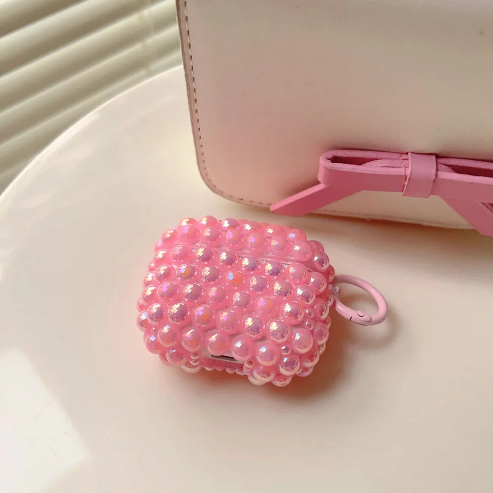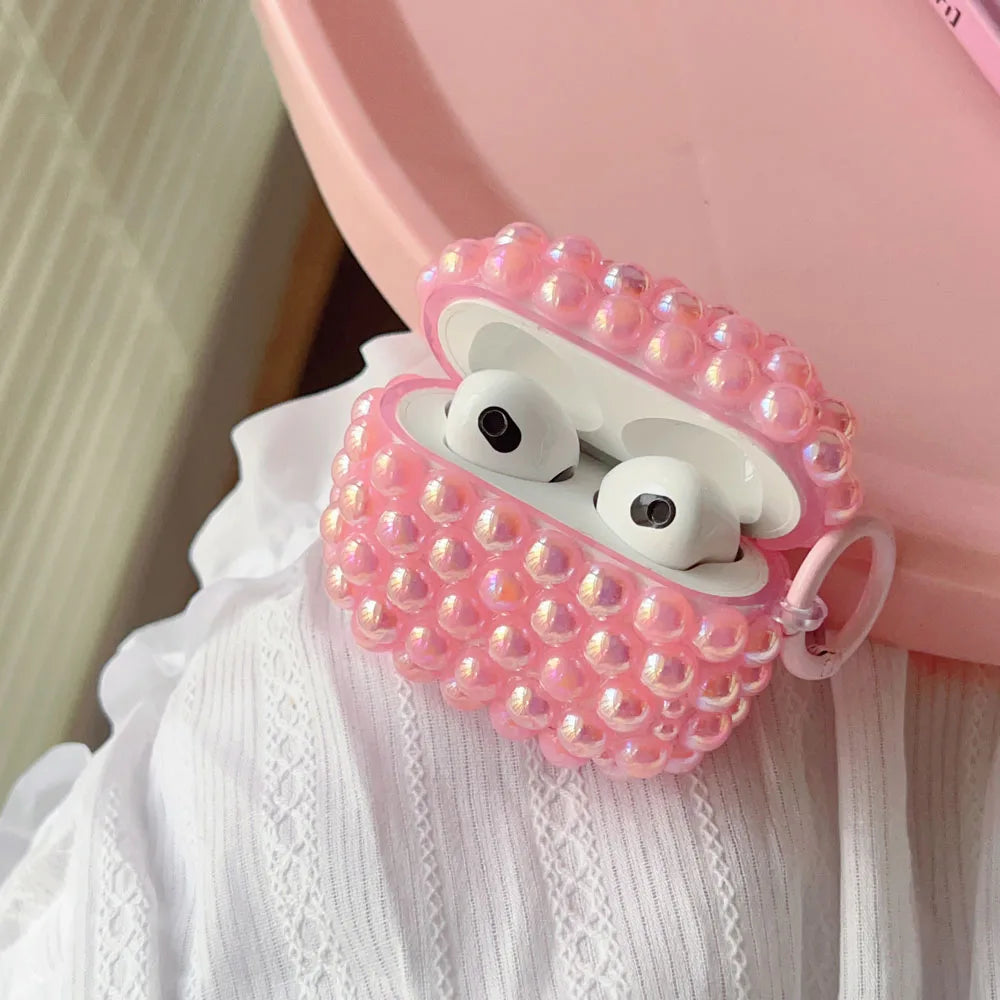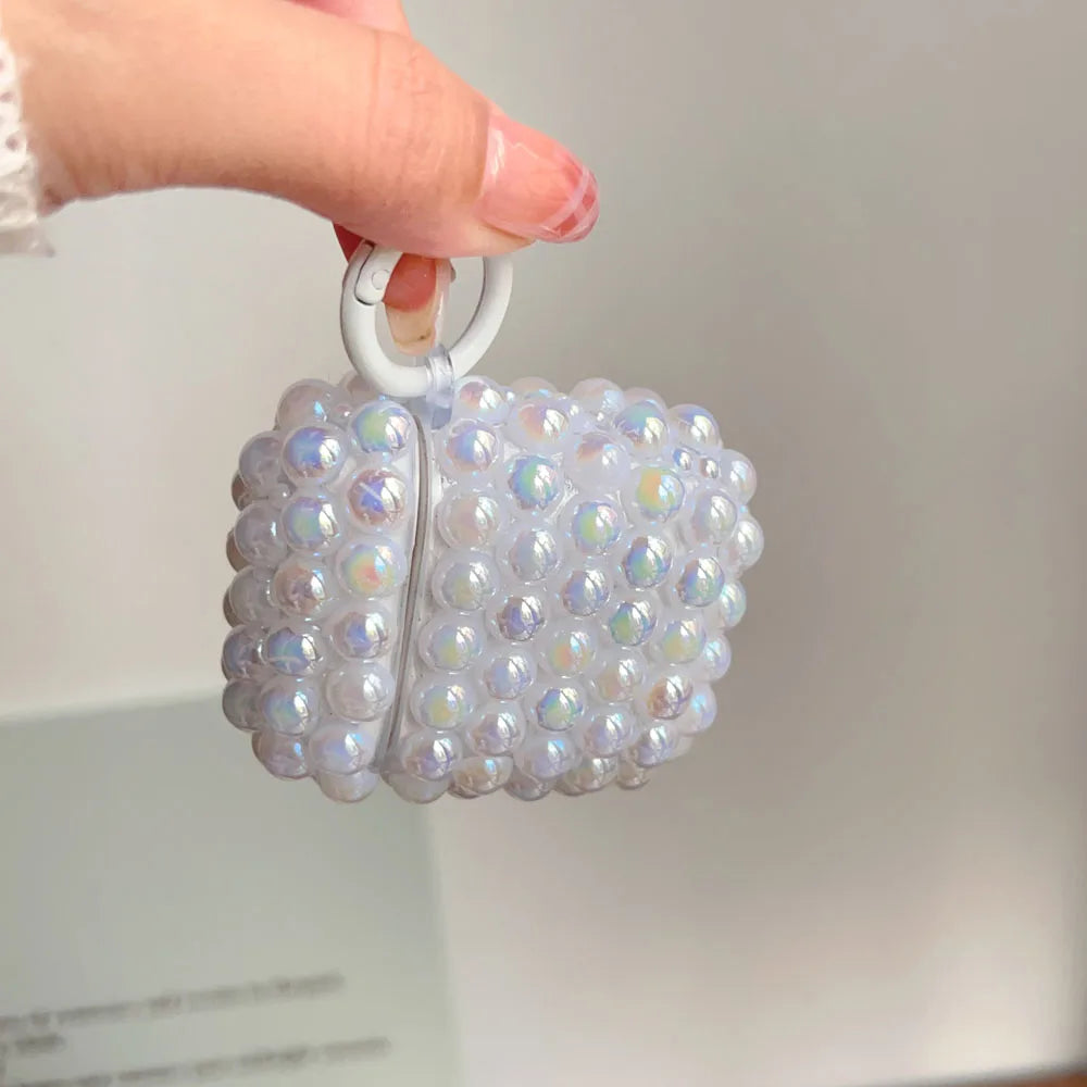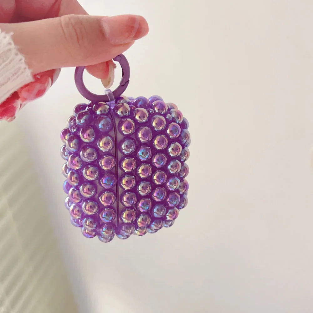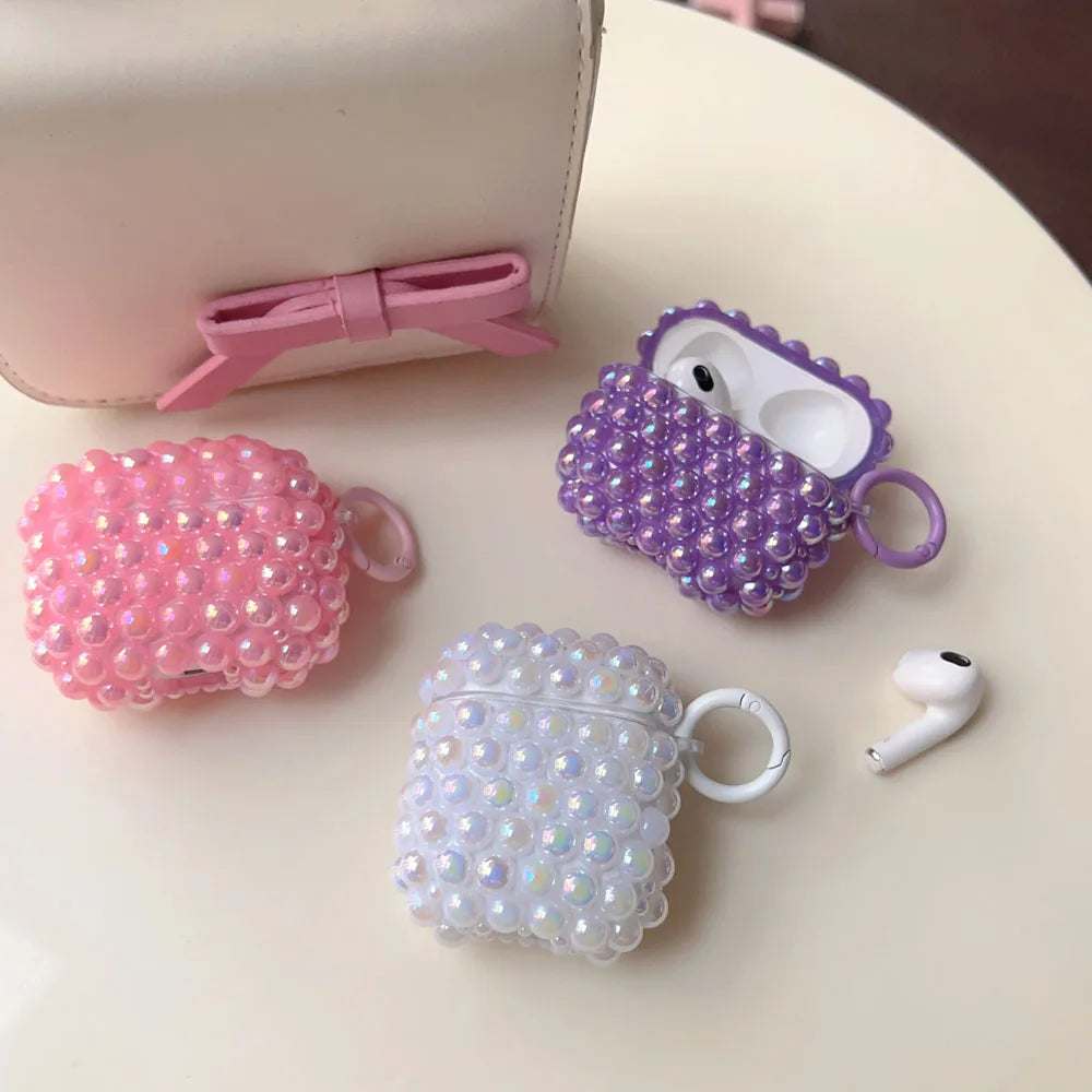 Luxury DIY Shiny Laser Purple Pink White Pearl Soft Earphone Case for Apple AirPods 4 3 2 Cover With Keychain for AirPods Pro 2