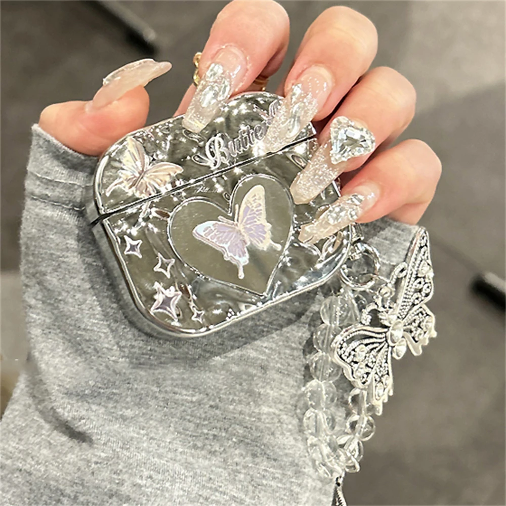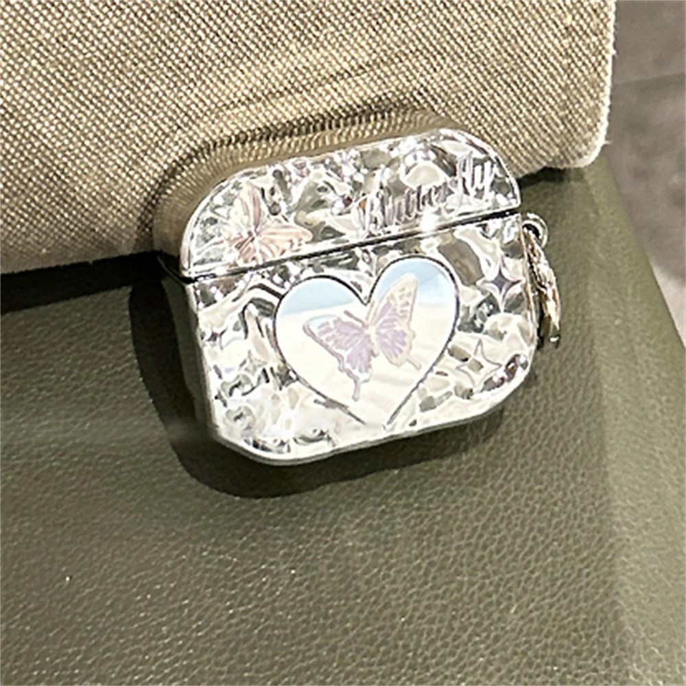 Luxury Plated Pleated Butterfly Mirror Protective Shell Soft Case For Airpods 1 2 3 Earphone With Pendant Cover or Airpods Pro 2