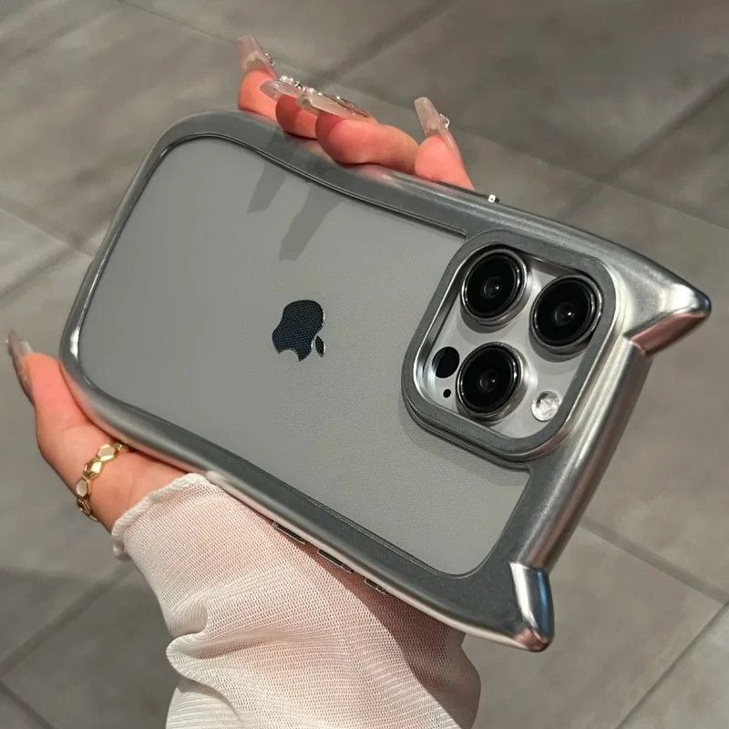 Luxury Plating Silicone Cute Cat Ears Armor Bumper Case For iPhone 15 14 13 12 11 Pro Max Plus Shockproof Protective Cover