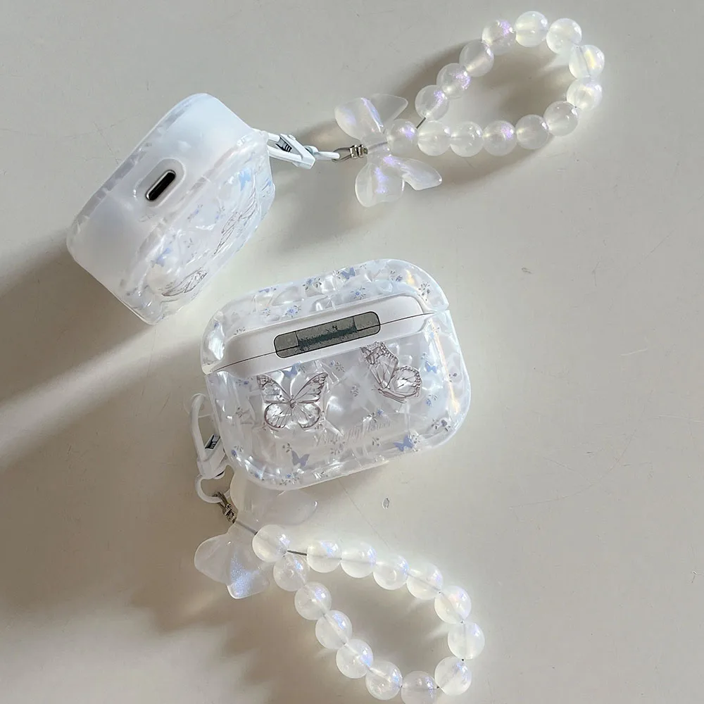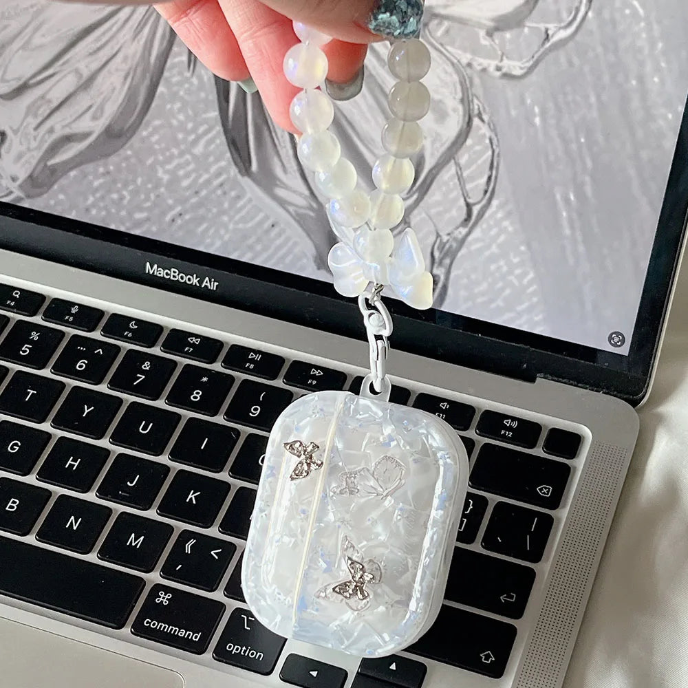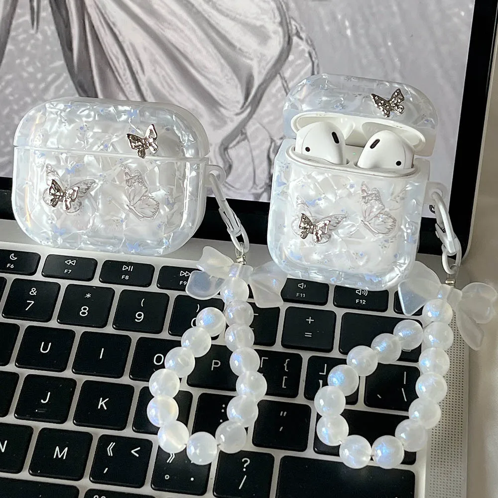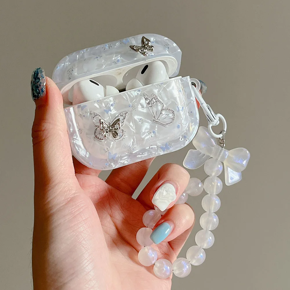 Luxury Shell Texture Metal Butterfly Girls Case For Airpods Pro 2 1 Earphone Box Cover For Apple AirPods Pro2 3 Bag with Pendant