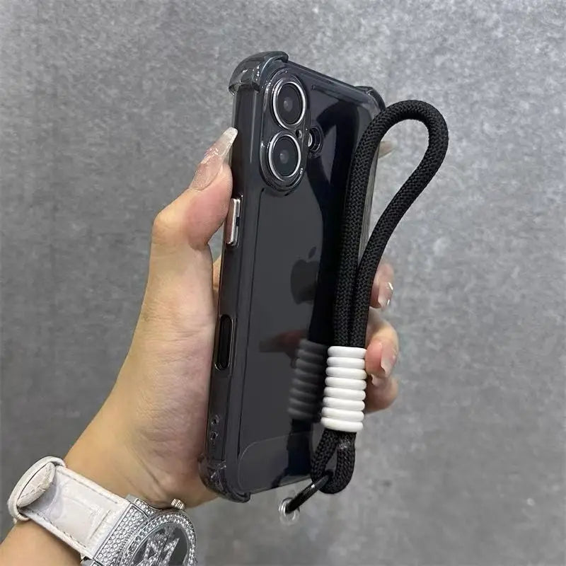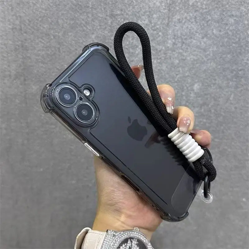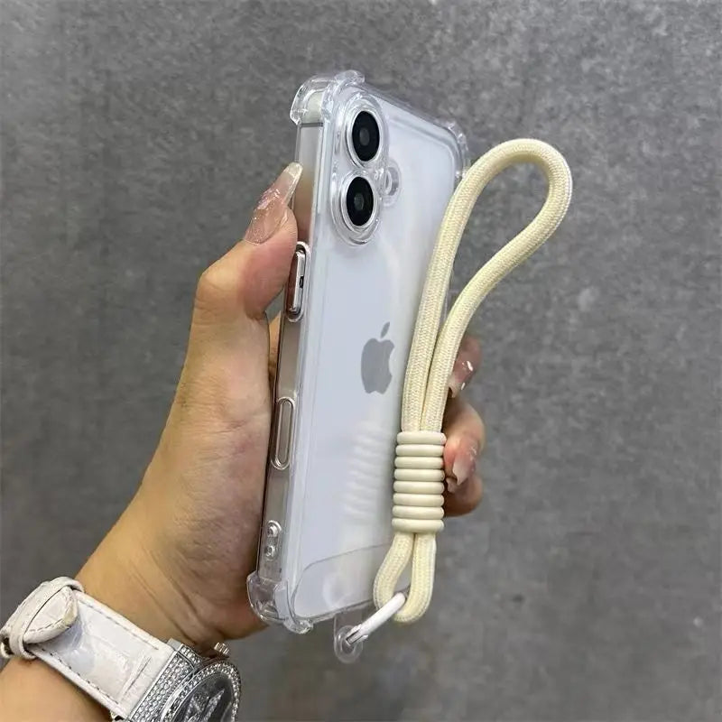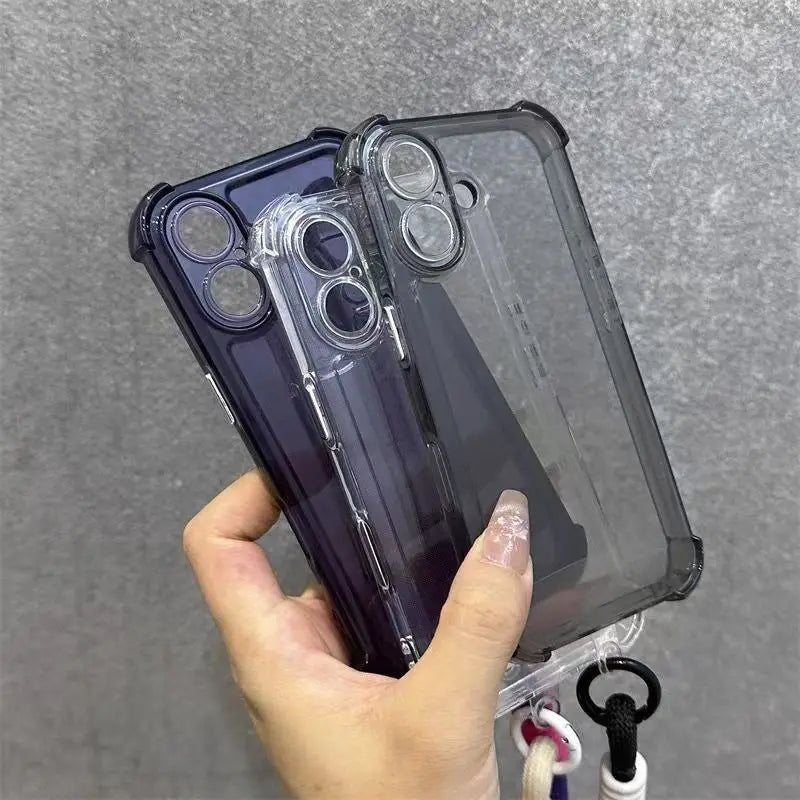 Luxury Transparent With Lanyard Phone Case For iPhone 17 16 15 14 13 12 11 Pro Max XS X XR 7 8 16 Plus 16E Shockproof Soft Cover