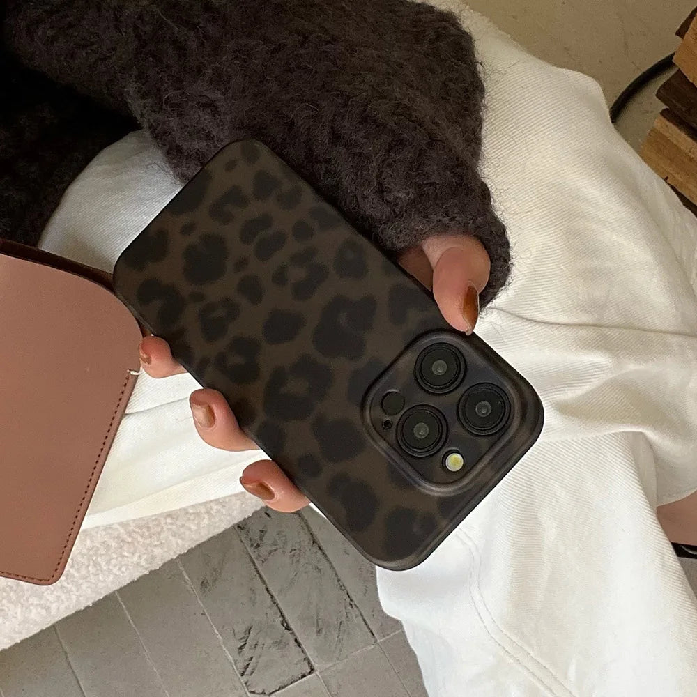 Matte Leopard Amber Silicone Back Cover Neutral Mobile Phone Case For iPhone 16 15 14 13 12 11 Pro Max Protective Fundas Cover