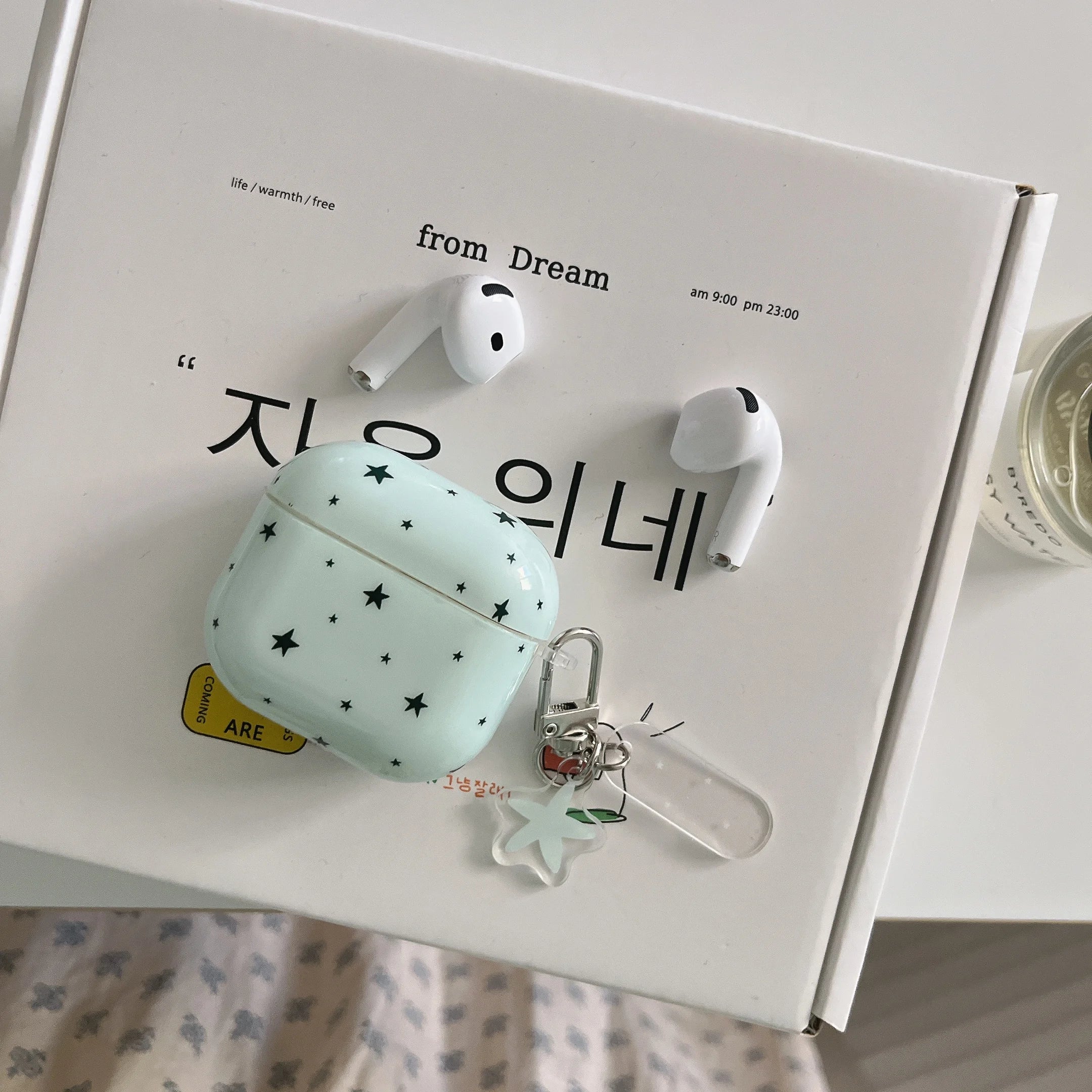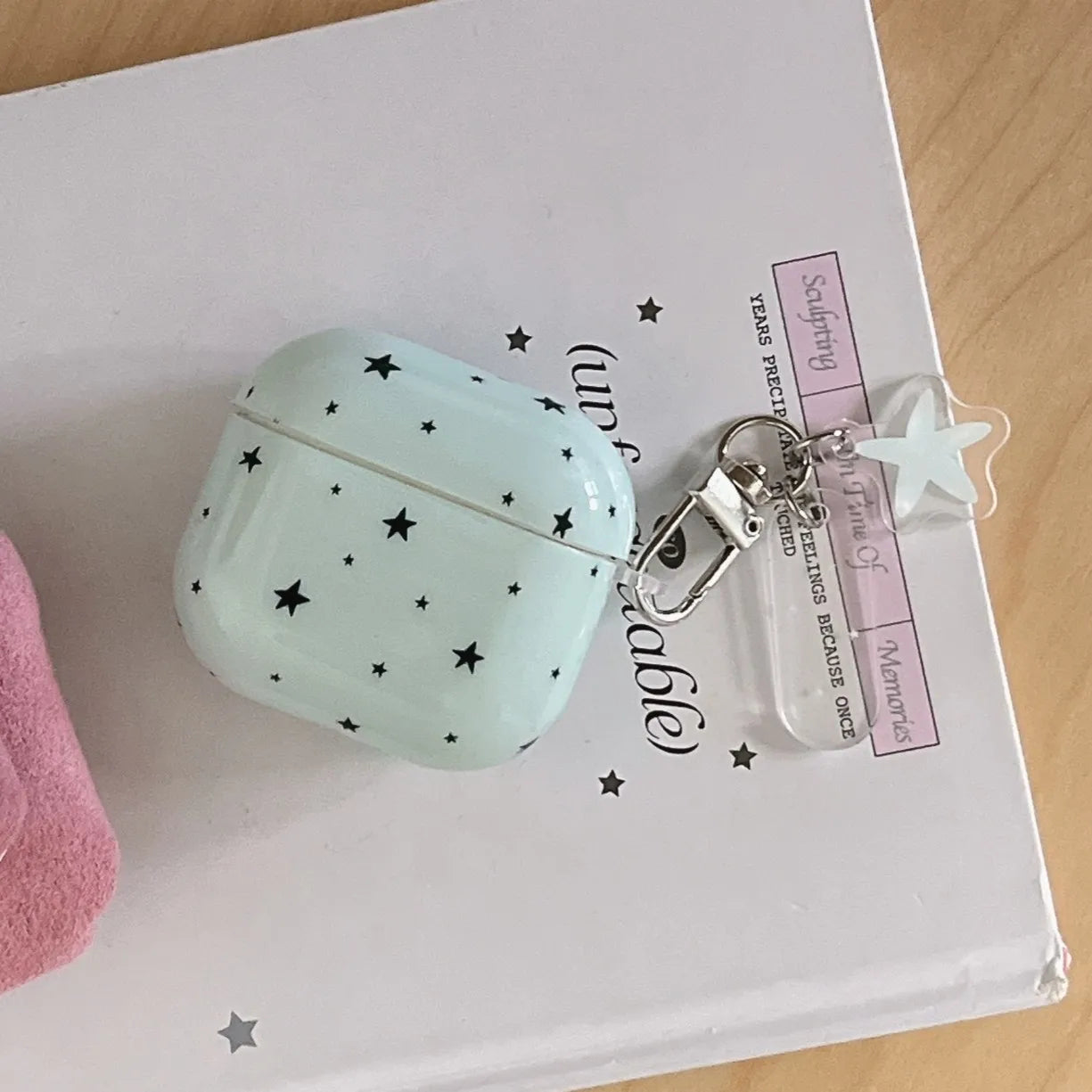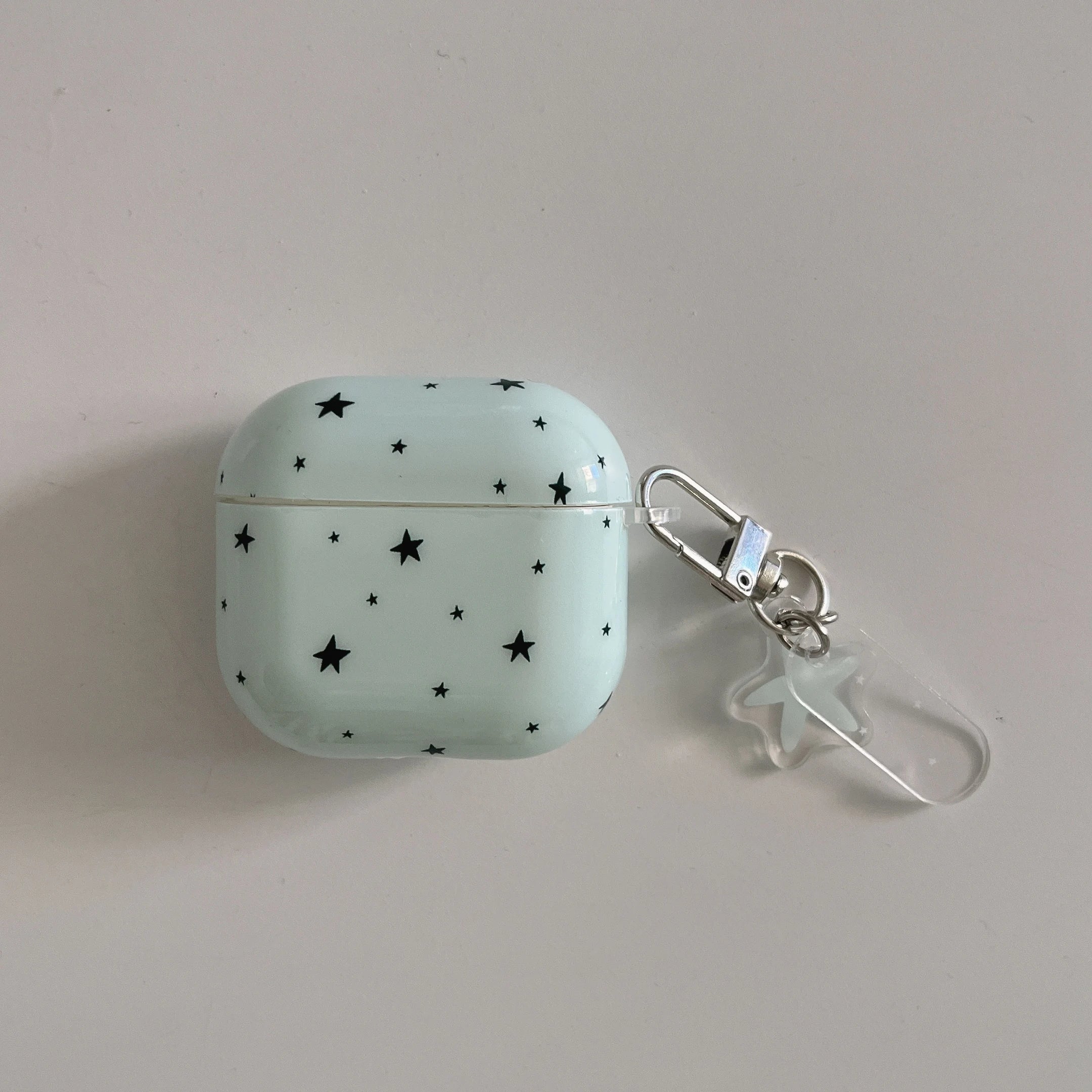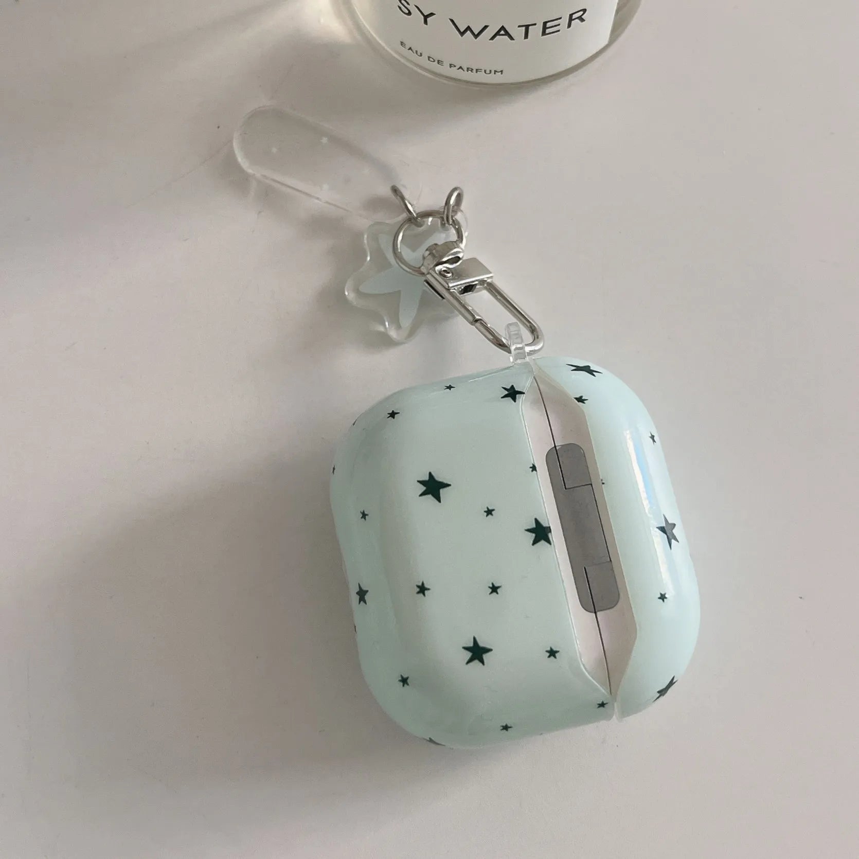Mint Blue and Black Stars + Pendant Earphone Case Suitable for Apple for Airpodspro2 Case/For Airpodspro Case/For Airpods4 Case/For Airpods3 Case/For Airpods2 Case/Fashionable Women's Earphone Case/Simple Earphone Case