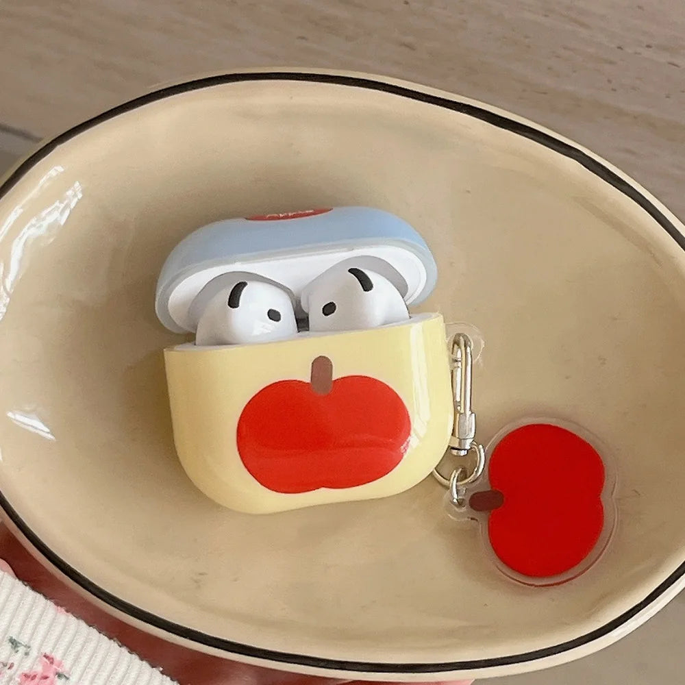 New Cute Red Apple Pattern Gloss Shockproof Protective Cover Case For AirPods 1 2 3 4 Pro 2 Earphone Bluetooth Earphone Shell