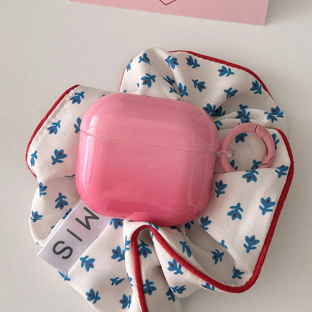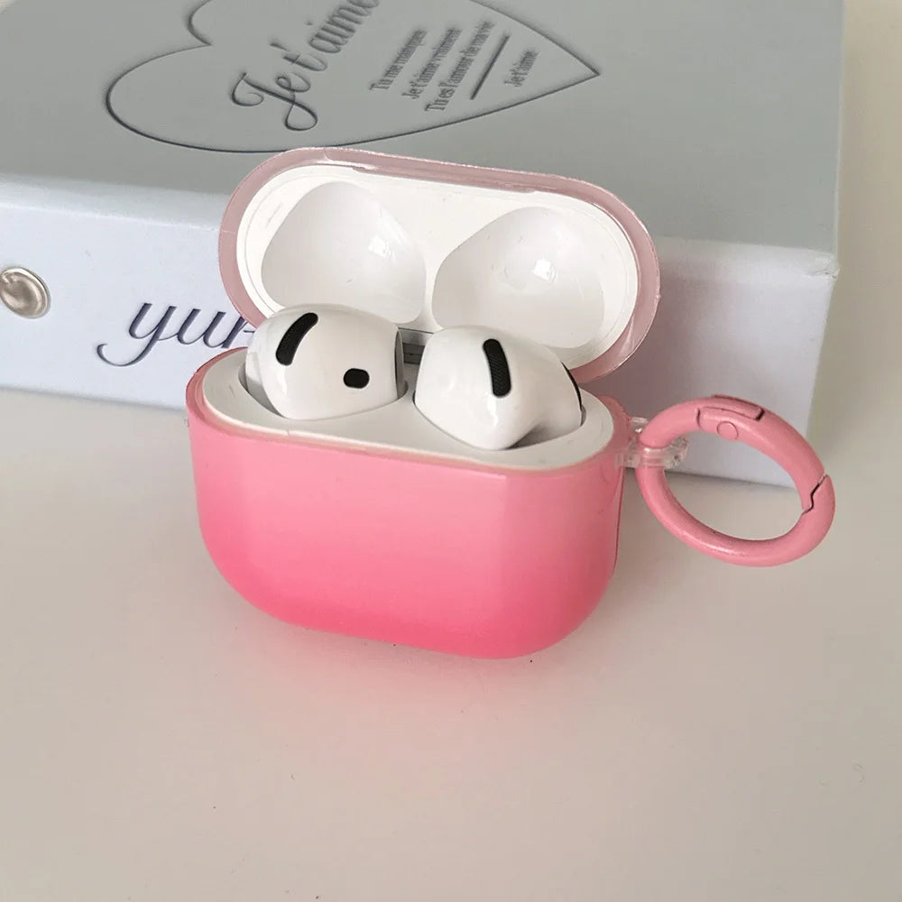 New Gradient Pink Gloss Smooth Soft Silicone Case With Keychain For Apple AirPods Pro 2 3 4 1 Wireless Bluetooth Earphone Cover