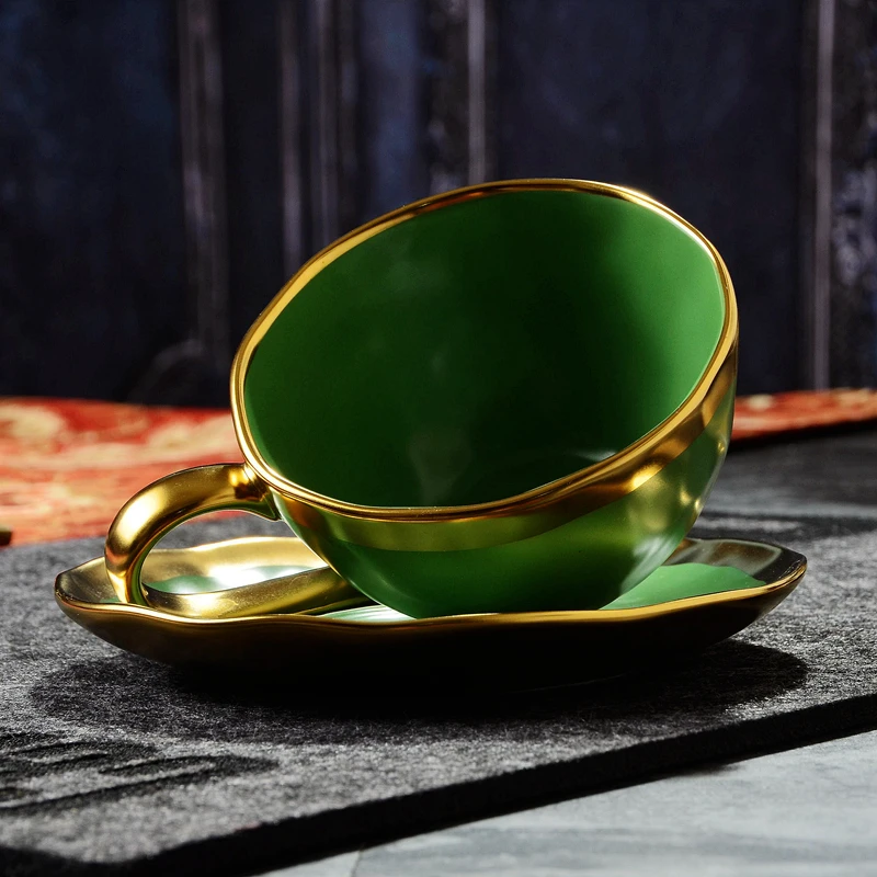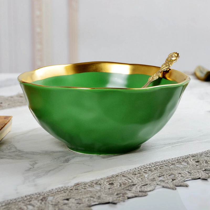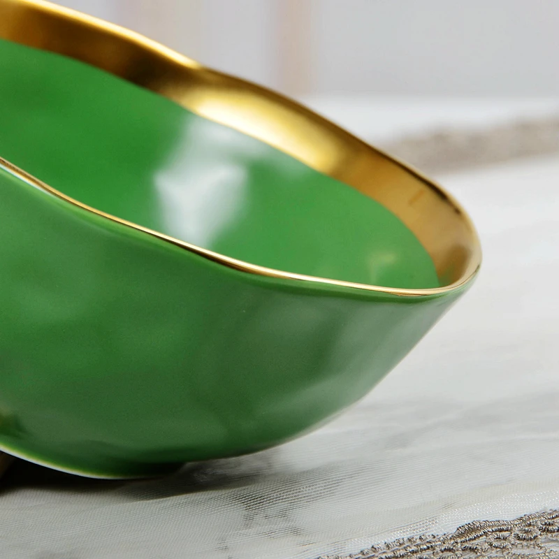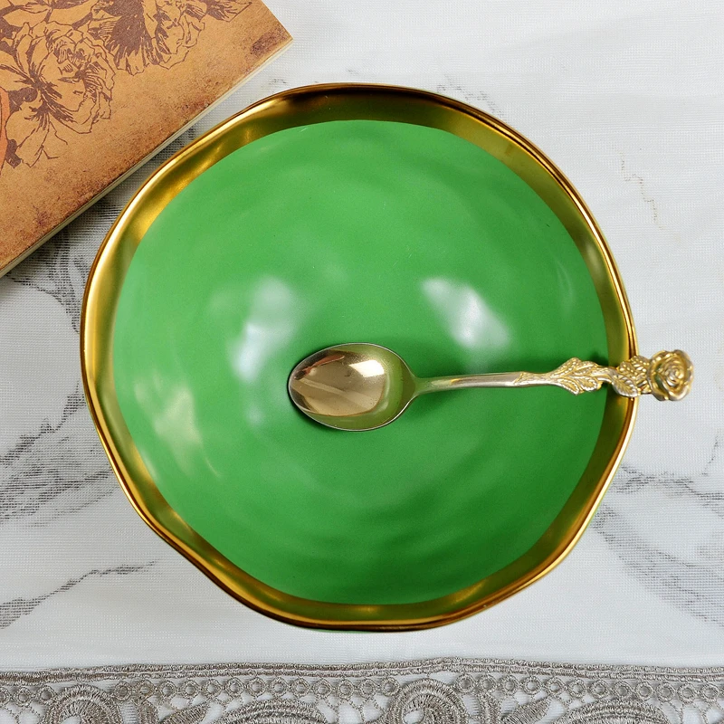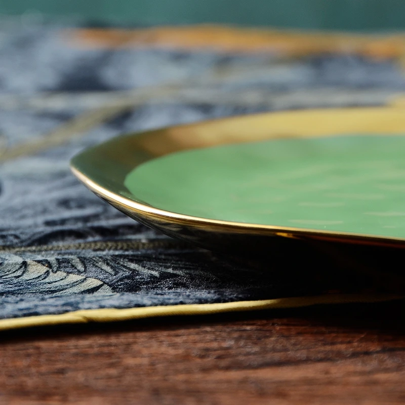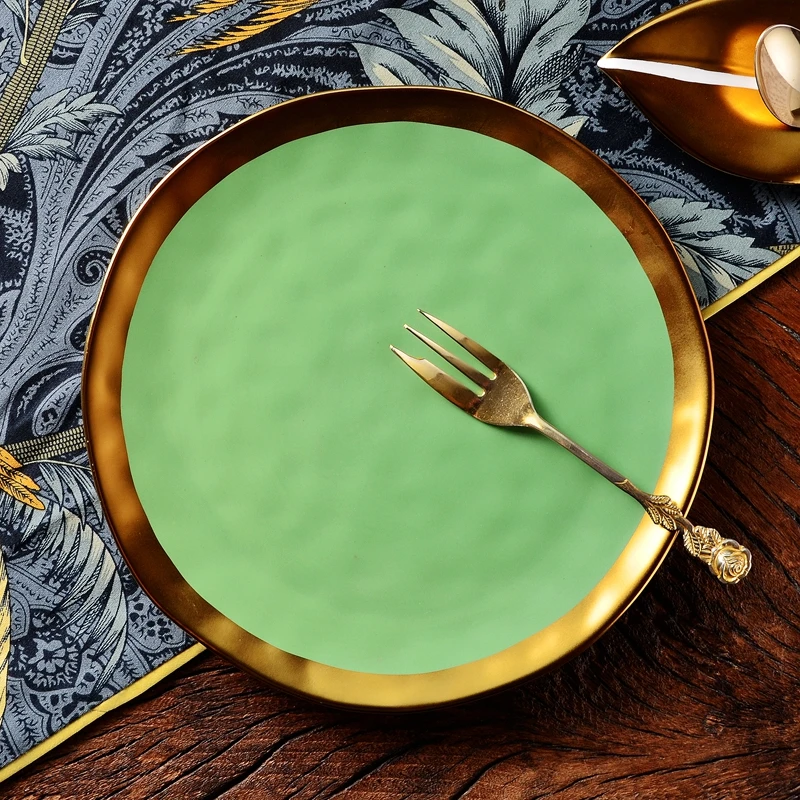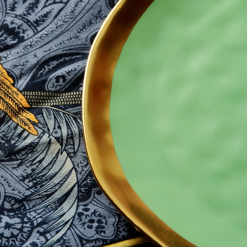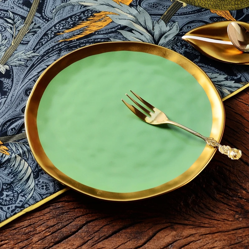 Nordic minimalist gold-plated glazed ceramic dining plate, food plate, fruit plate, flat plate, Western food plate