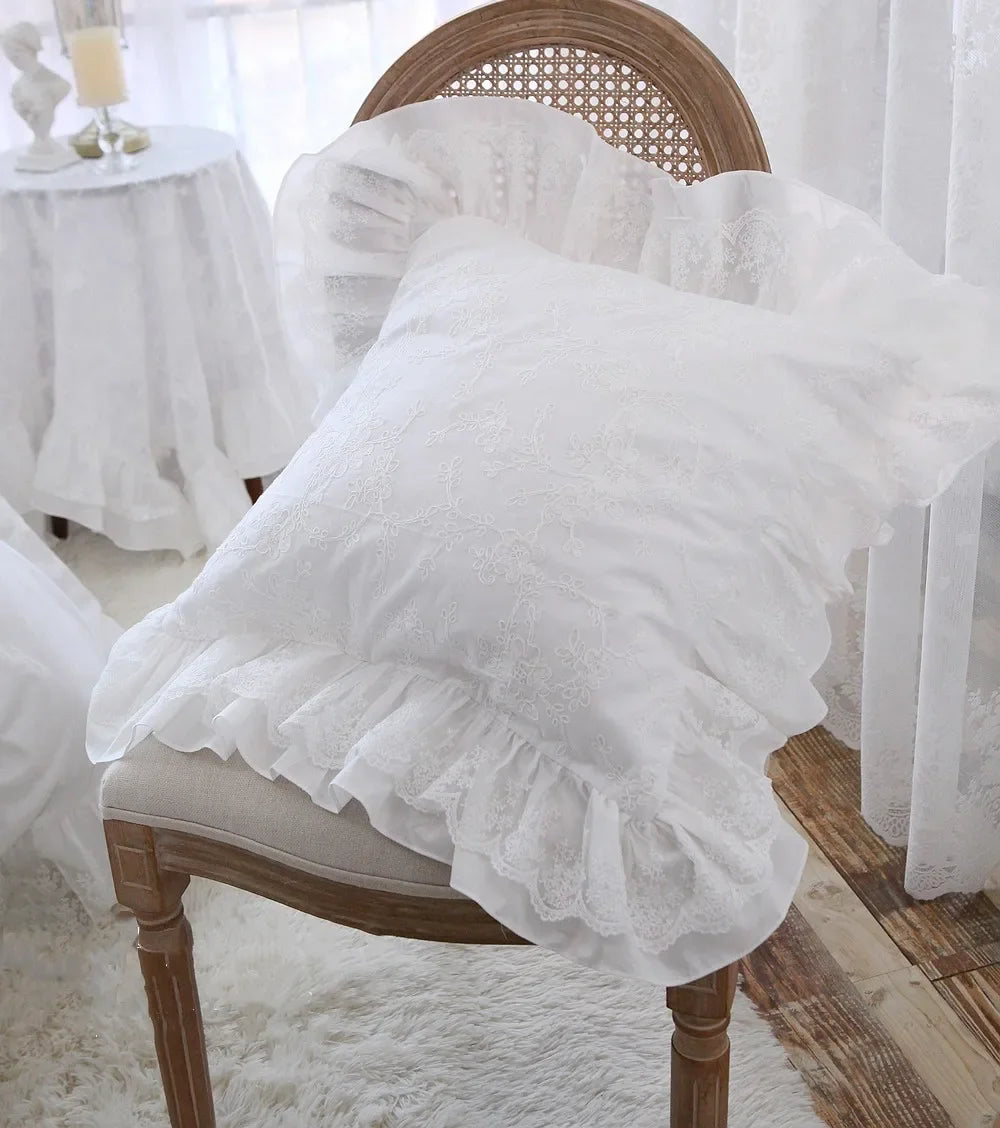 Off White Ruffle Lace Sofa Cushion Cover, Pillowcase, Decorative, Luxury, Home Decor