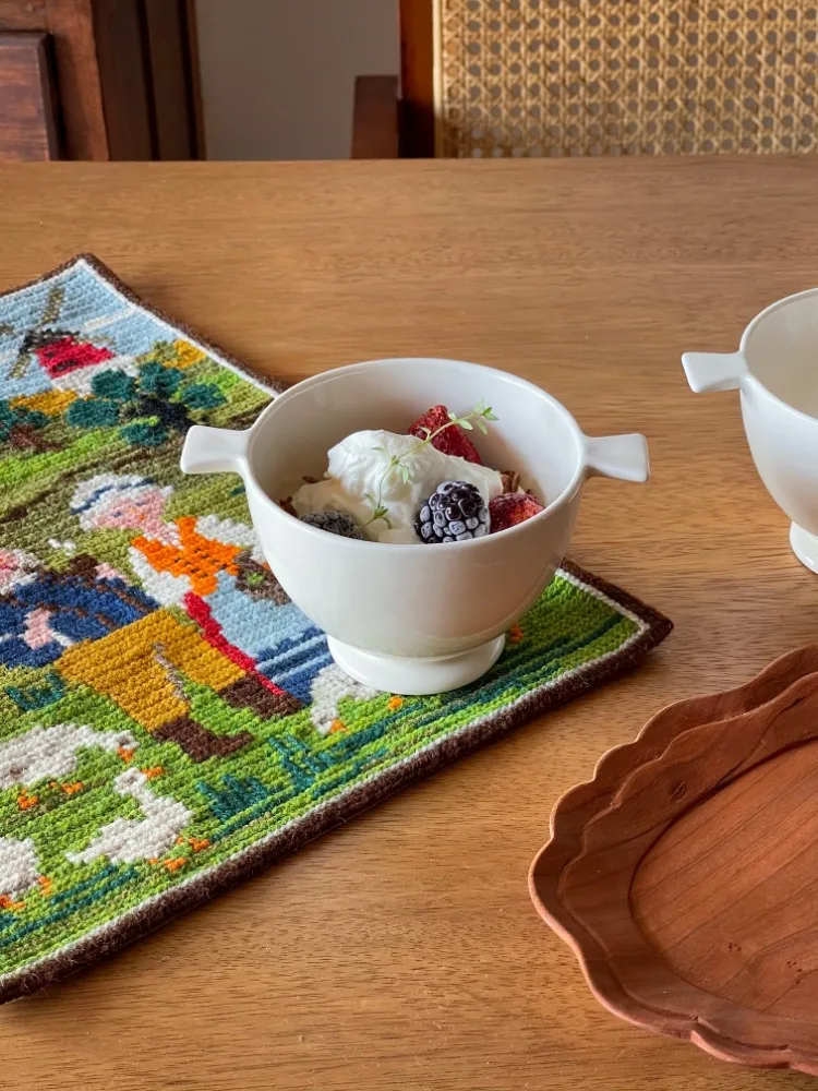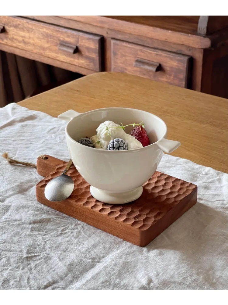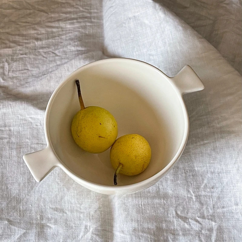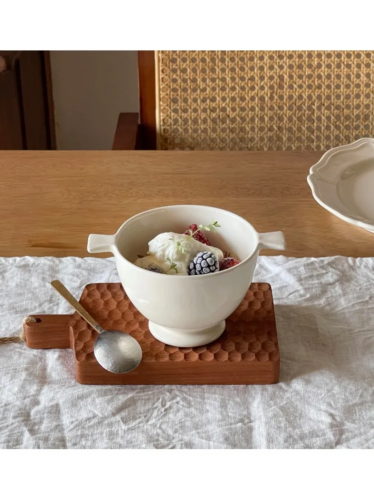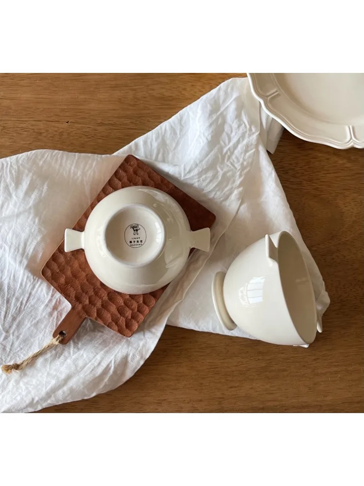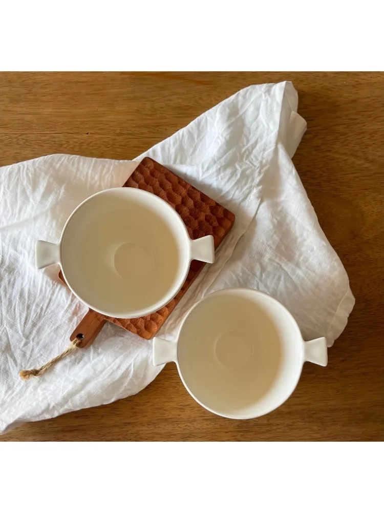 Original Design Two Ear Short Footed Bowl Warm and Creamy White Ceramic Breakfast Bowl Cute