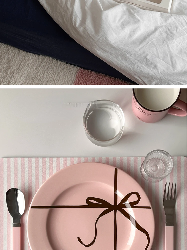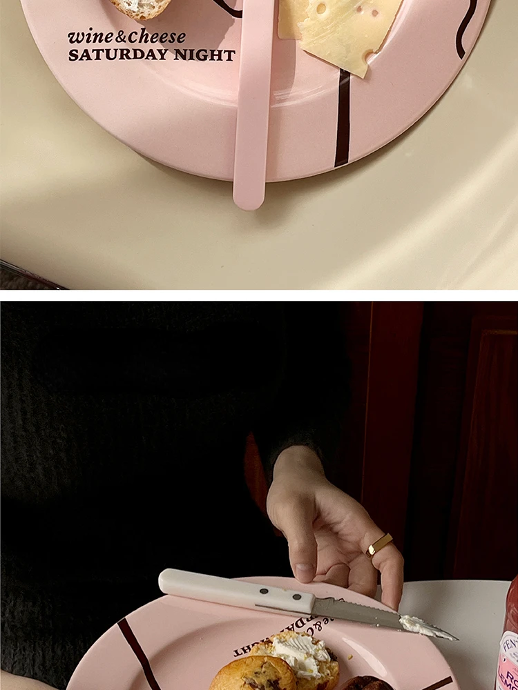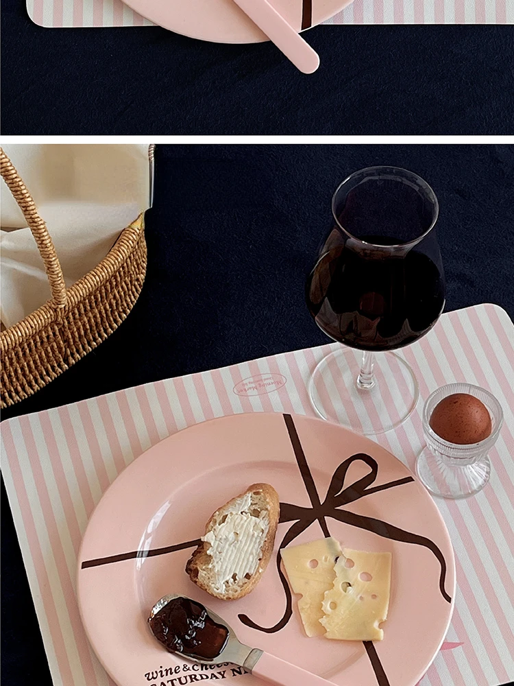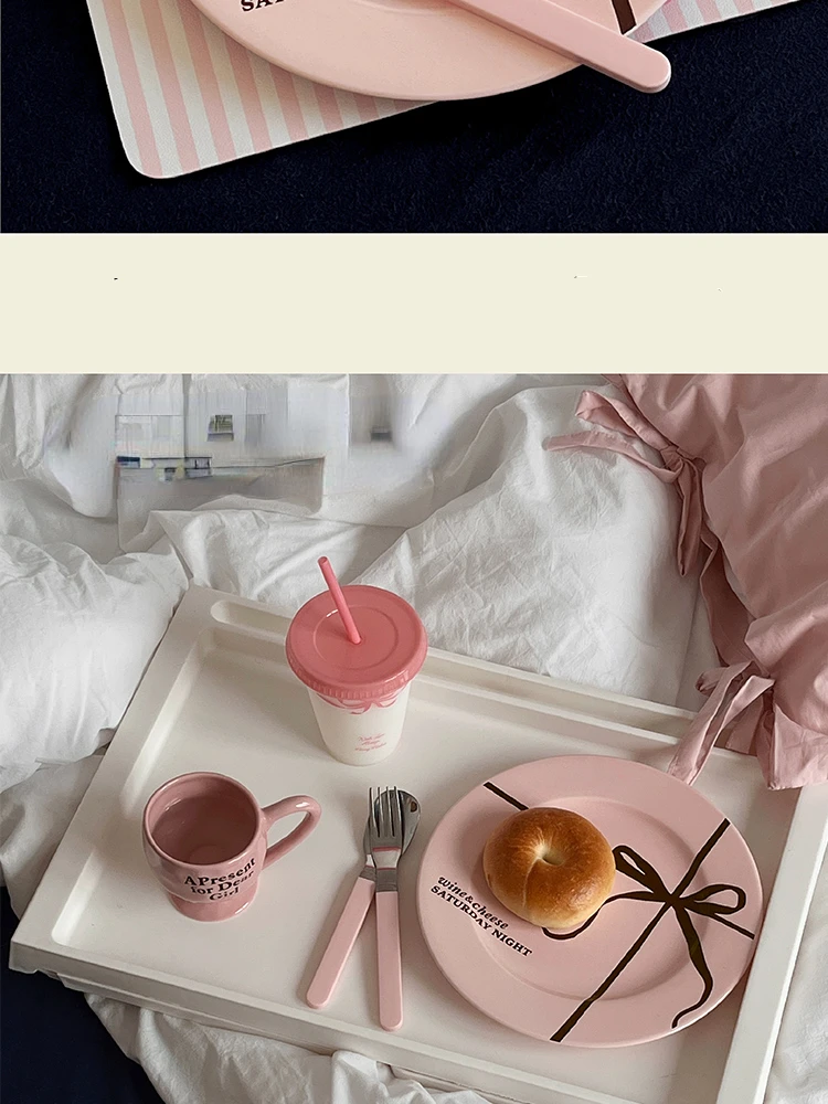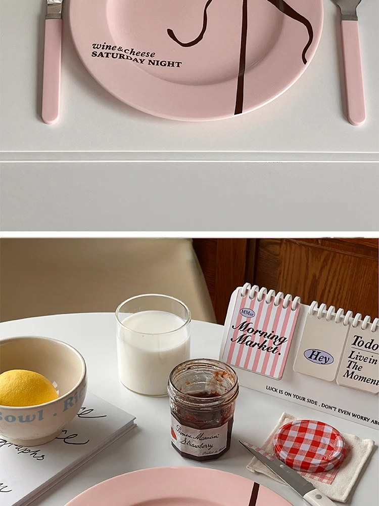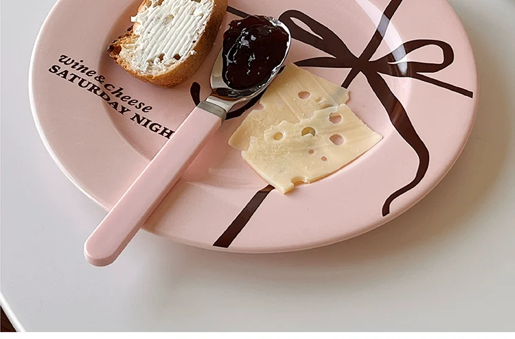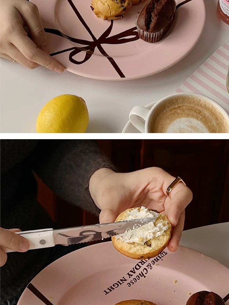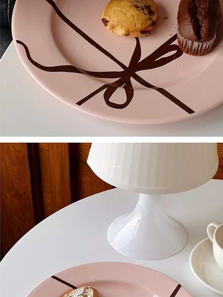 Original Pink Bow Ceramic Plate Flat Plate 10 Inch Large Breakfast Western Plate Dinner Plates