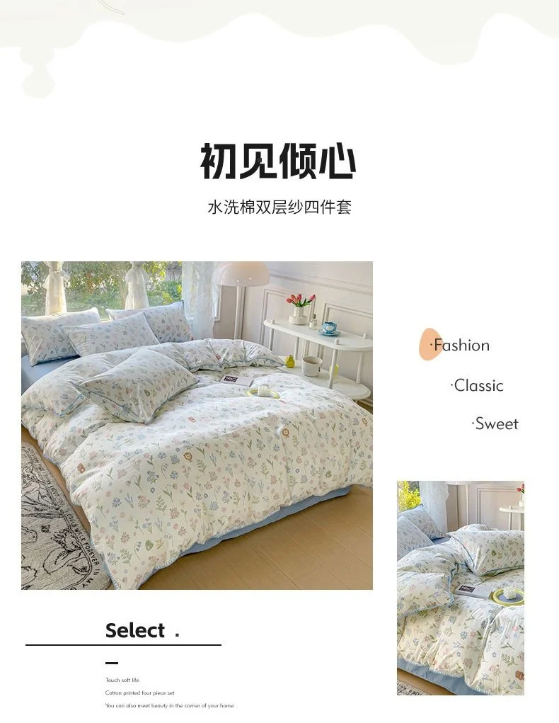 Pastoral Girls Flower Bedding Sets, Washed Cotton Bed Linens, Soft Quilt Cover Sheet Set, Simple Bedspread, Home Textiles
