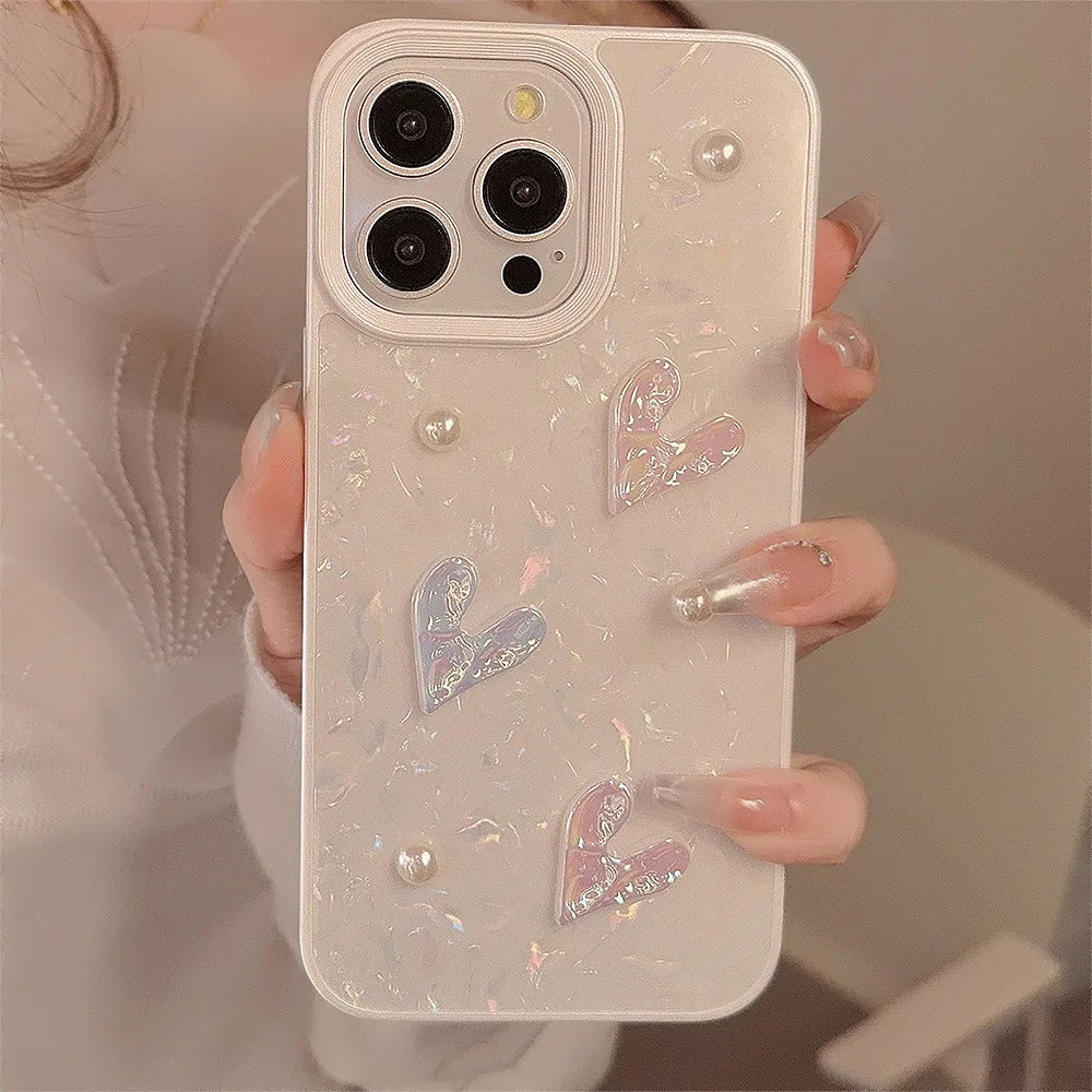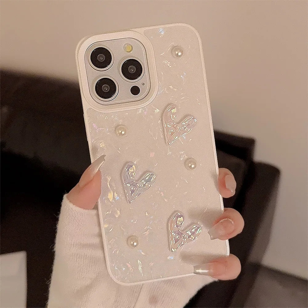 Phone case for 13 iphone 15 pro max 15pro 13pro 11 15promax 14 12promax 12 3D pearl love light shell elegant anti-fall conque