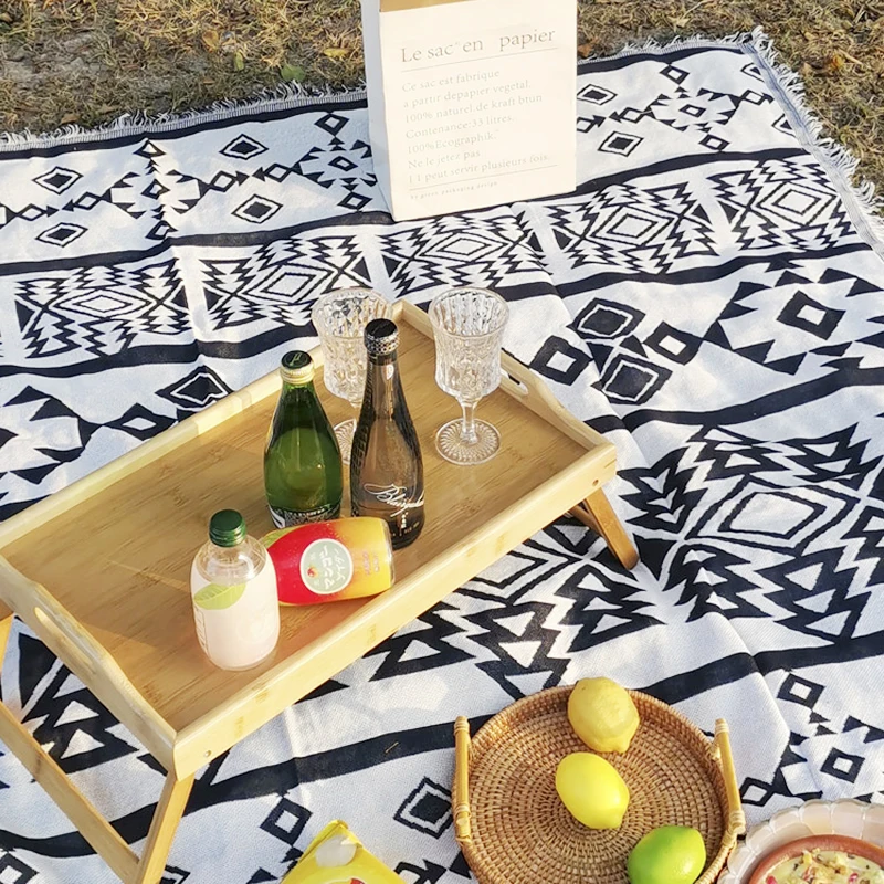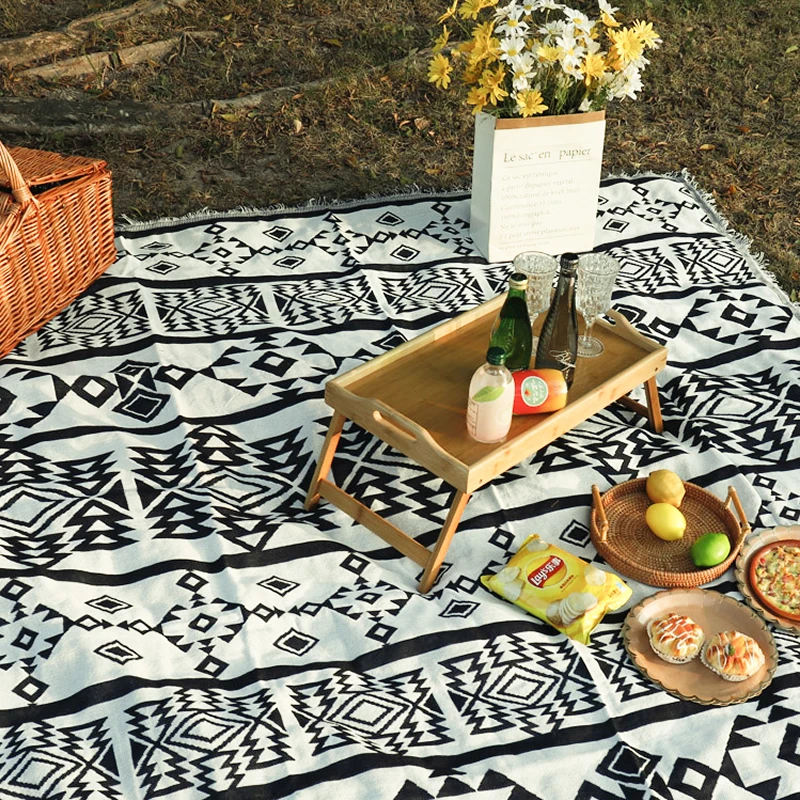 Picnic Cloth Camping RV Blankets Outdoor Rugs Sofa Bed Throw Blanket Air Condition Knitted Rugs Beach Towel Mats 2 side Print