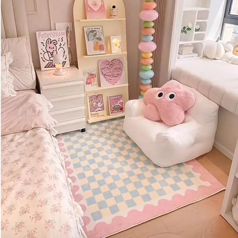 Pink Blue Checkerboard Bedside Carpet Cute Dopamine Bedroom Rug Fashion Ins Advanced Light Luxury Soft Coffee Table Mat 러그 Tapis