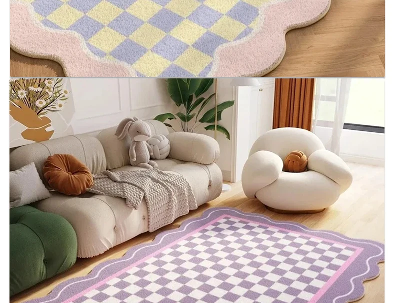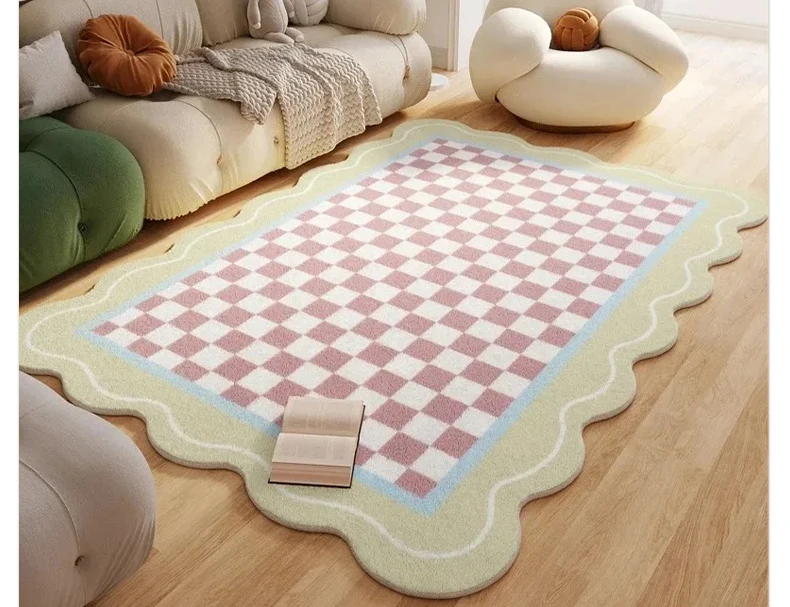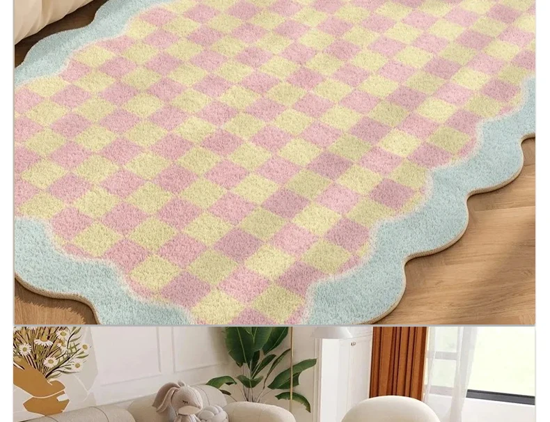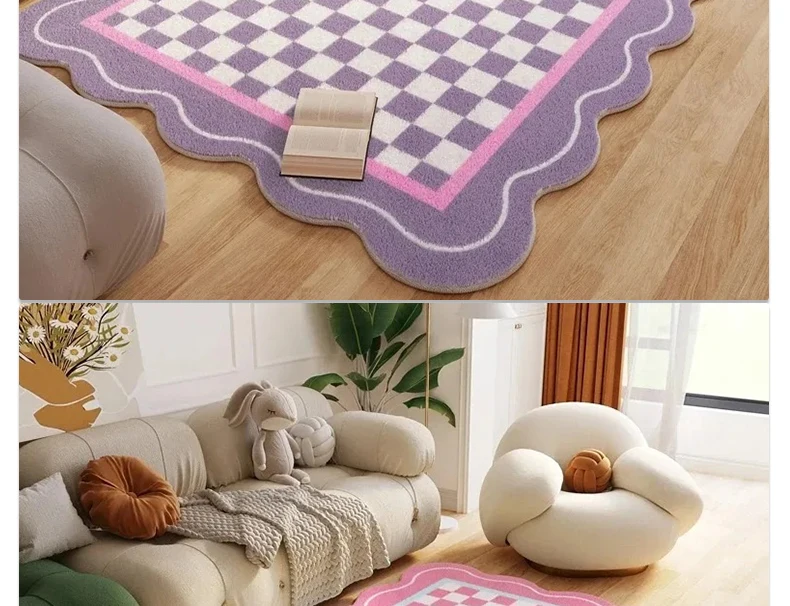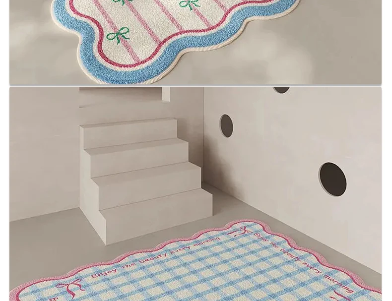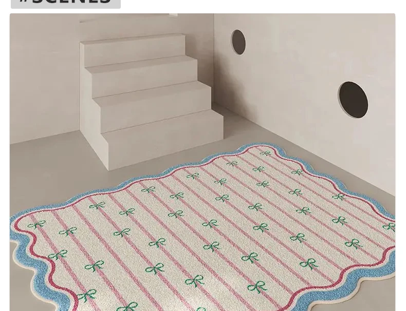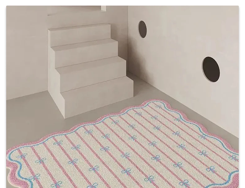 Pink Living Room Carpet Large Irregular Shape Rug Bow Cute Sweet Girl Home Decoration Rugs for Bedroom Soft Fluffy Floor Mat