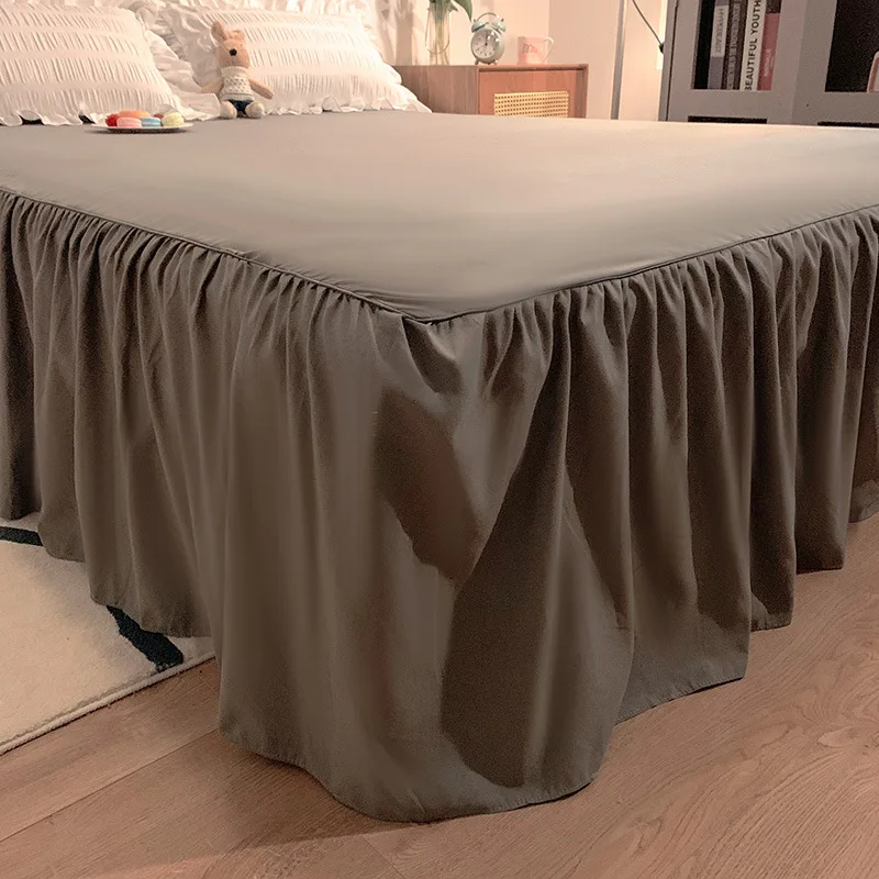 Pink Ruffled Seersucker Duvet Cover Set 3/4pcs Soft Lightweight Down Alternative Grey Bedding with Bed Skirt and Pillowcases