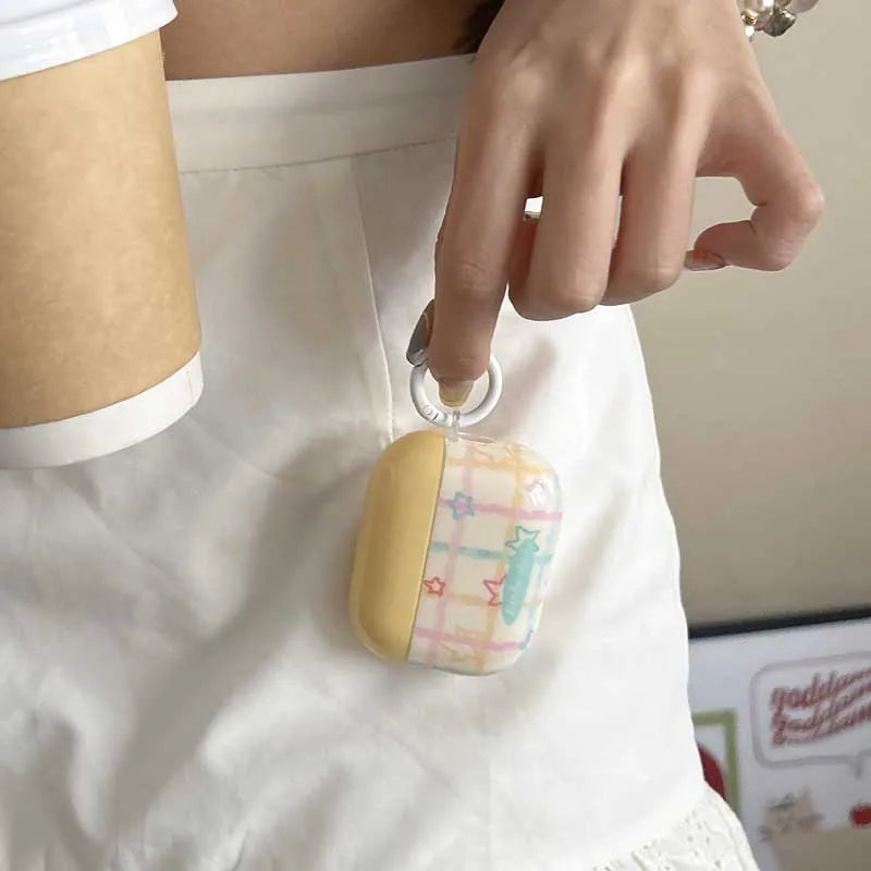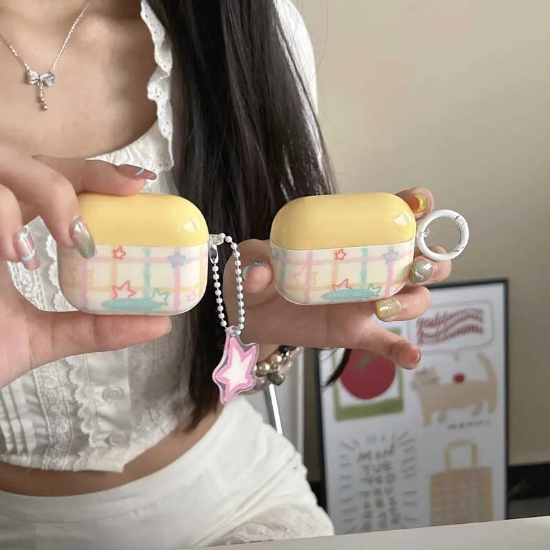 Pink Star Pendant Chain Grid Earphone Case Protect For Airpods 1 2 3 4 Cover Soft Shockproof For Air Pods Pro Pro2nd Fundas