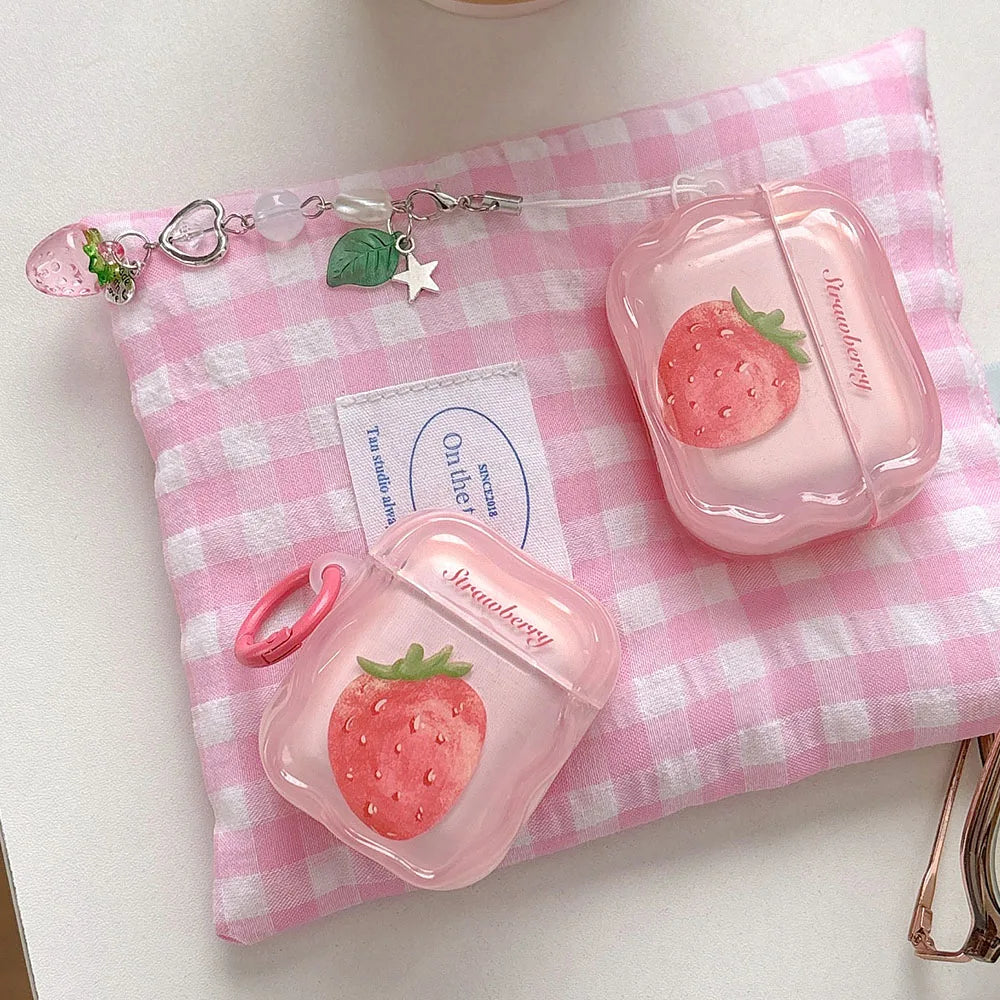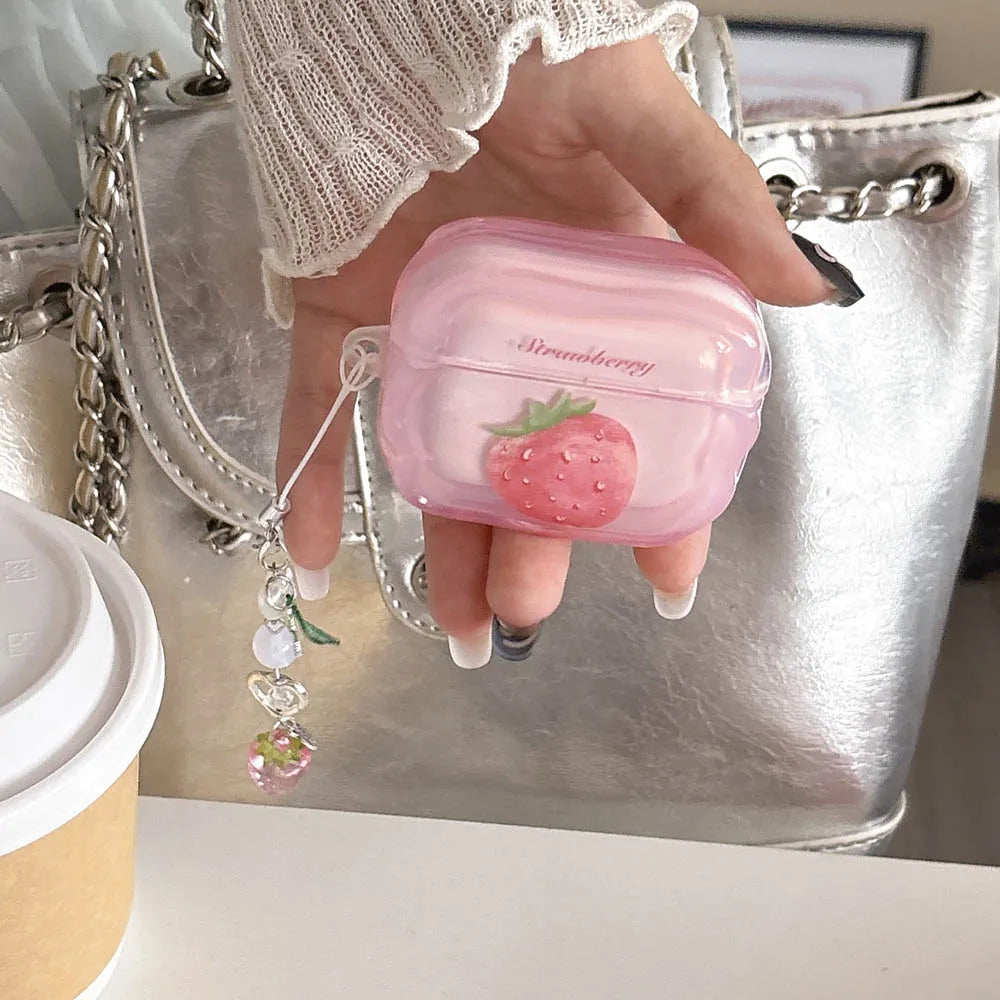 Pink Strawberry AirPods4 Case for Airpods Pro3 Pro 2 3 Air pods AirPod Pro2 with Key chain Bluetooth Headphone Protective Cover
