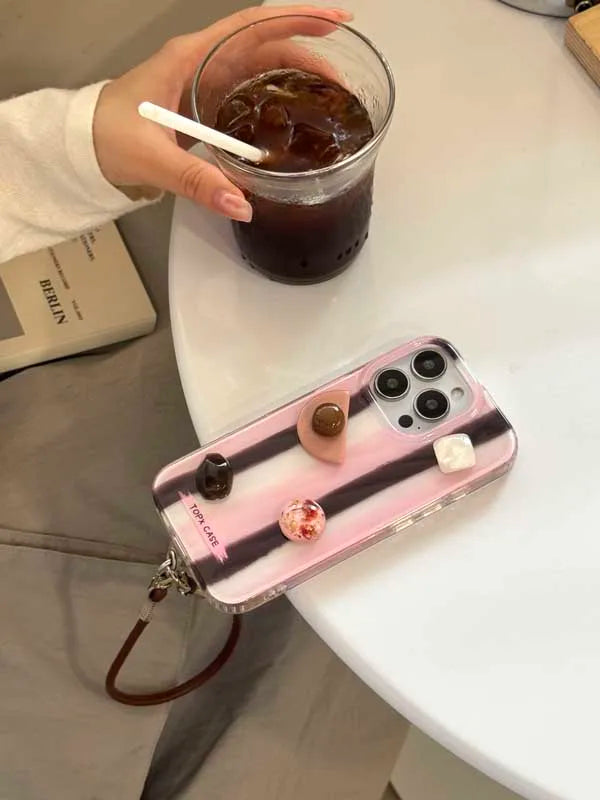 Pink Stripe leather strap Bracelet Phone Case For Iphone 16ProMax 13 14 15 16 Pro Max 16Pro 15ProMax 15Pro 14Pro Cover Fundas