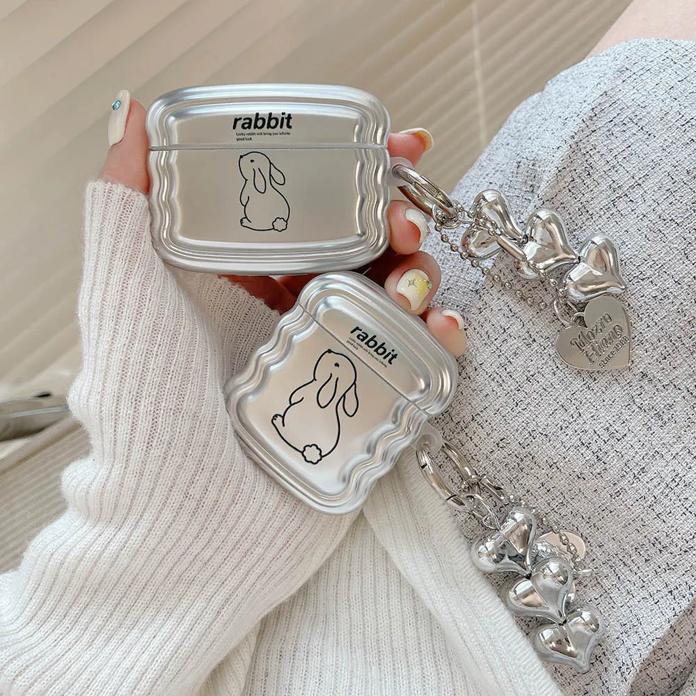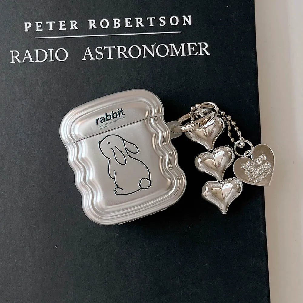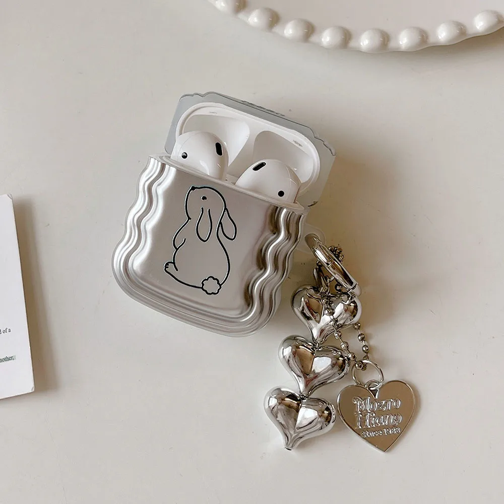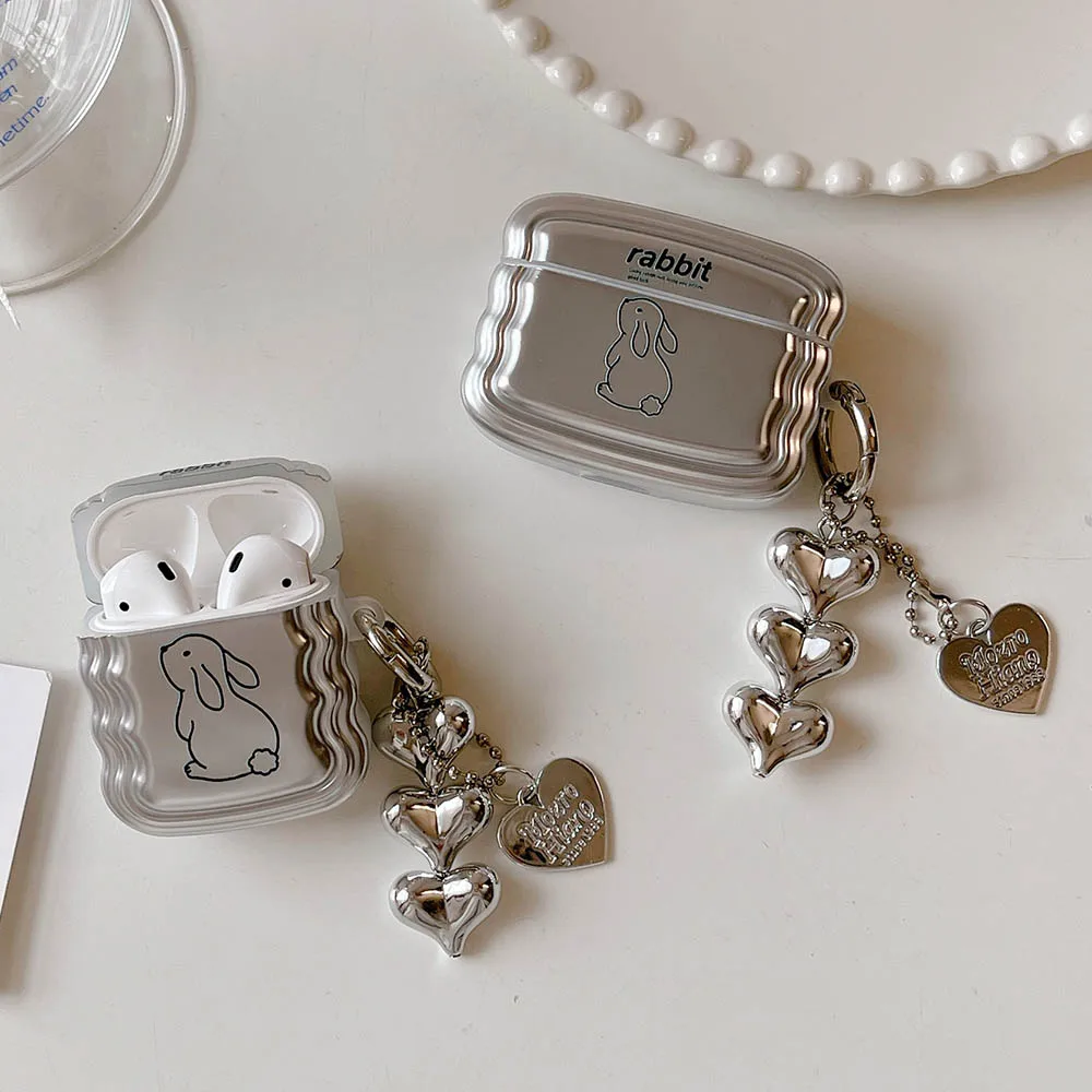 feature: rabbit wavy frame case headset cover for Airpods 2 with love heart keychain